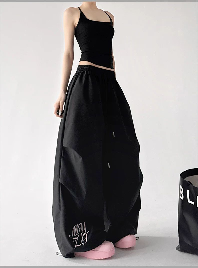 좋은 품질 원본 올린 사람 : 에디션 재미있는 자수 모통이 칼 워크웨어 팬츠 여성 여름 주름 와이드 레그 팬츠 재즈 춤추기 긴 바지
