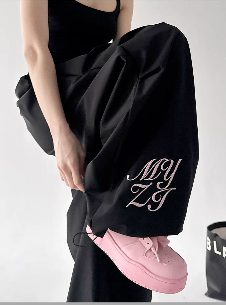 아메리칸 알파벳 배너 프린트 운동 웨이 바지 여성 루즈핏 느긋한 도루 센스 다용도 넓은 다리 스트레이트 캐주얼 바지