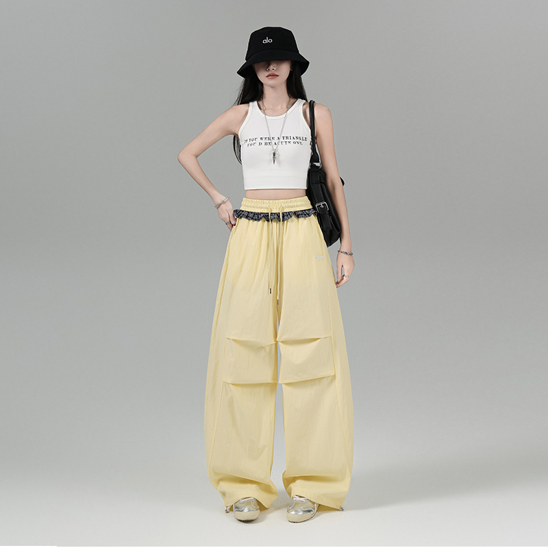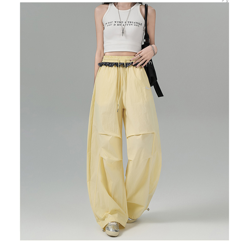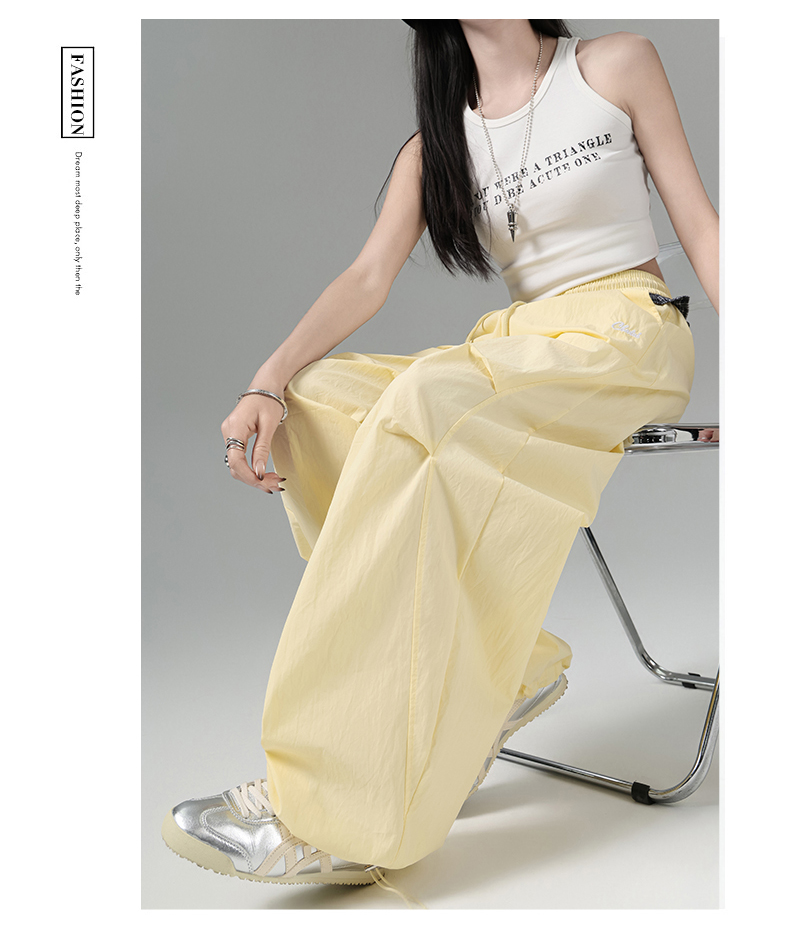 실사 바지 아이들 여름 2026 새로운 도루 센스 스트레이트 좁은 에디션 와이드 레그 팬츠 하이웨이스트 요가 바지 운동 바지 웨이 바지