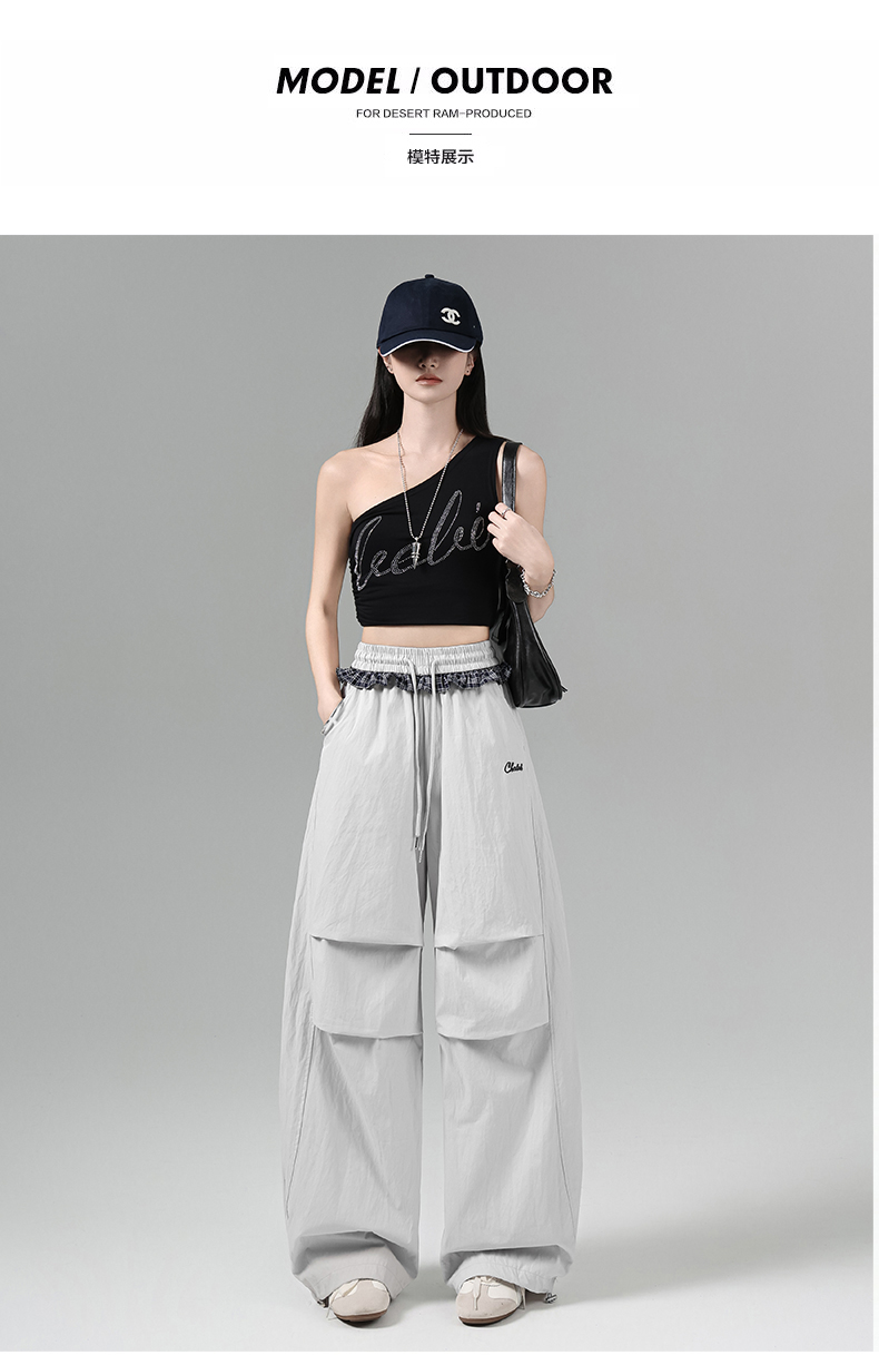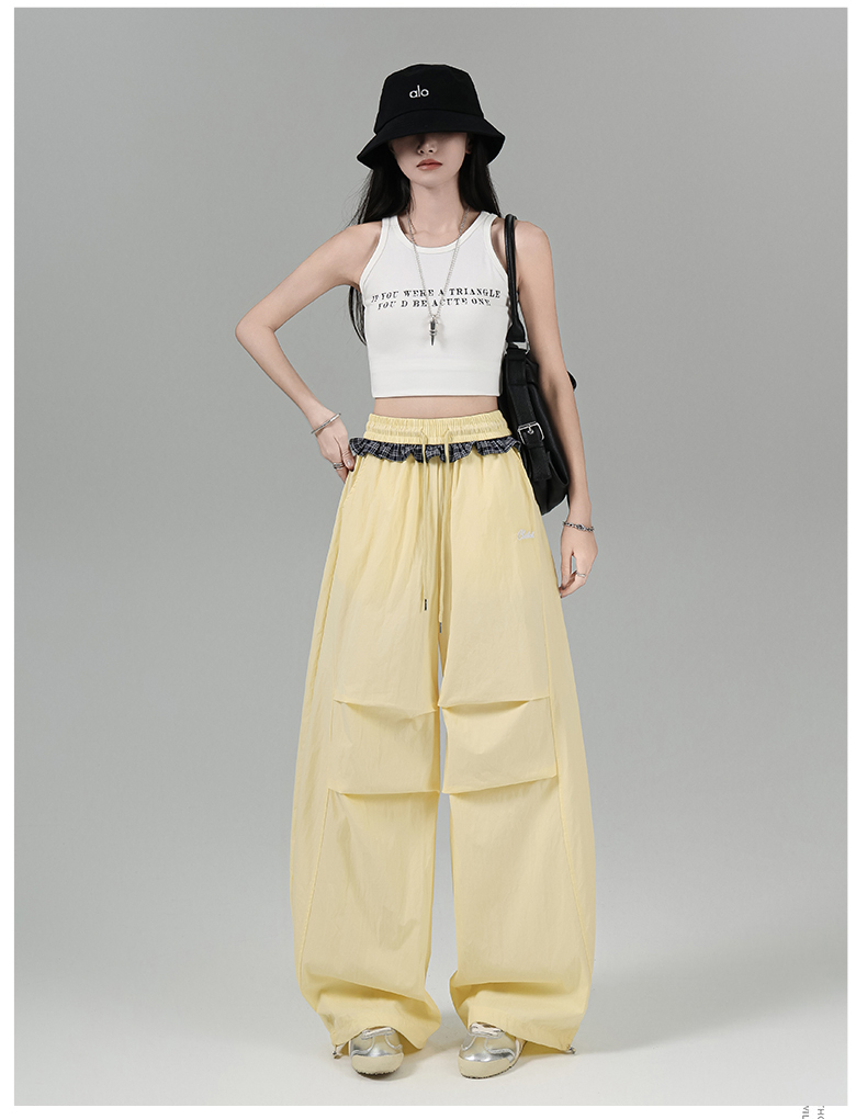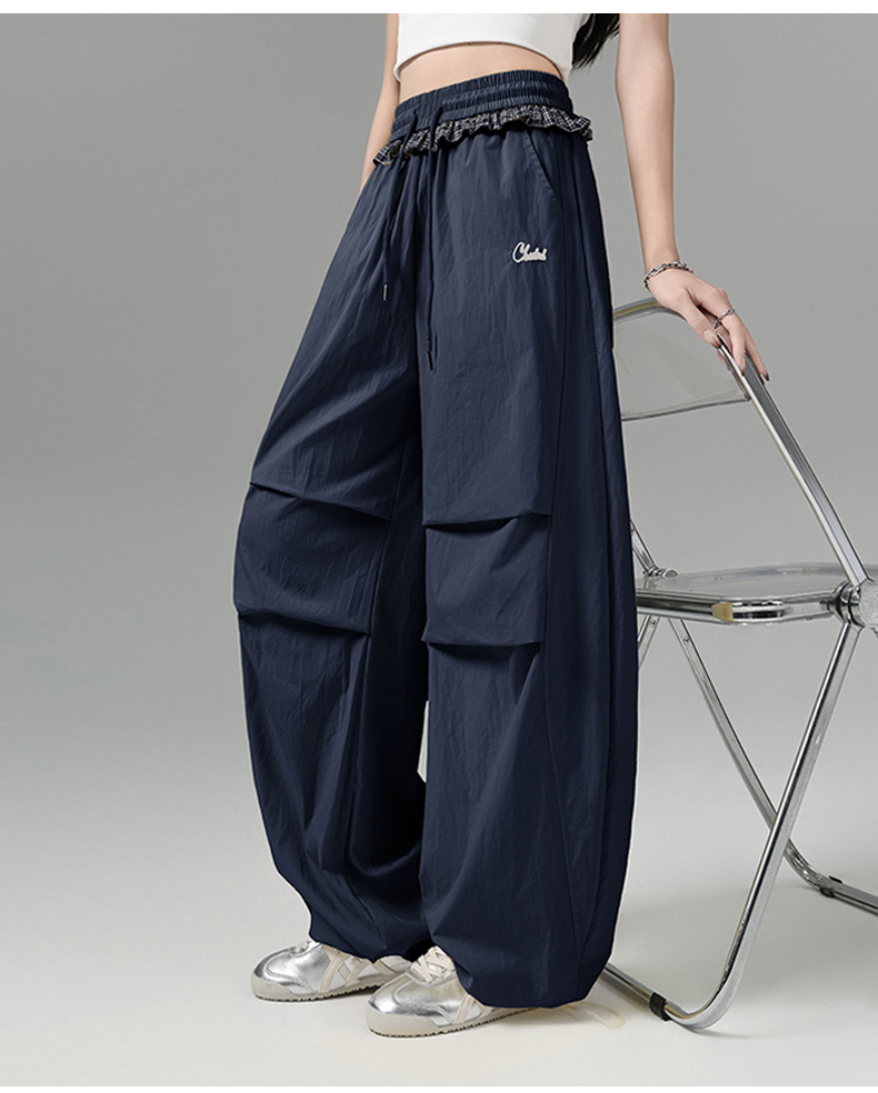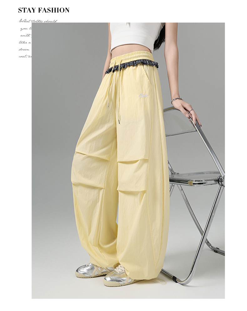 얇고 가벼운 호흡 센스 큰 진자 금액 펌프 로프 핀치 Pleat 넓은 다리 치마바지 캐주얼 바지