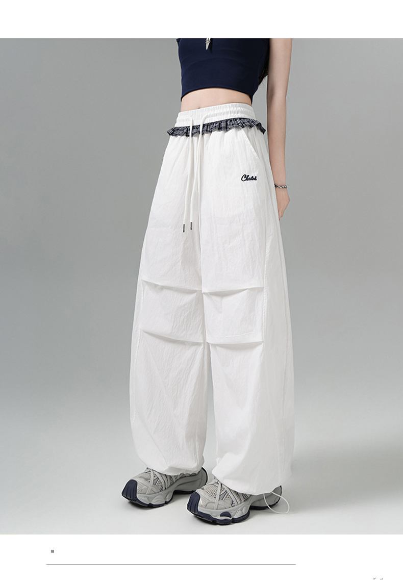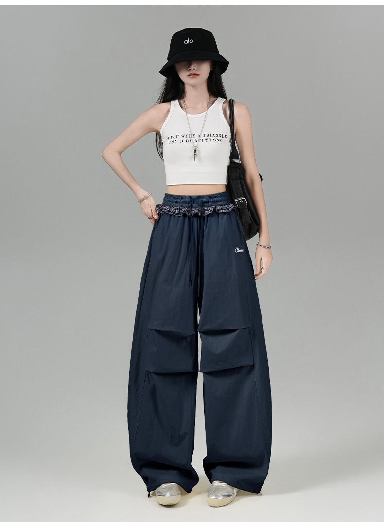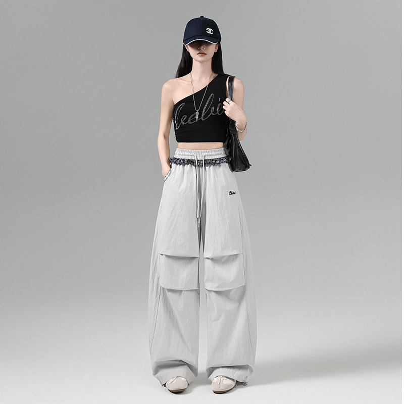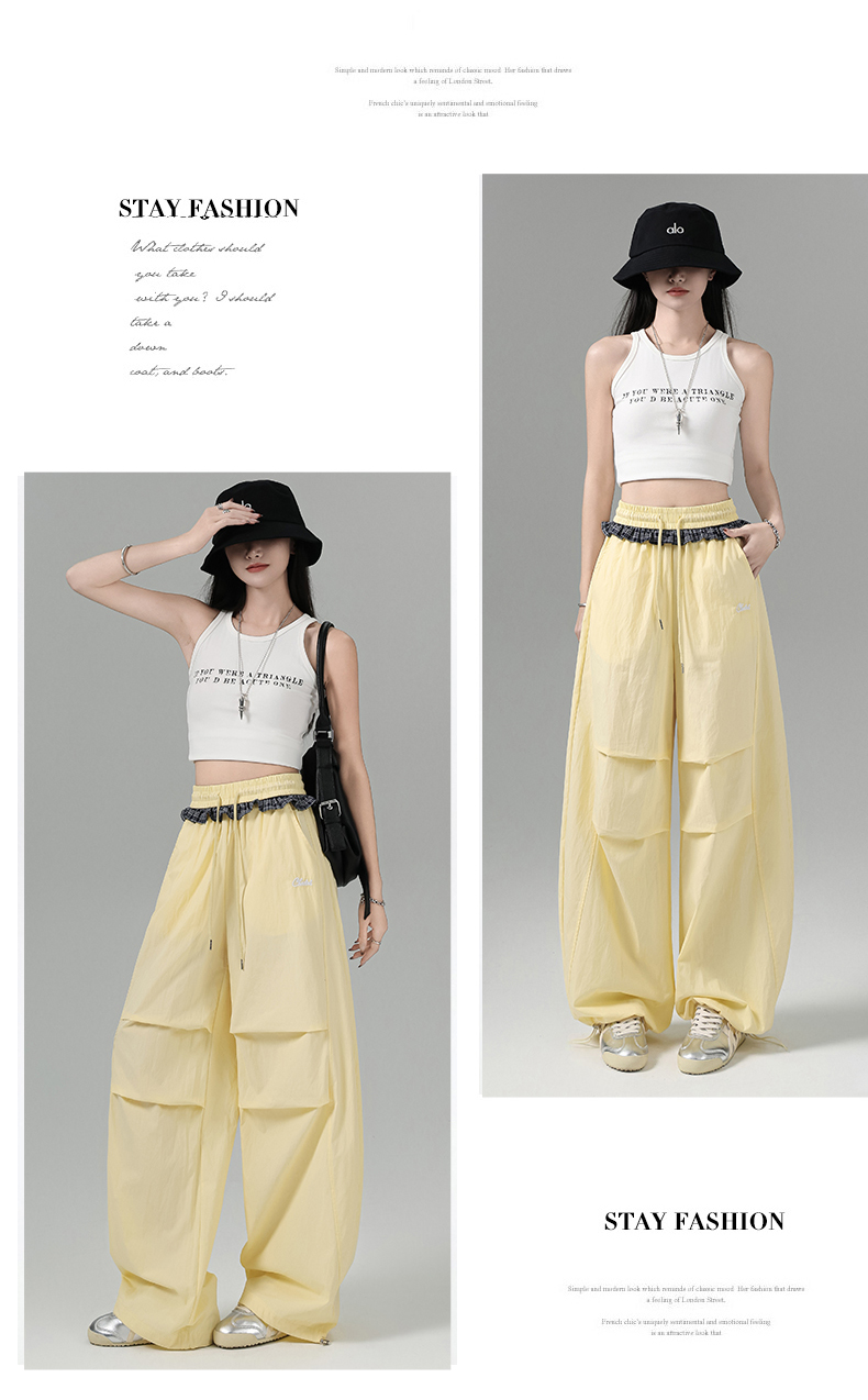 얇고 가벼운 호흡 센스 큰 진자 금액 펌프 로프 핀치 Pleat 넓은 다리 치마바지 캐주얼 바지
