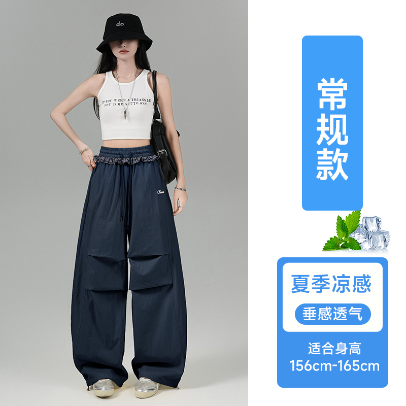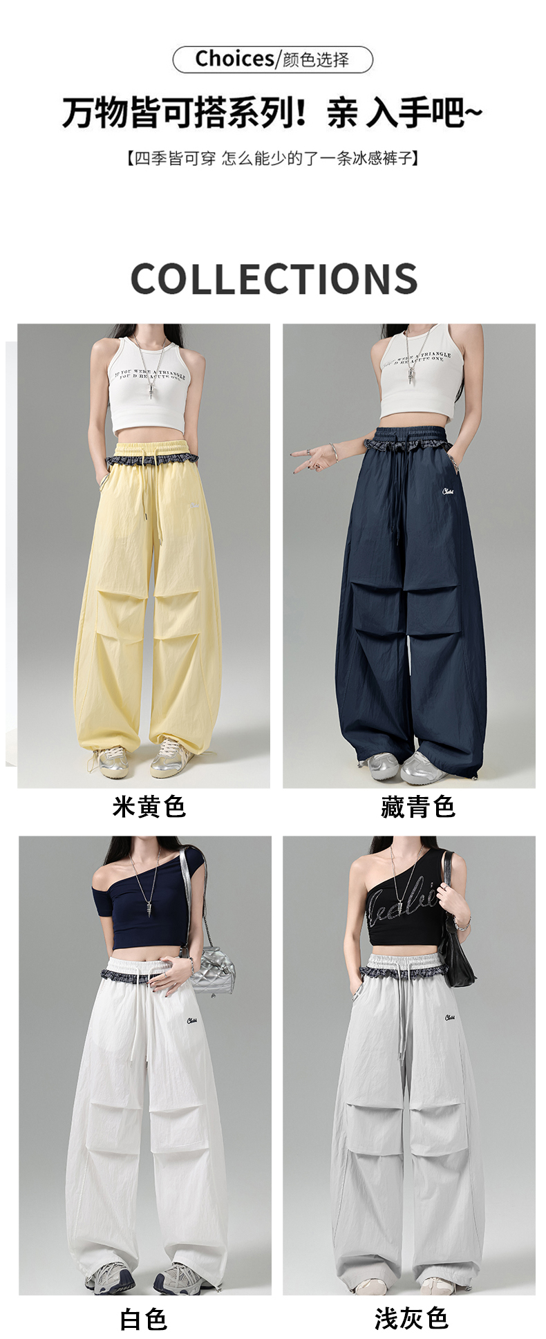 실사 2026 폭발 여름 차가운 허리 디자인 와이드 레깅스 바지 여름 느긋한 얼음 실크 면 린넨 슬림해 보이는 캐주얼 바지