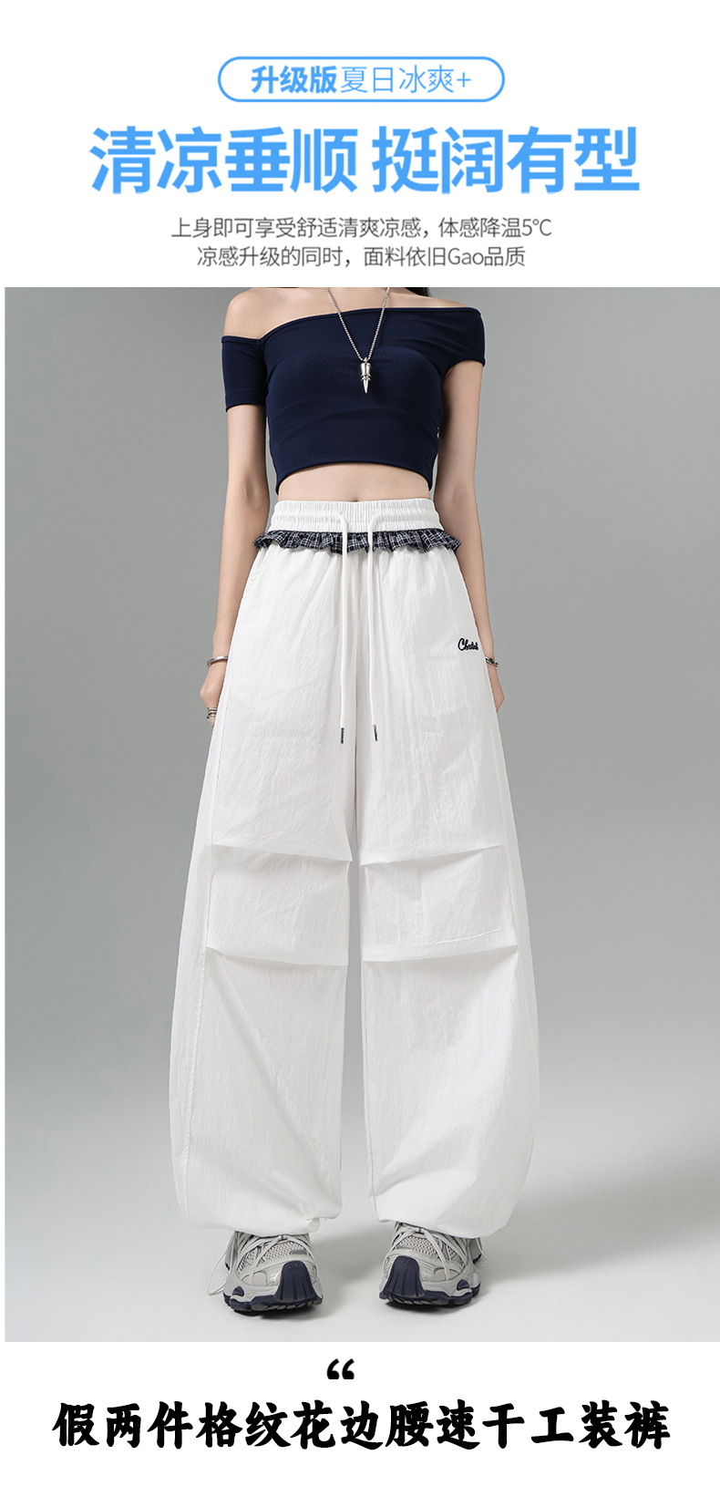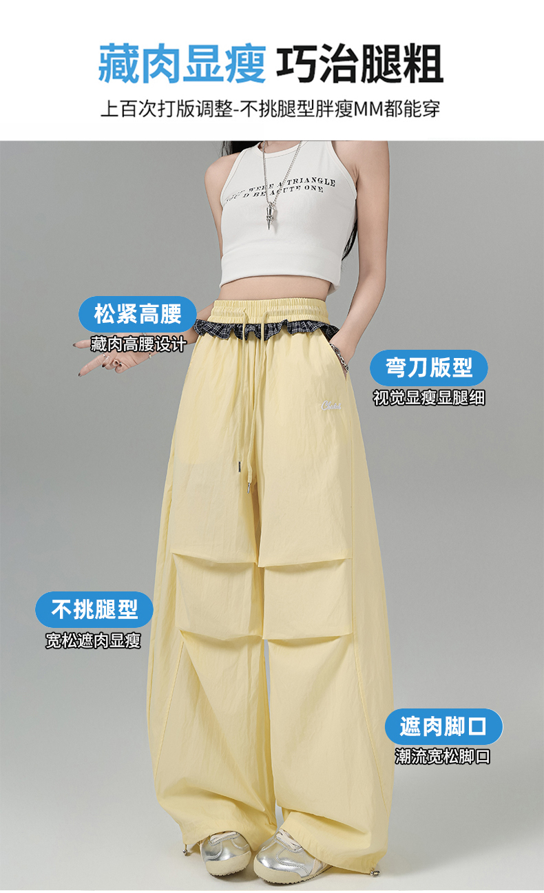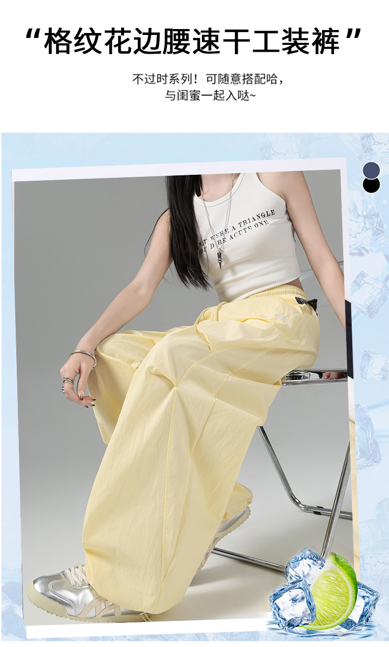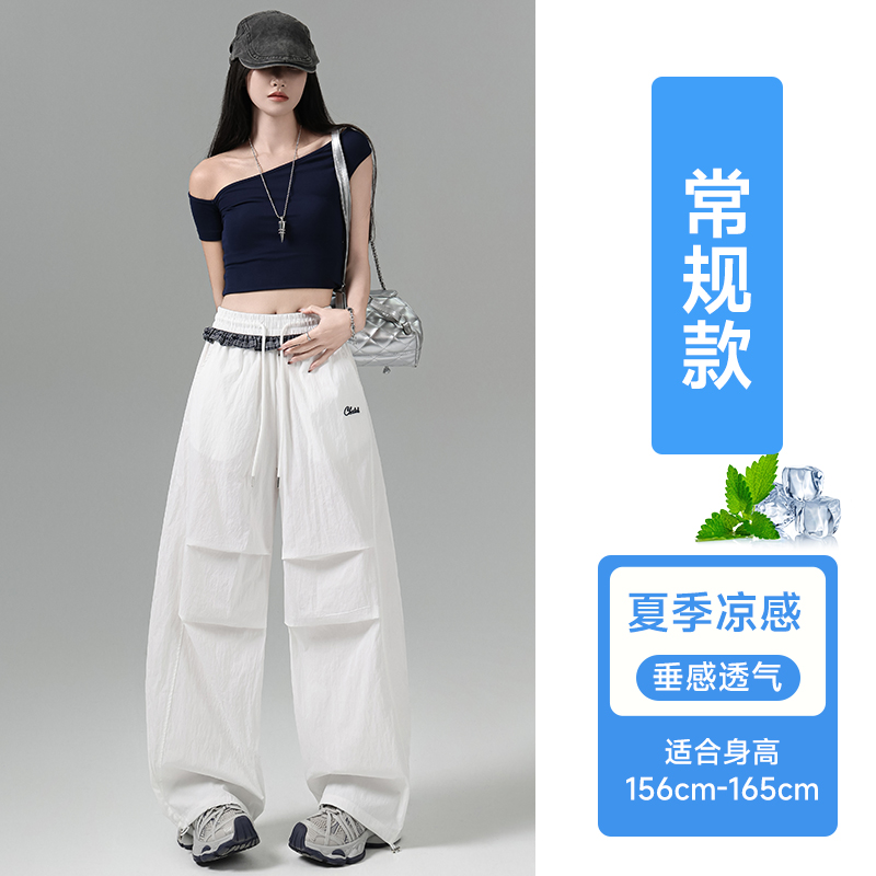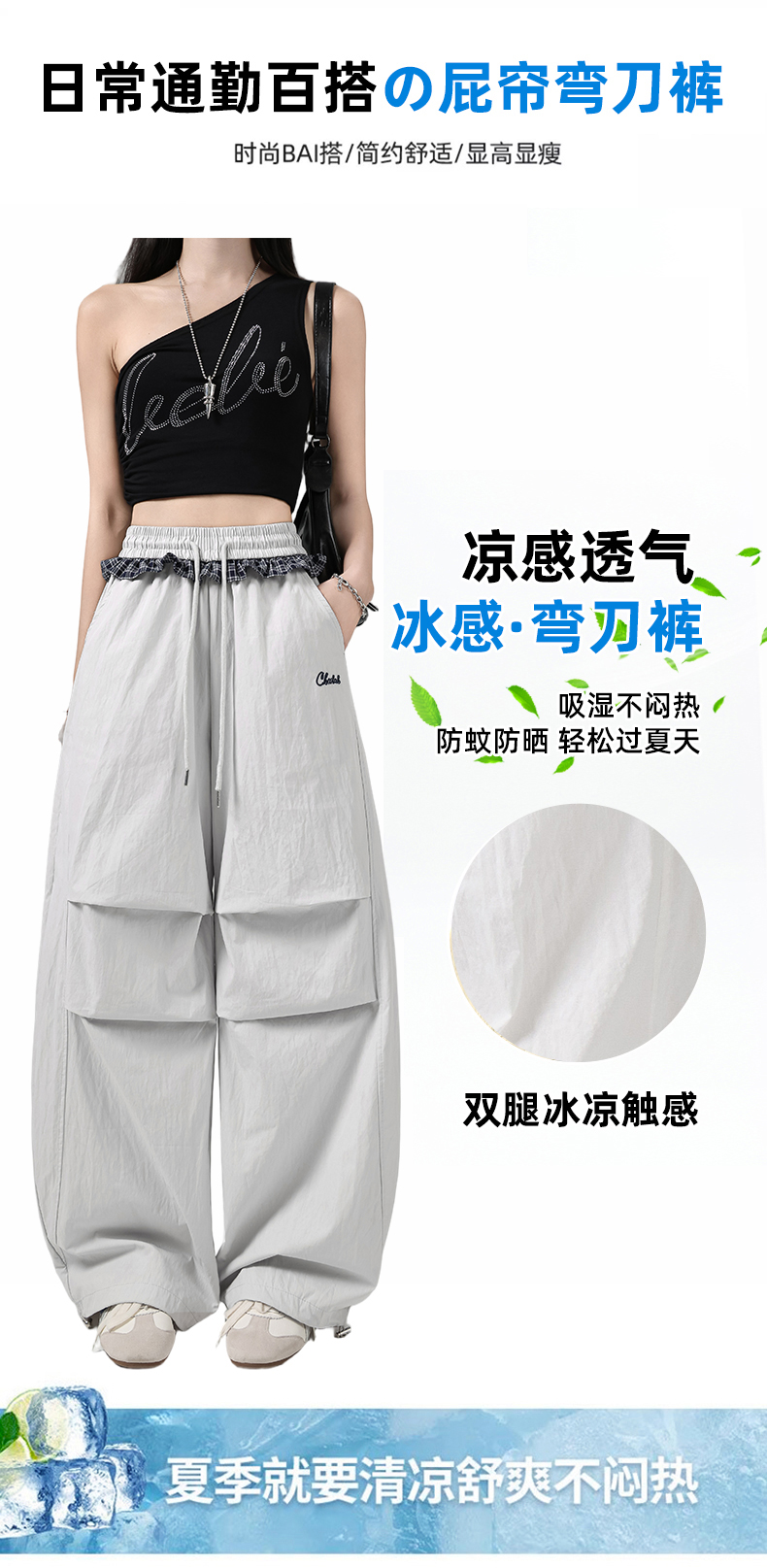 실사 2026 여름 얼음 실크 속도 건조한 캐주얼 와이드 레그 팬츠 패션 다용도 루즈핏 슬림해 보이는 9부 바지 여성