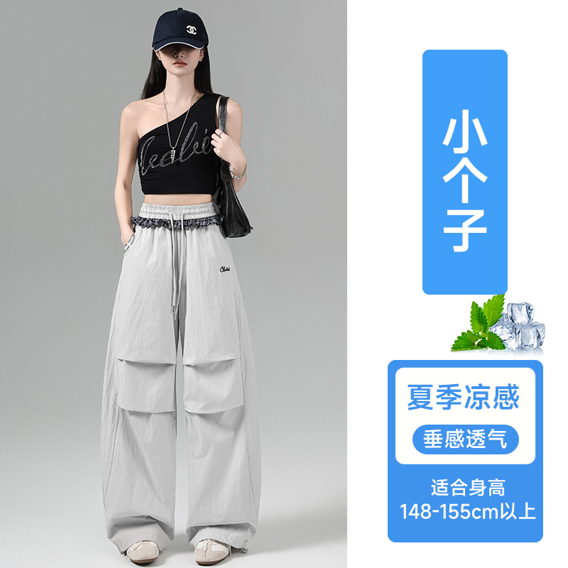 실사 얼음 실크 꽃밭 속도 건조한 배기 바지 여성 2026 여름 얇은 스타일 하이웨이스트 작은 키 9 포인트 넓은 다리 풍선 바지
