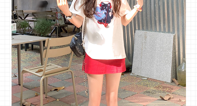 실사 여름 한국 스타일 루즈핏 무거운 작업 수건 자수 연령 감소 티셔츠 운동 반신 스커트 트렌디 엄마 세트