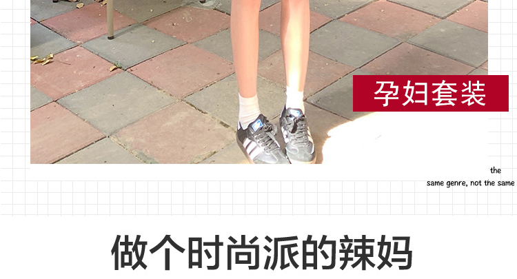 실사 여름 캐주얼 후드 페이크 레이어드 임신 엄마 운동 니트 세트