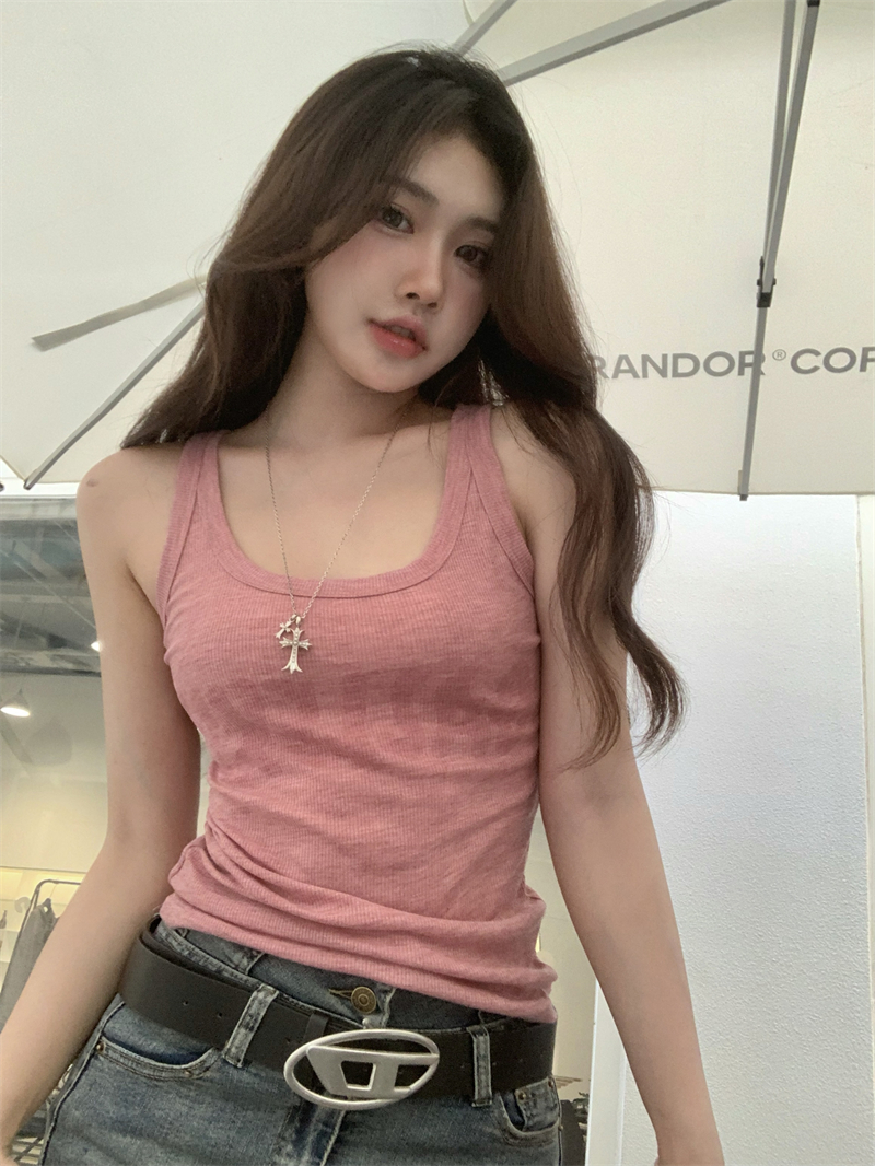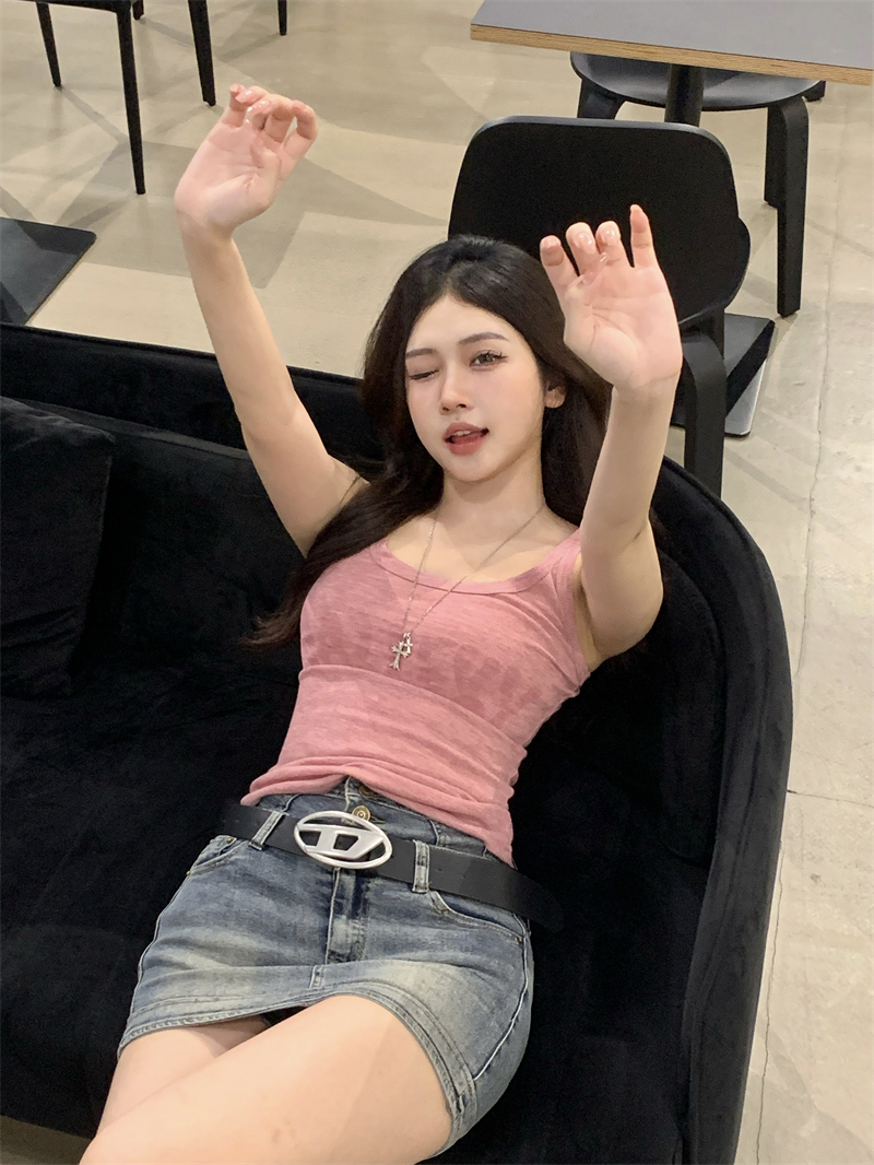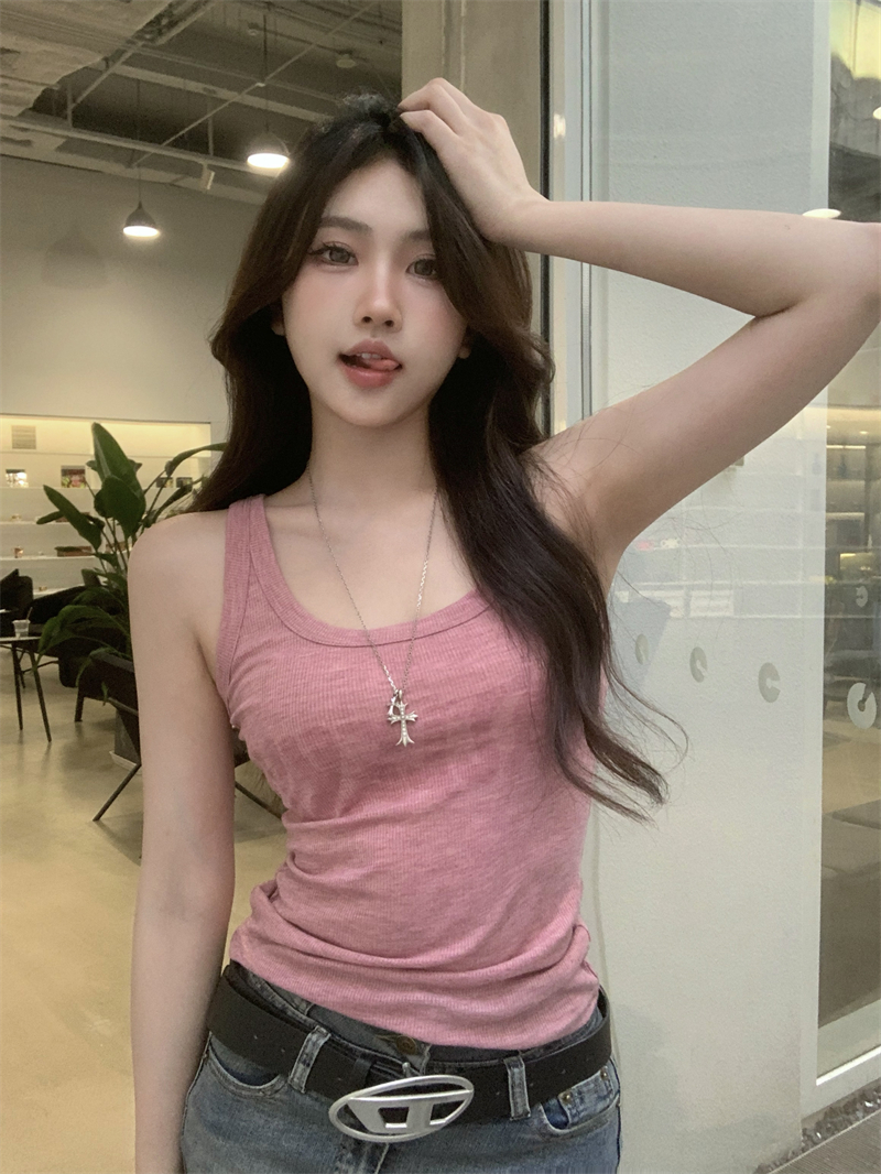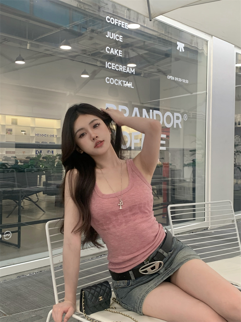 한 부서 자카드 미니멀리즘 홀로우 아웃 니트 조끼 여성 여름 새로운 다용도 반하이넥 외국 가스 민소매 맨위 작은 셔츠