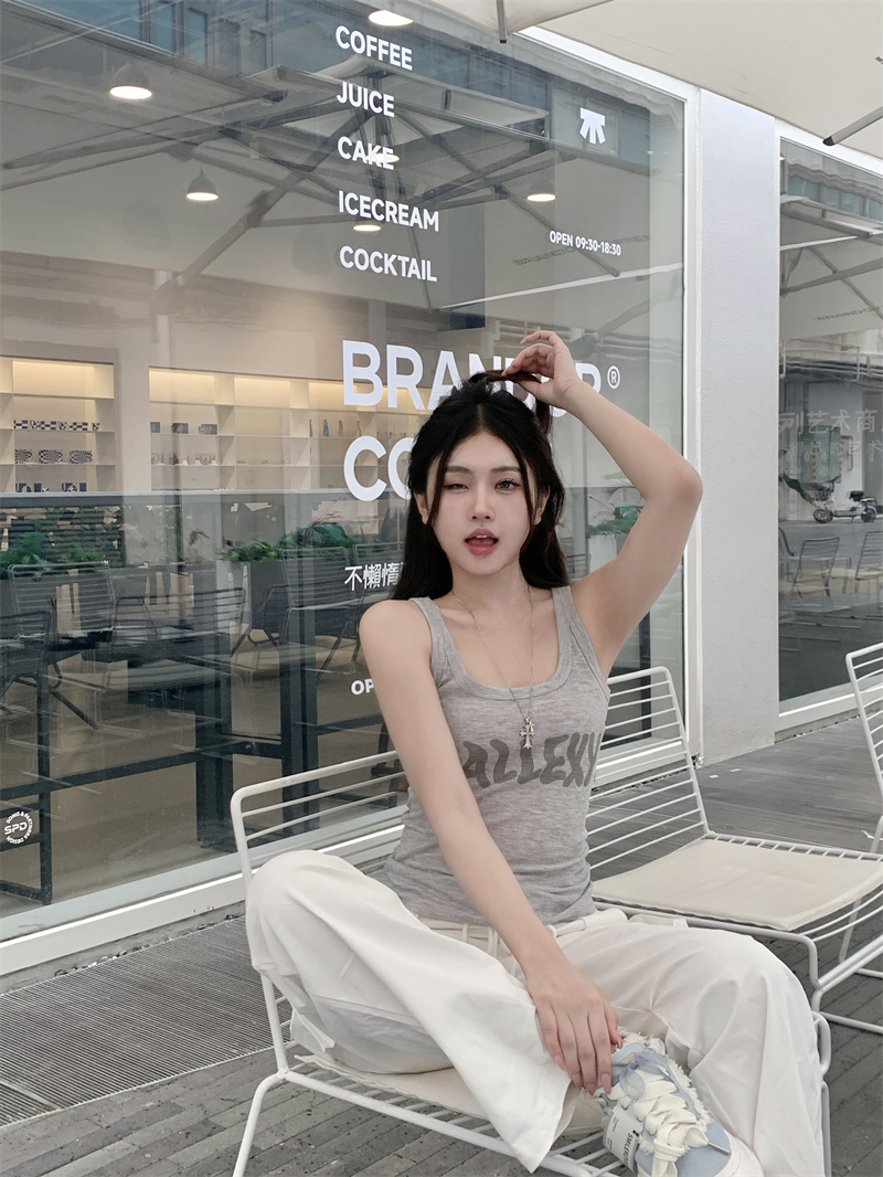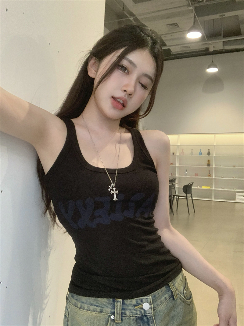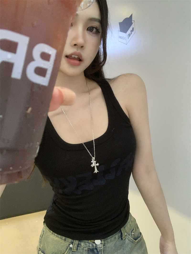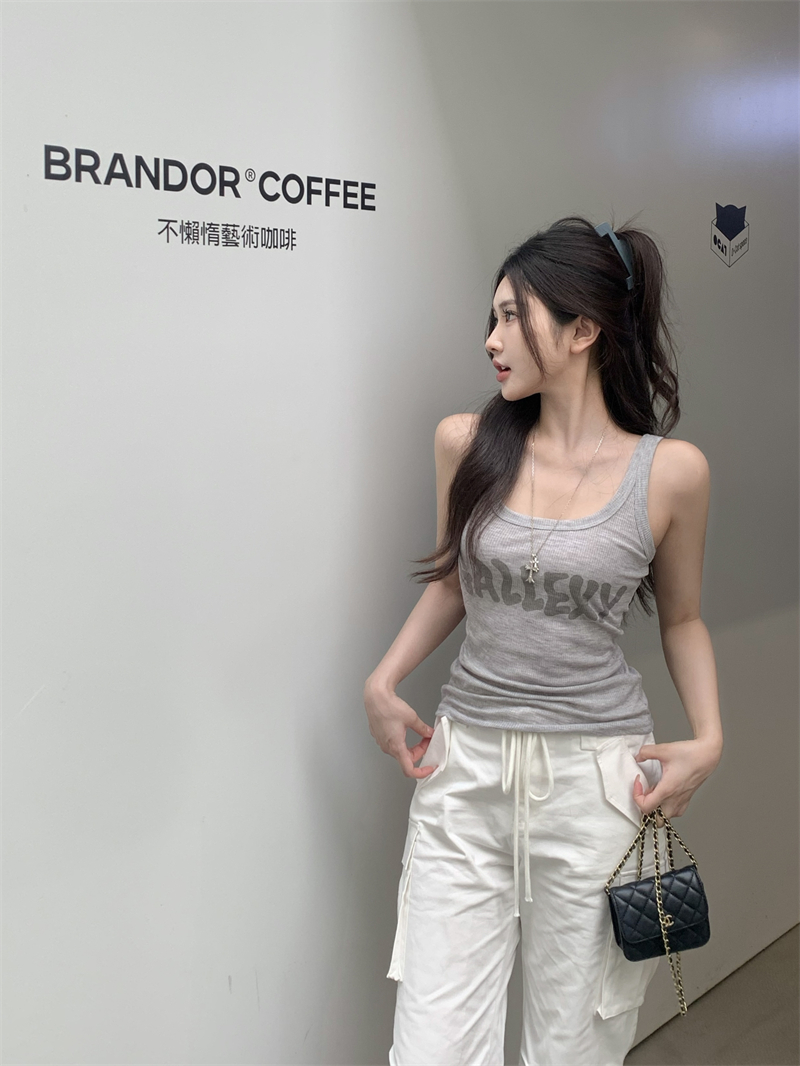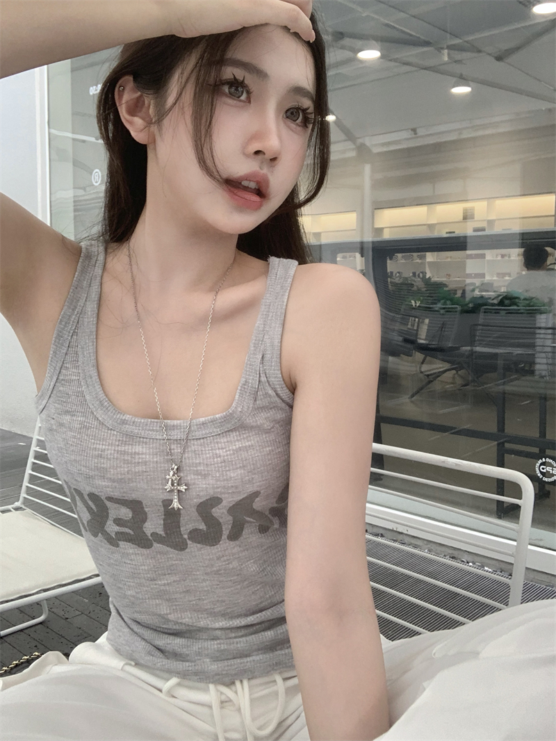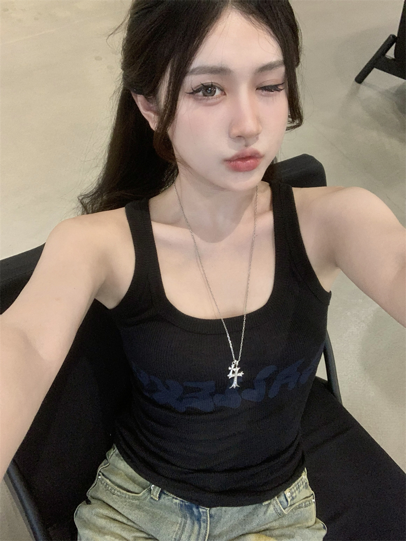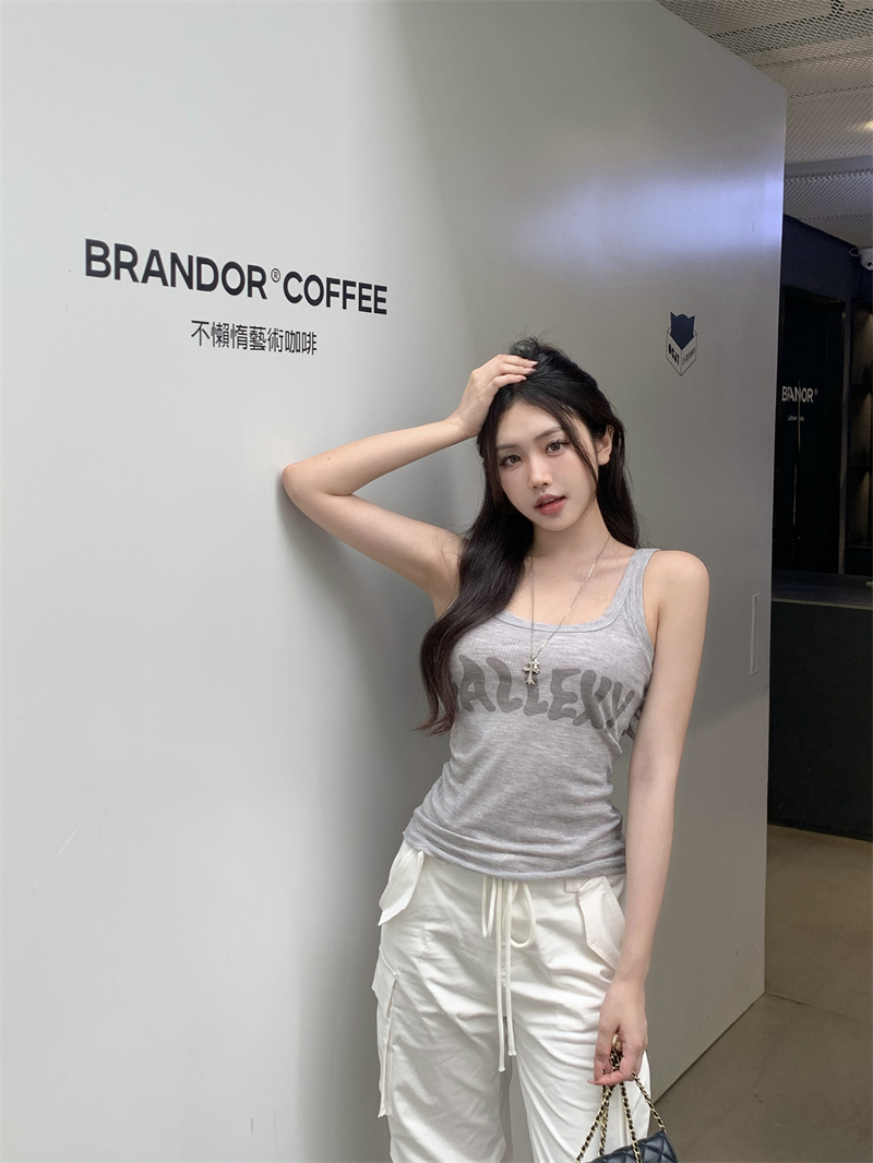 실사 정가 순수한 욕망 핫걸 외출용 캐미솔 몸매 가꾸기 프린트 쇼트 스타일 민소매 맨위