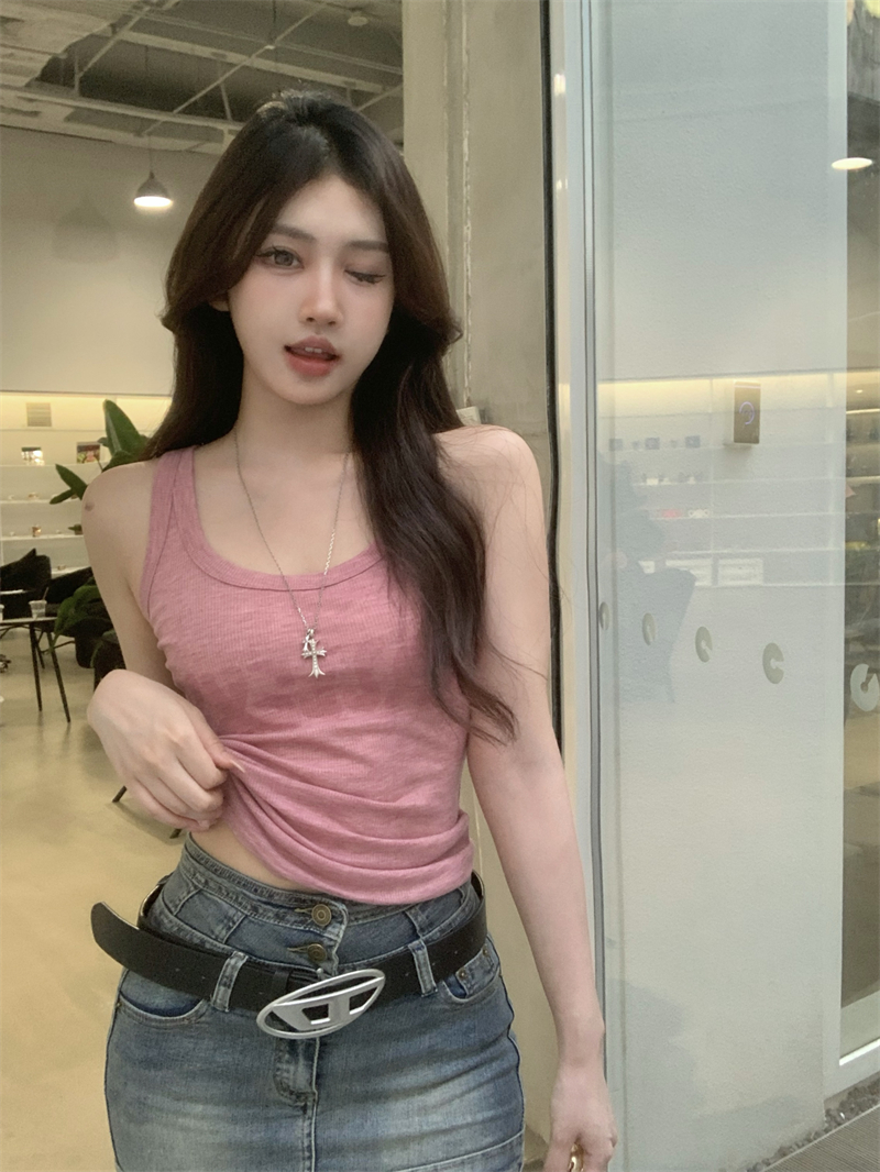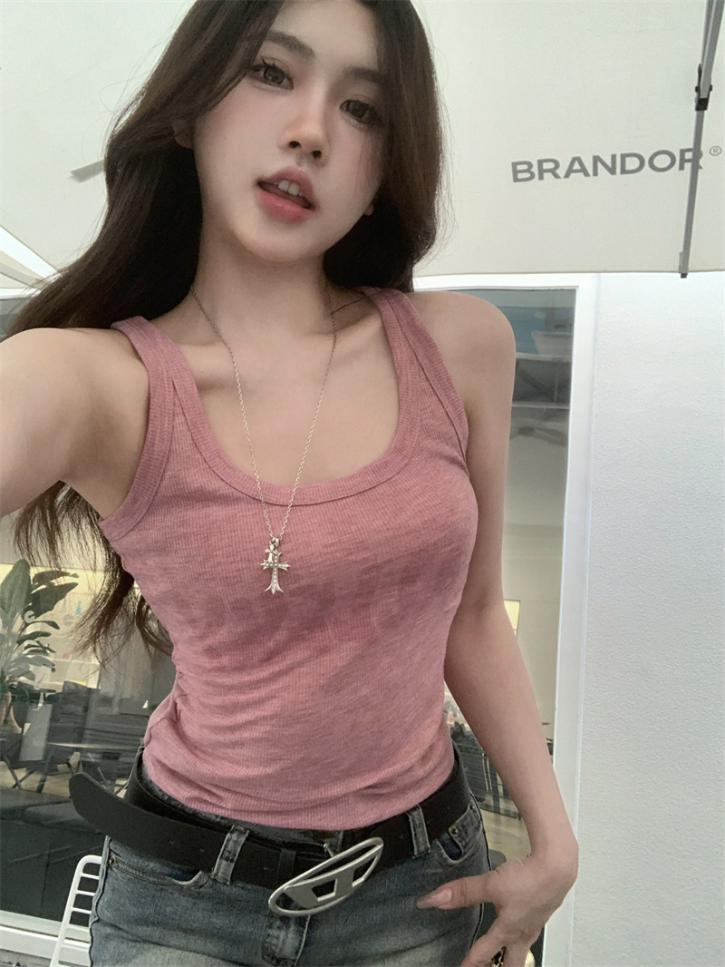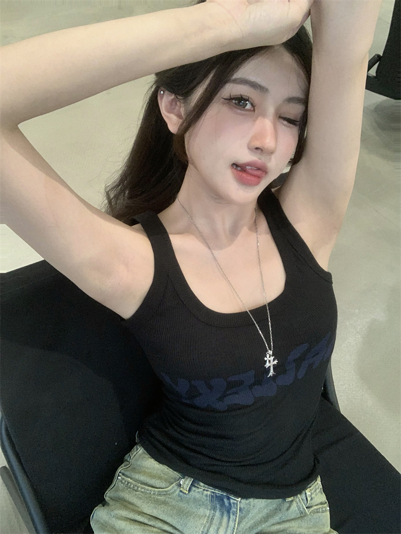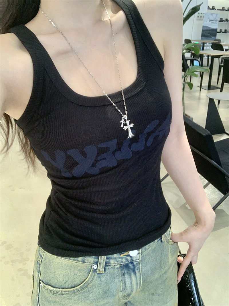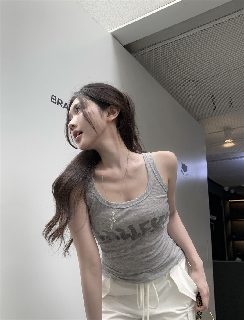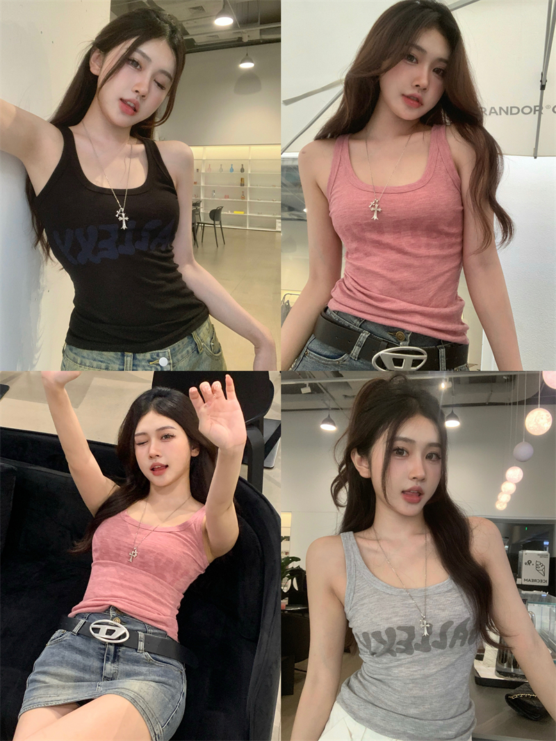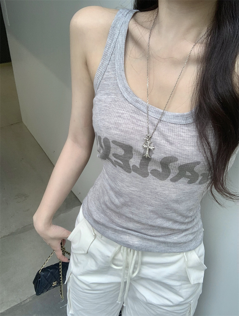 실사 정가 순수한 욕망 핫걸 외출용 캐미솔 몸매 가꾸기 프린트 쇼트 스타일 민소매 맨위