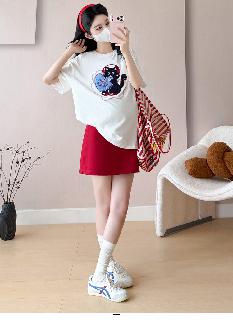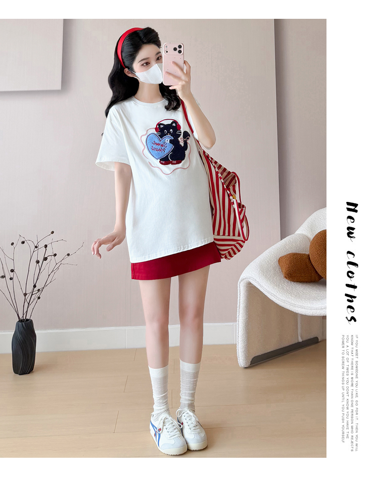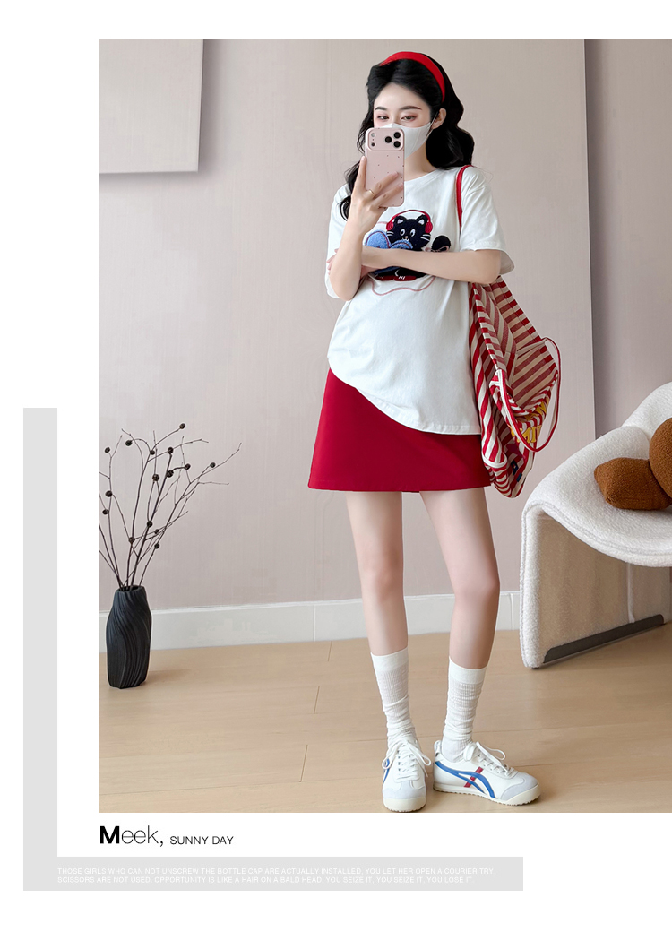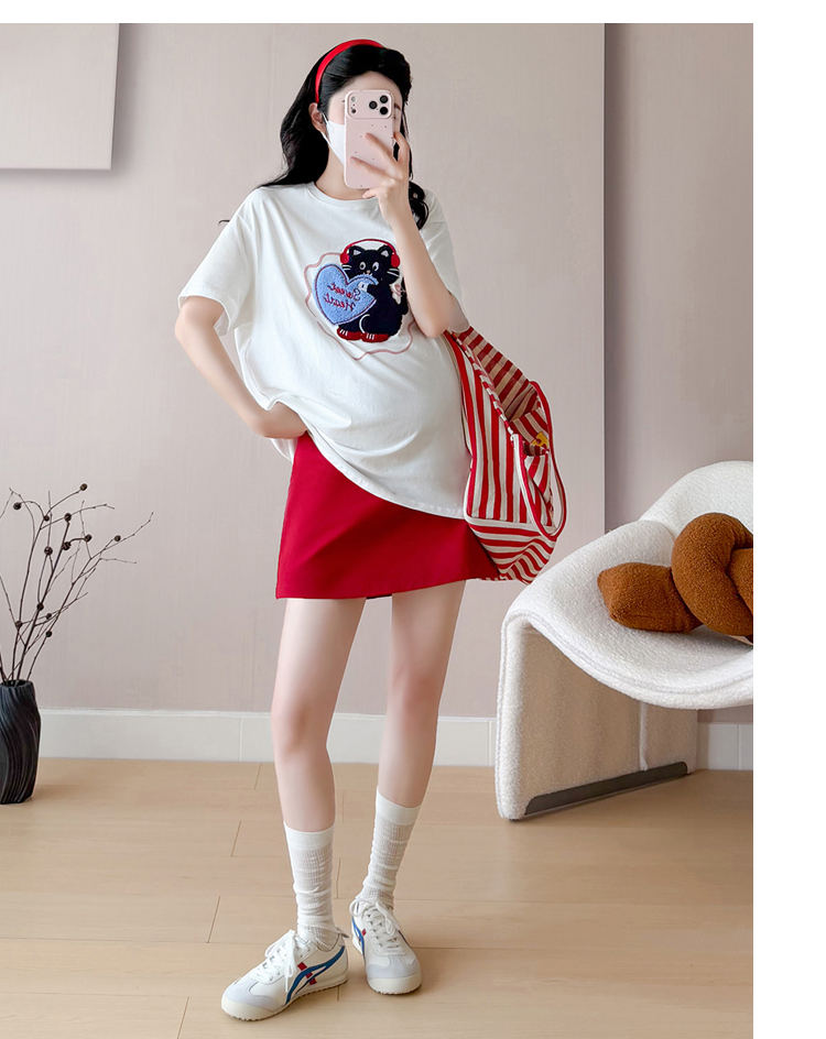실사 여름 신선함 V넥 루즈핏 조끼 인형 셔츠 와이드 레그 팬츠 치마 임신 엄마 디스플레이 화이트 연령 감소 세트