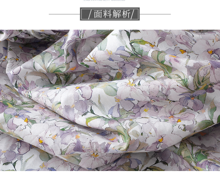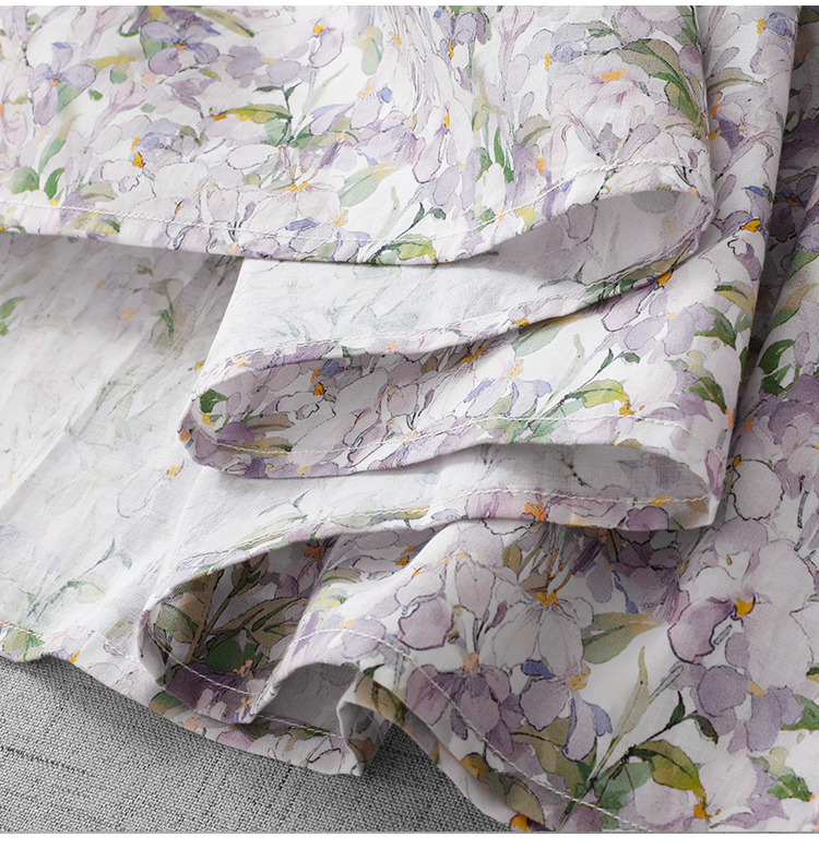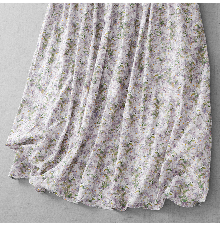3928 실사 순면 보라색 꽃무늬 꽃무늬 드레스 가을 어깨 7부 소매 하이웨이스트 루즈핏 큰 진자 캐주얼 롱 스커트