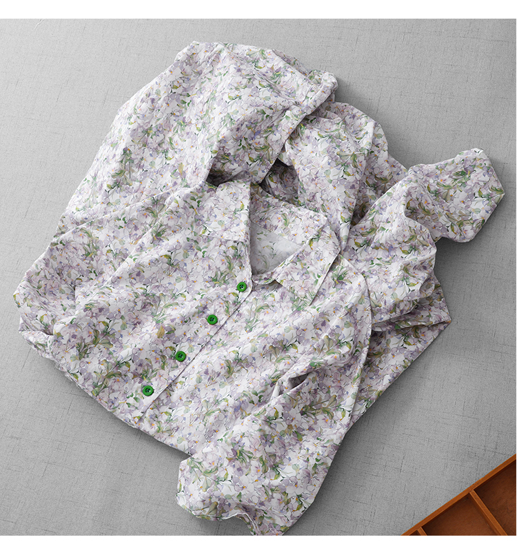 3931 문예 여성 의류 센 부서 주름 맨위 여성 레트로 인형 셔츠 일본식 꽃무늬 셔츠 달콤함 귀여운 루즈핏