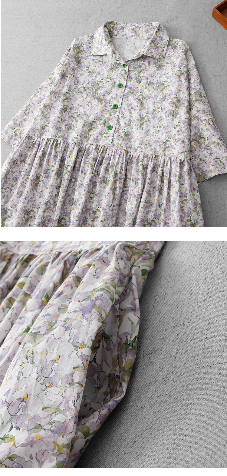 3927 실사 문예 좋은 제직 면 꽃무늬 신제품 테두리 작은 주머니 7부 소매 루즈핏 여름 전원 바람 롱 스커트