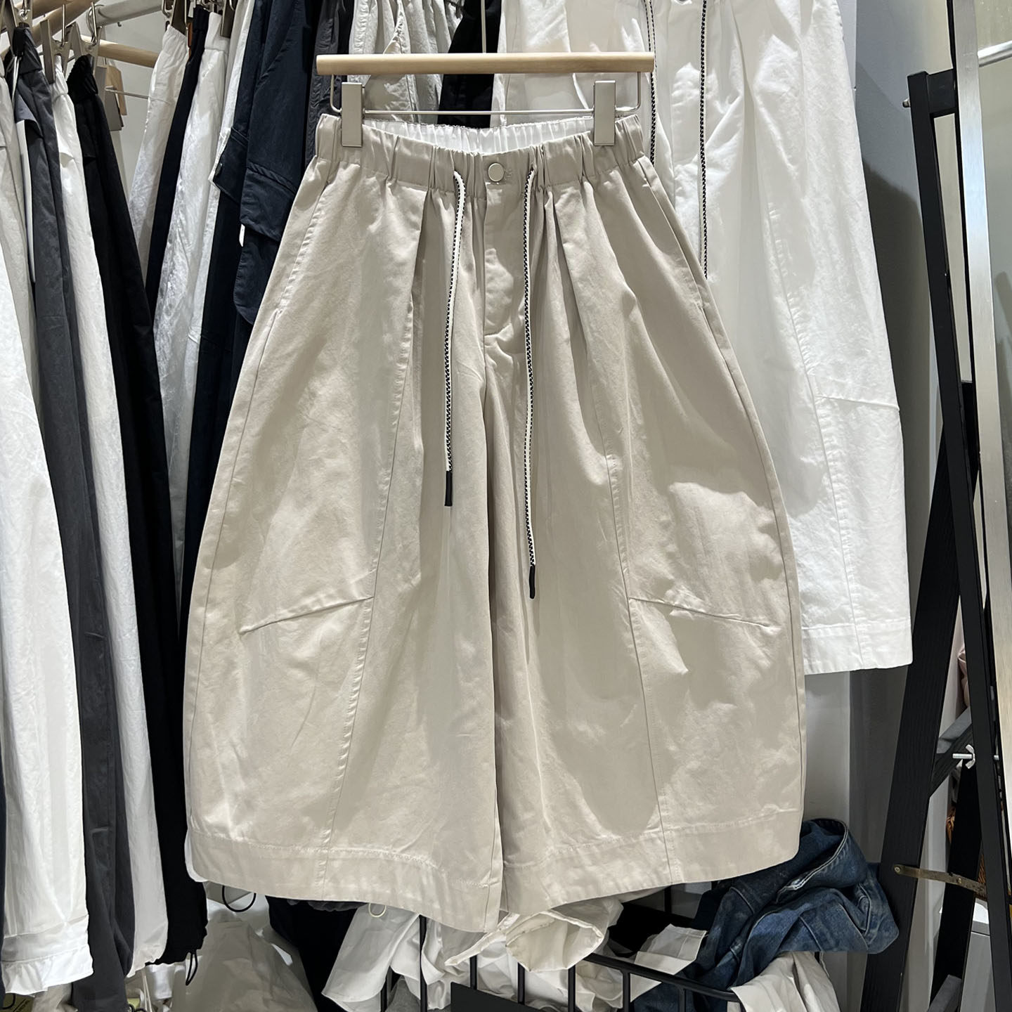 아모이 허리밴드 루즈핏 슬림해 보이는 넓은 다리 캐주얼 바지 잘 생긴 워크웨어 반바지 7부 바지 여성 바지 트렌디