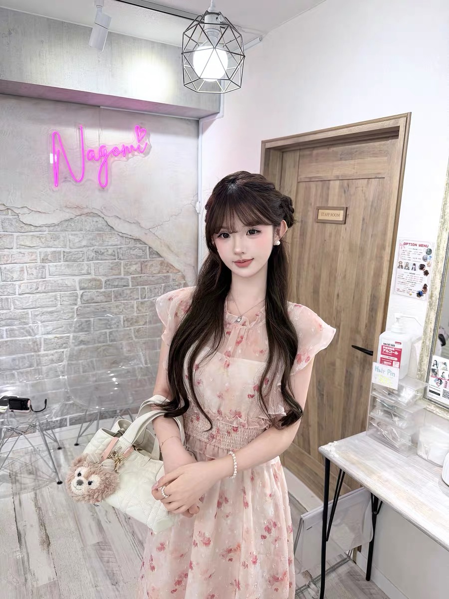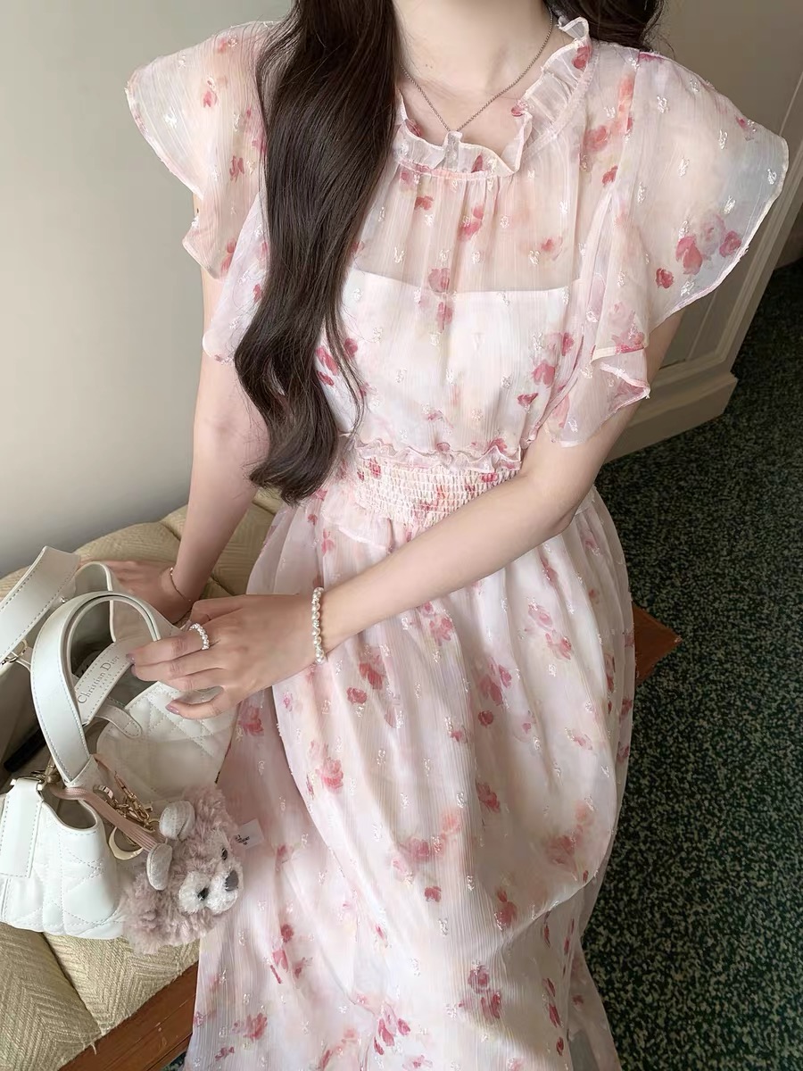 초기 꿈 pokemeng4 29 봄 티 장미 클리어 부서 허리 수축 꽃무늬 일본식 부드러운 드레스 롱 스커트