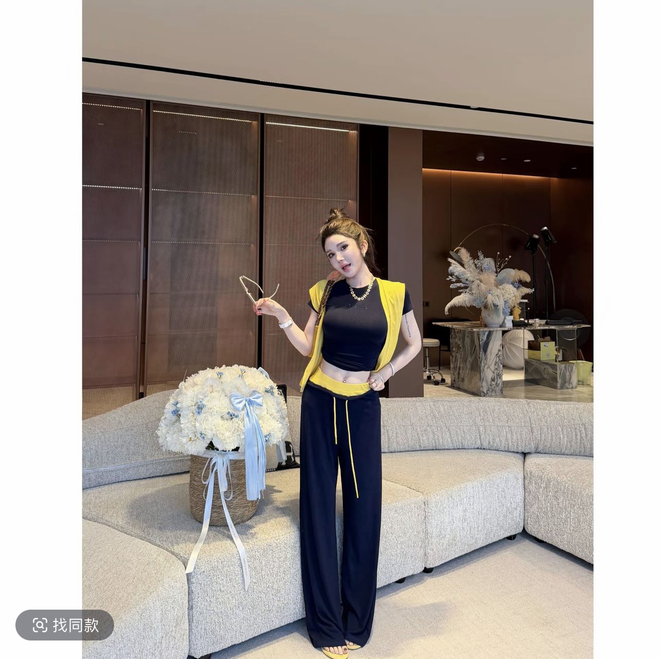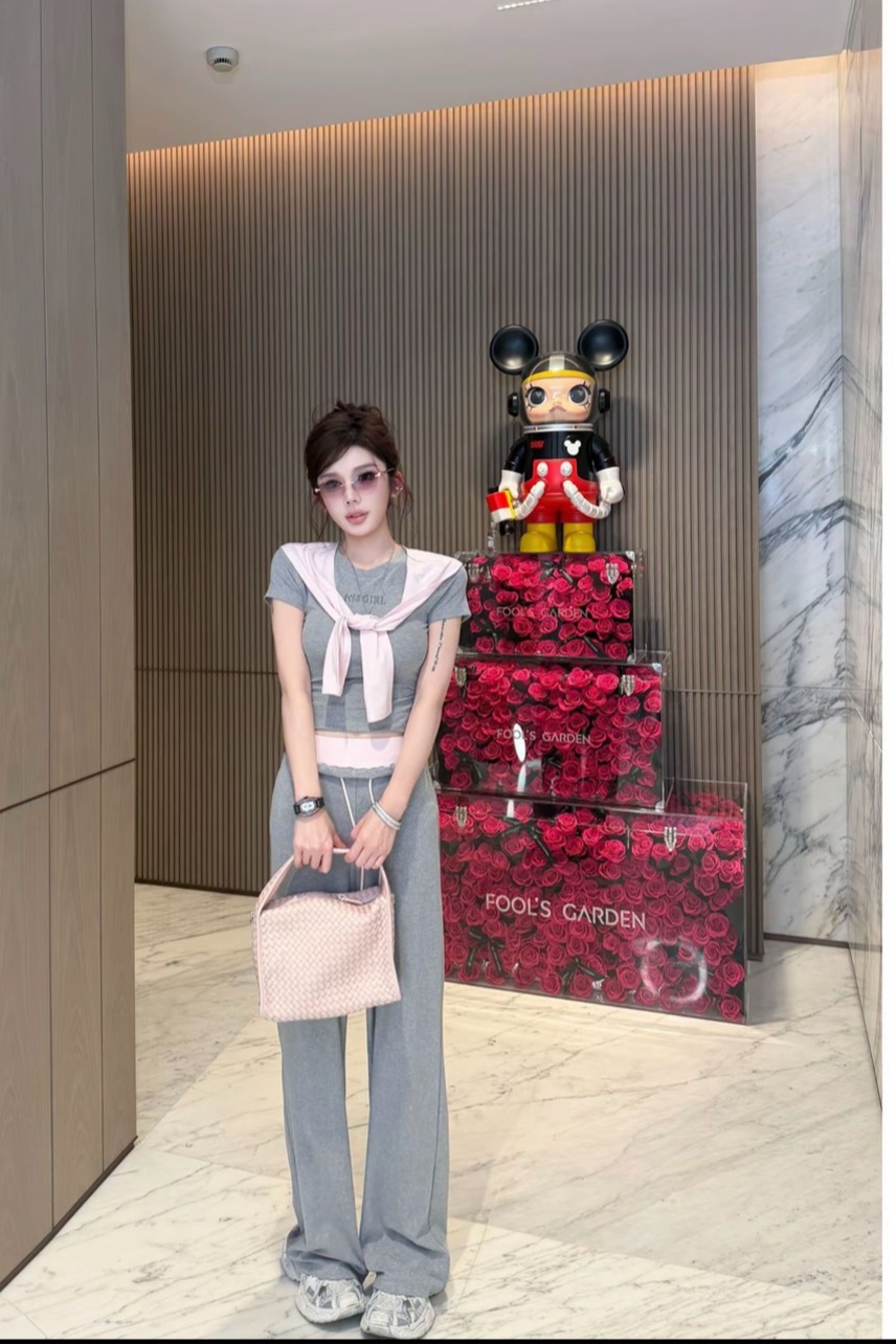작은 조용한 잠시 2026 봄 아모이 3 차원 자르기 정장 캐주얼 바지 새로운 다용도 슬림해 보이는 티셔츠 맨위