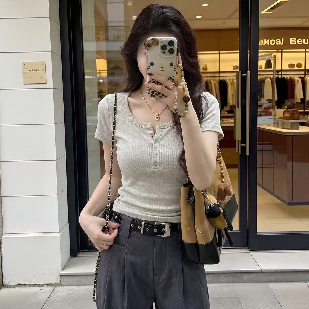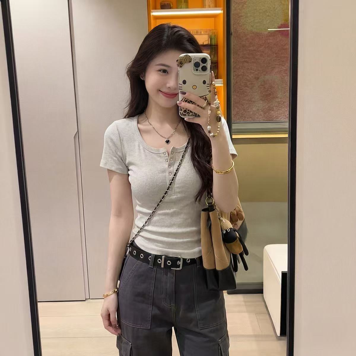 실사 40 순면 210 그램 92 면 8 암모니아 Lun 반팔 티셔츠 여성 단추