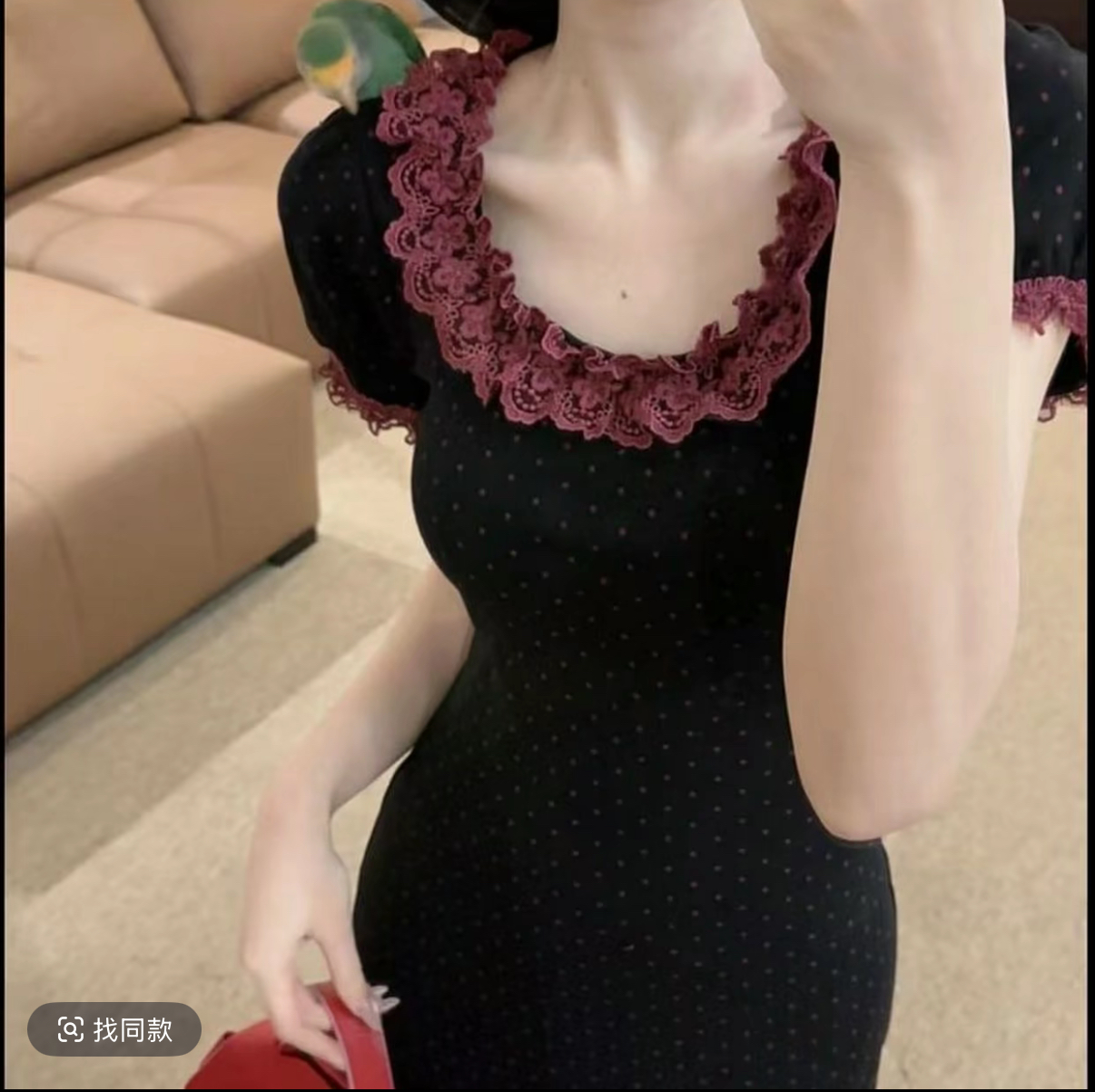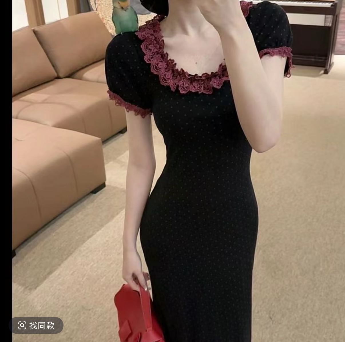 여름 품격 슬림해 보이는 프랑스식 도트 무늬 디자인 센스 레이스 허리 수축 몸매 가꾸기 인어 꼬리 롱 스커트