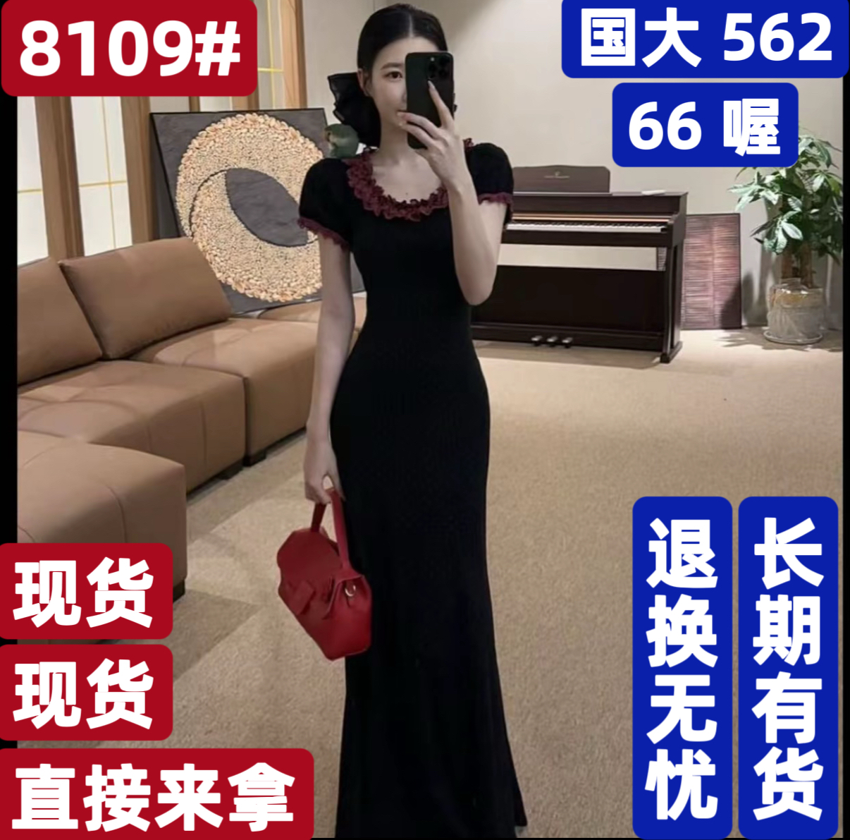 실사 정가 튜브탑 드레스 여름 리본 망사 휴가 바람 롱 스커트 허리 수축 타이트 스커트 인어 꼬리 스커트