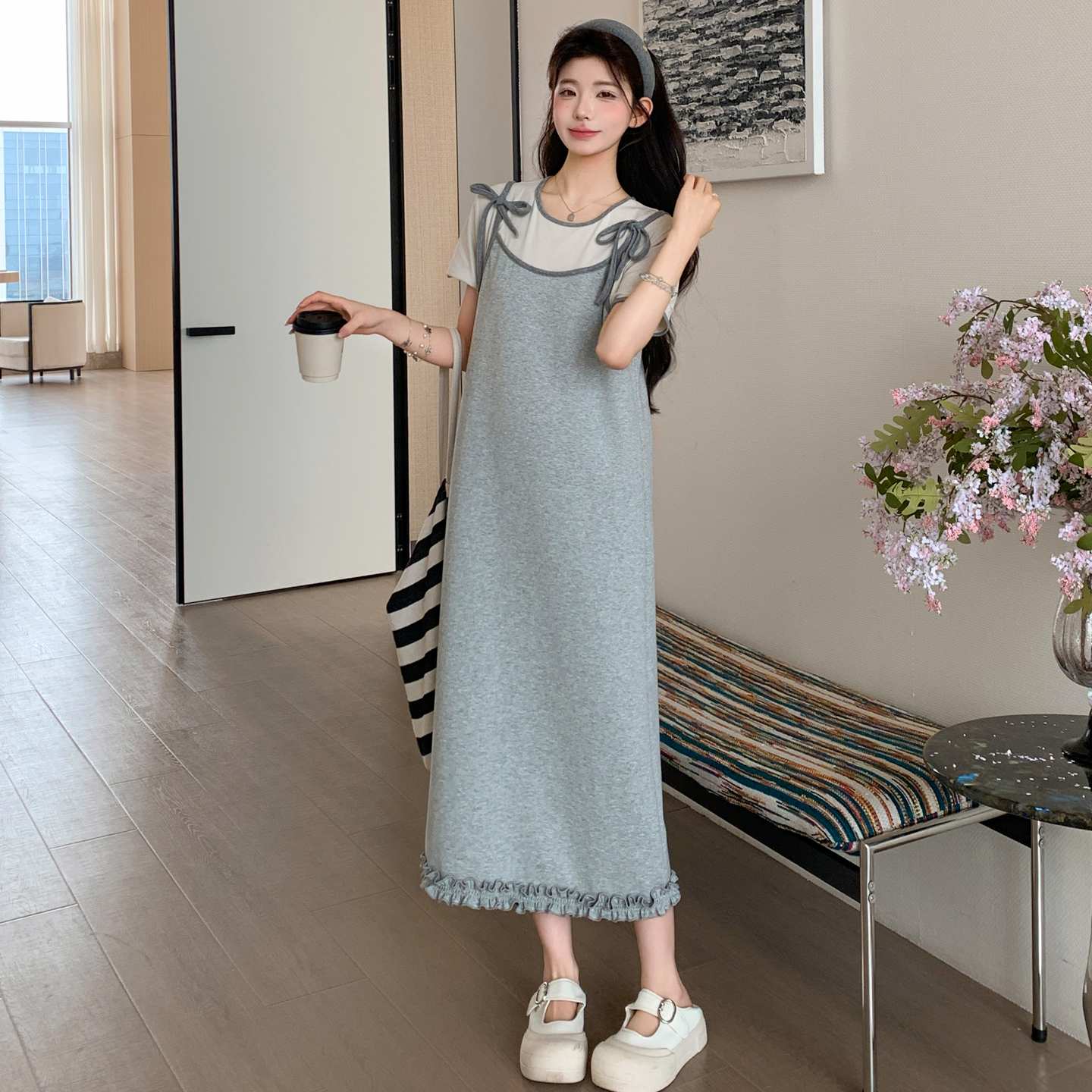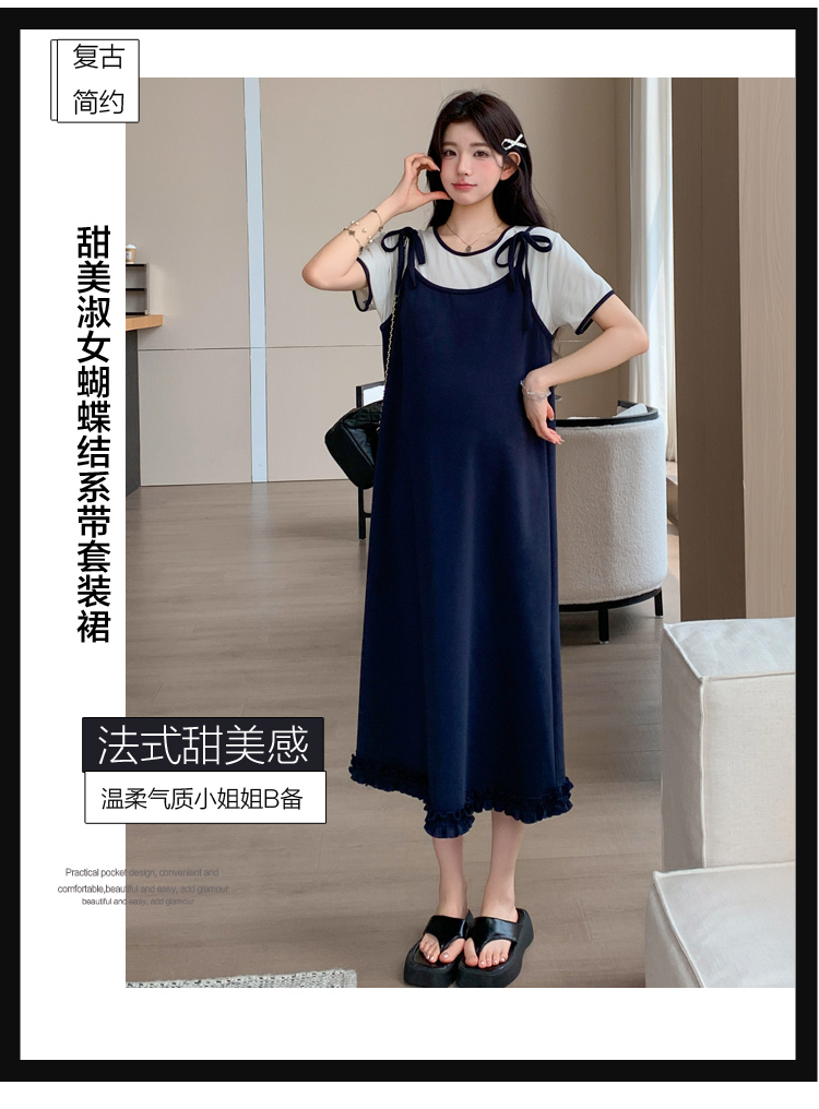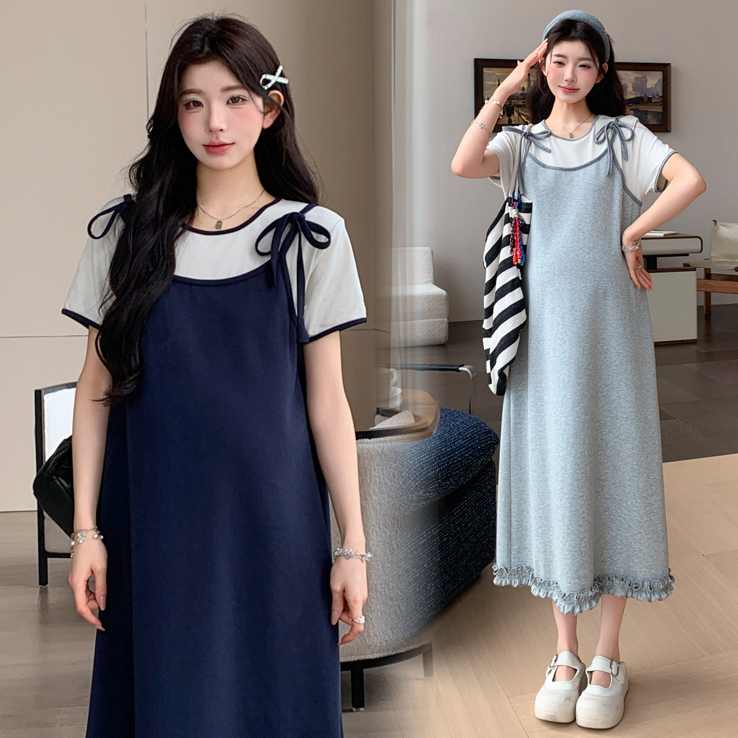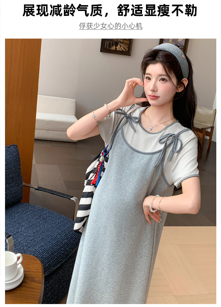 실사 2026 여름 새로운 미니멀리즘 레이스 페이크 레이어드 끈 고급 센스 루즈핏 슬림해 보이는 임산부 드레스
