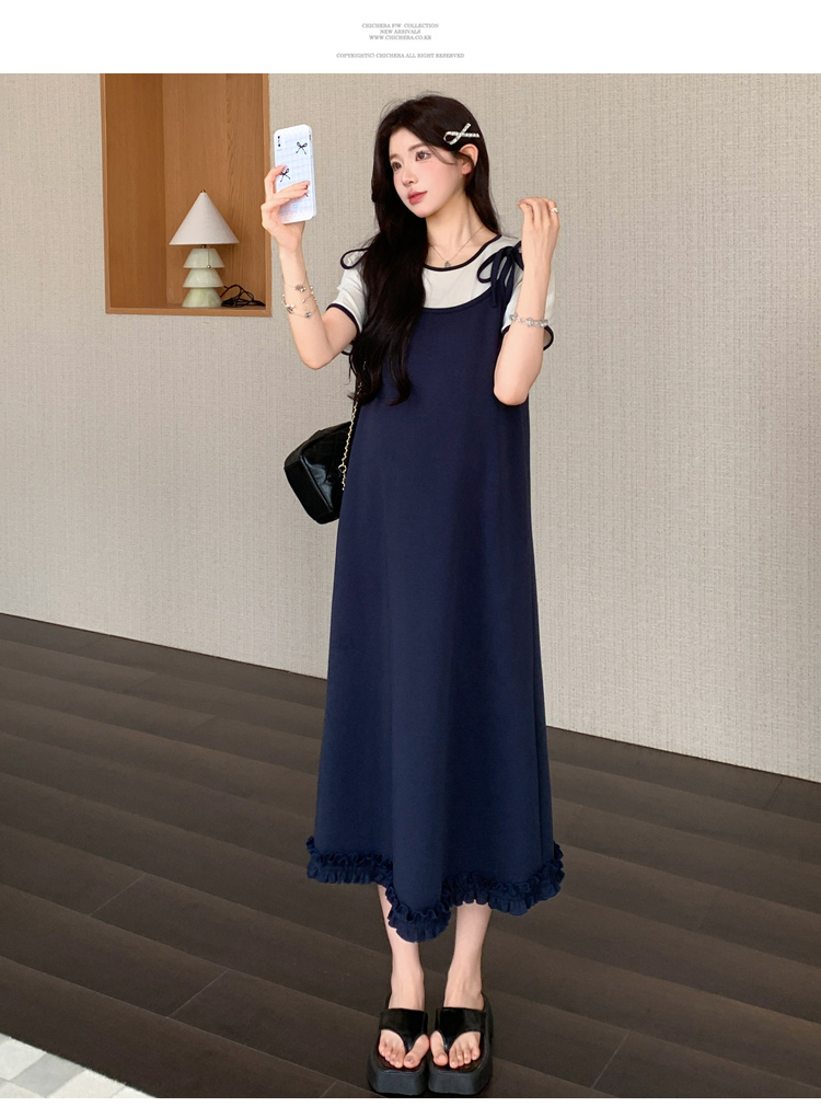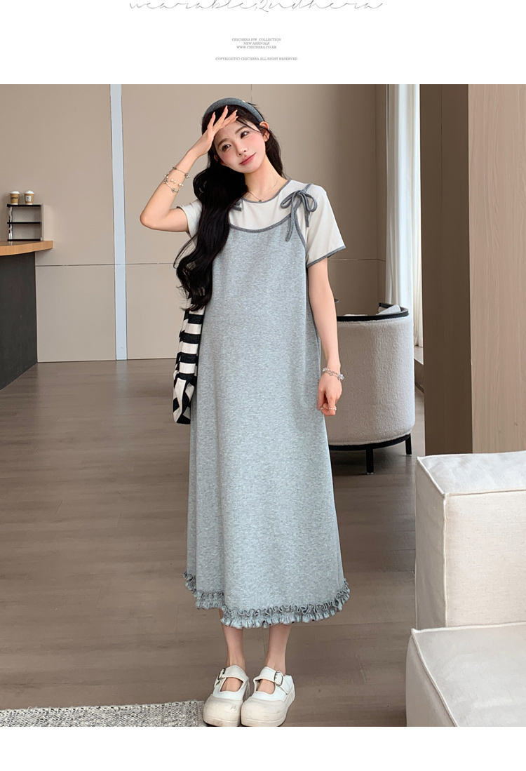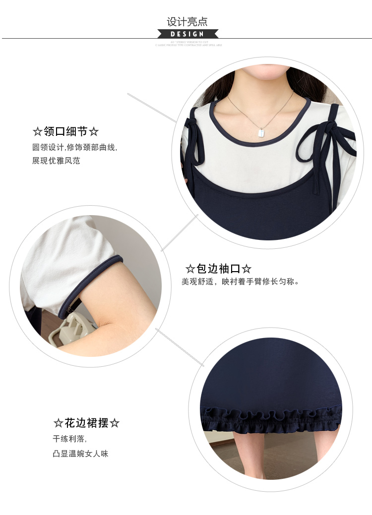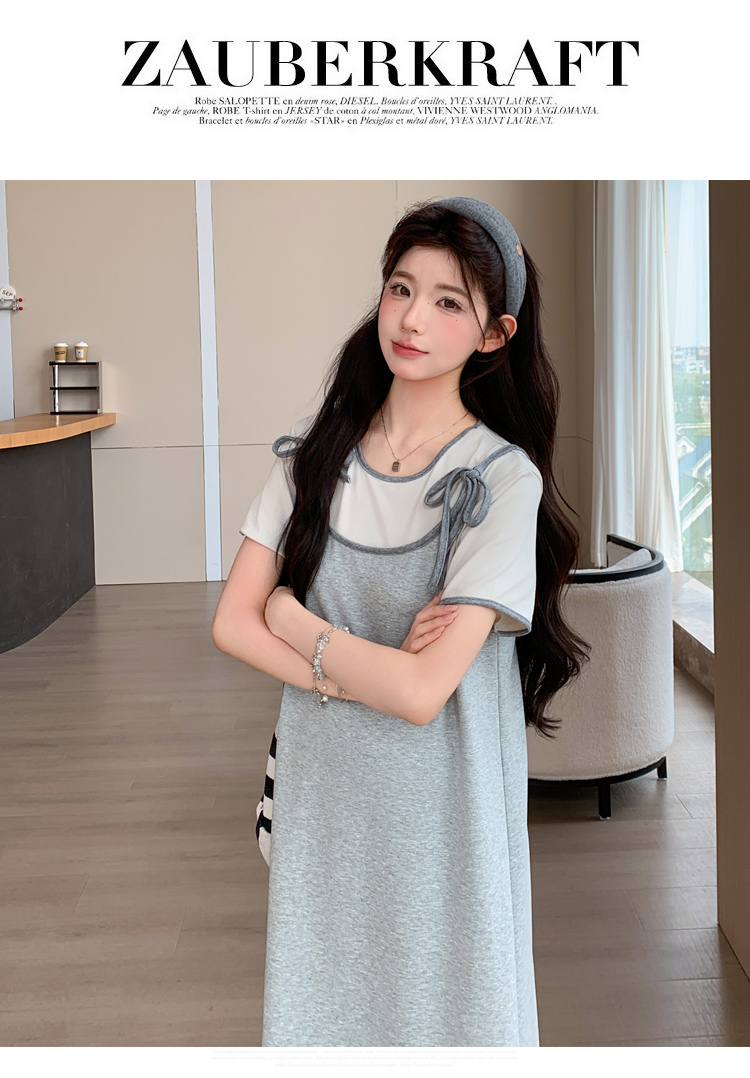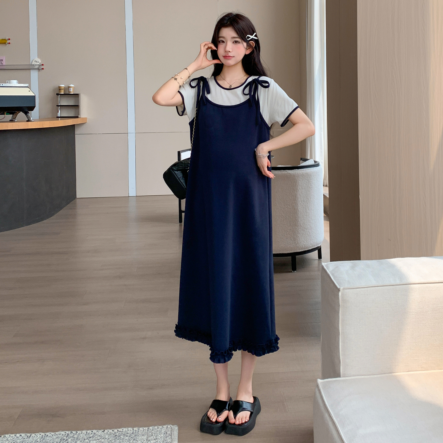 실사 2026 여름 새로운 미니멀리즘 레이스 페이크 레이어드 끈 고급 센스 루즈핏 슬림해 보이는 임산부 드레스