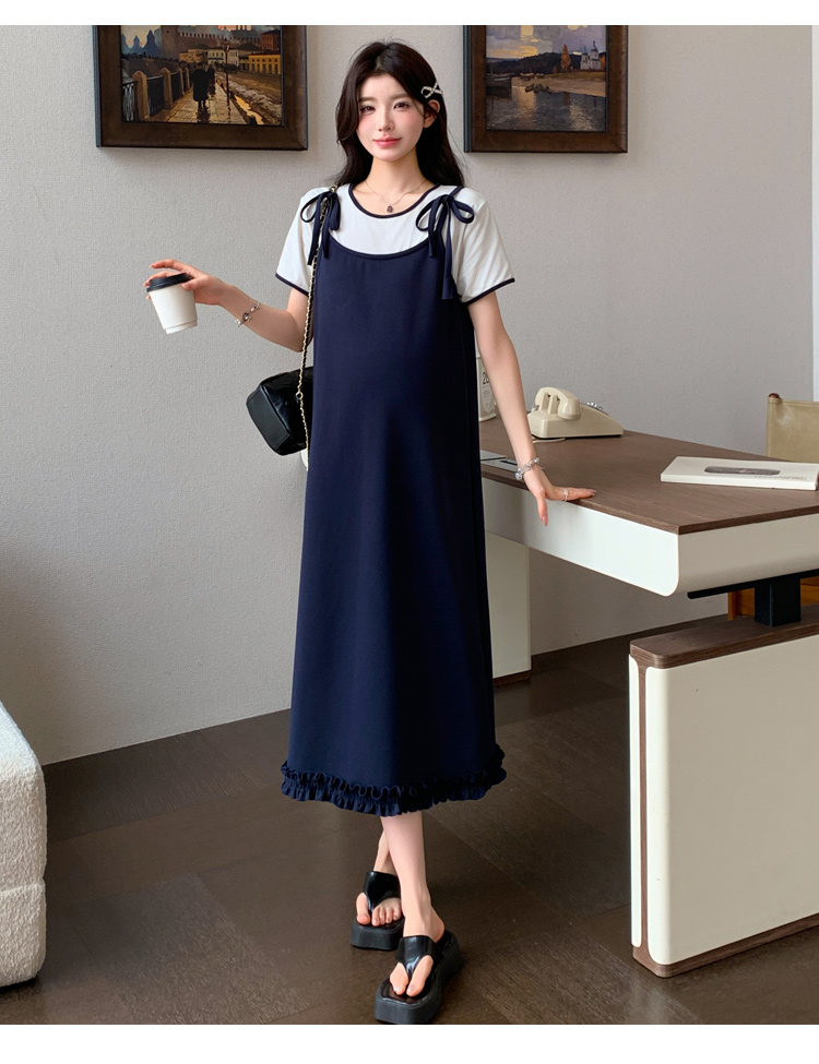 실사 새로운 인터넷 유명인 임산부 여름 드레스 순면 니트 임산부 조끼 스커트 숄 몸매 가꾸기 슬림해 보이는 출산 스커트