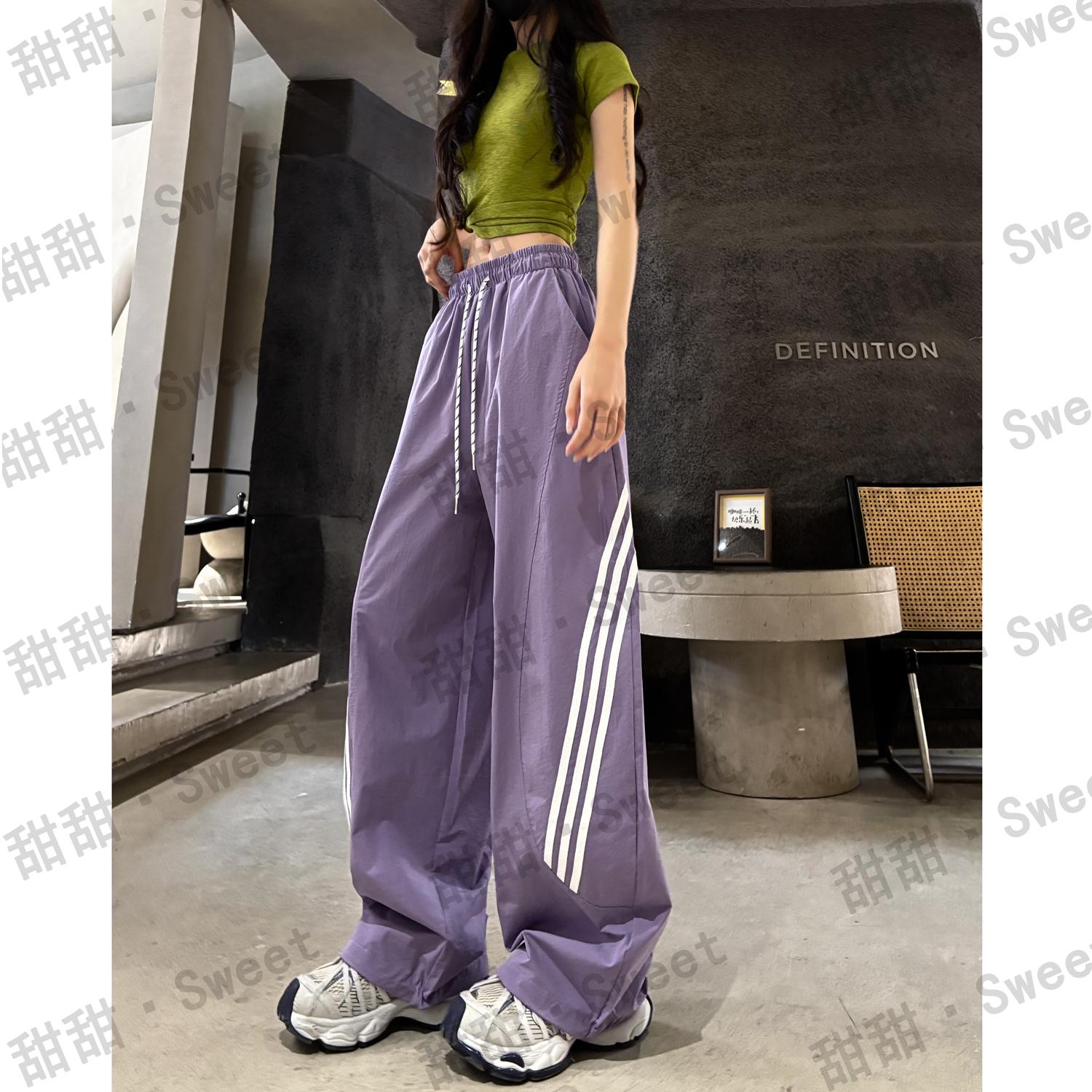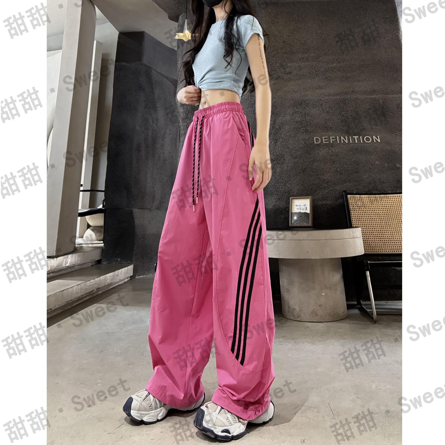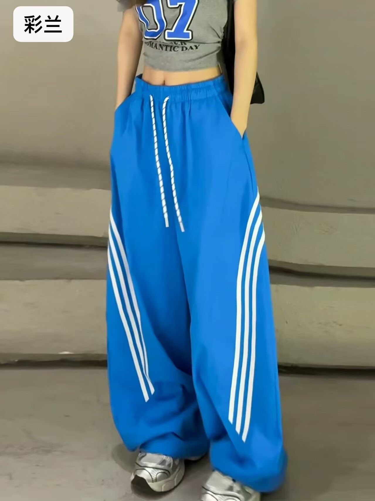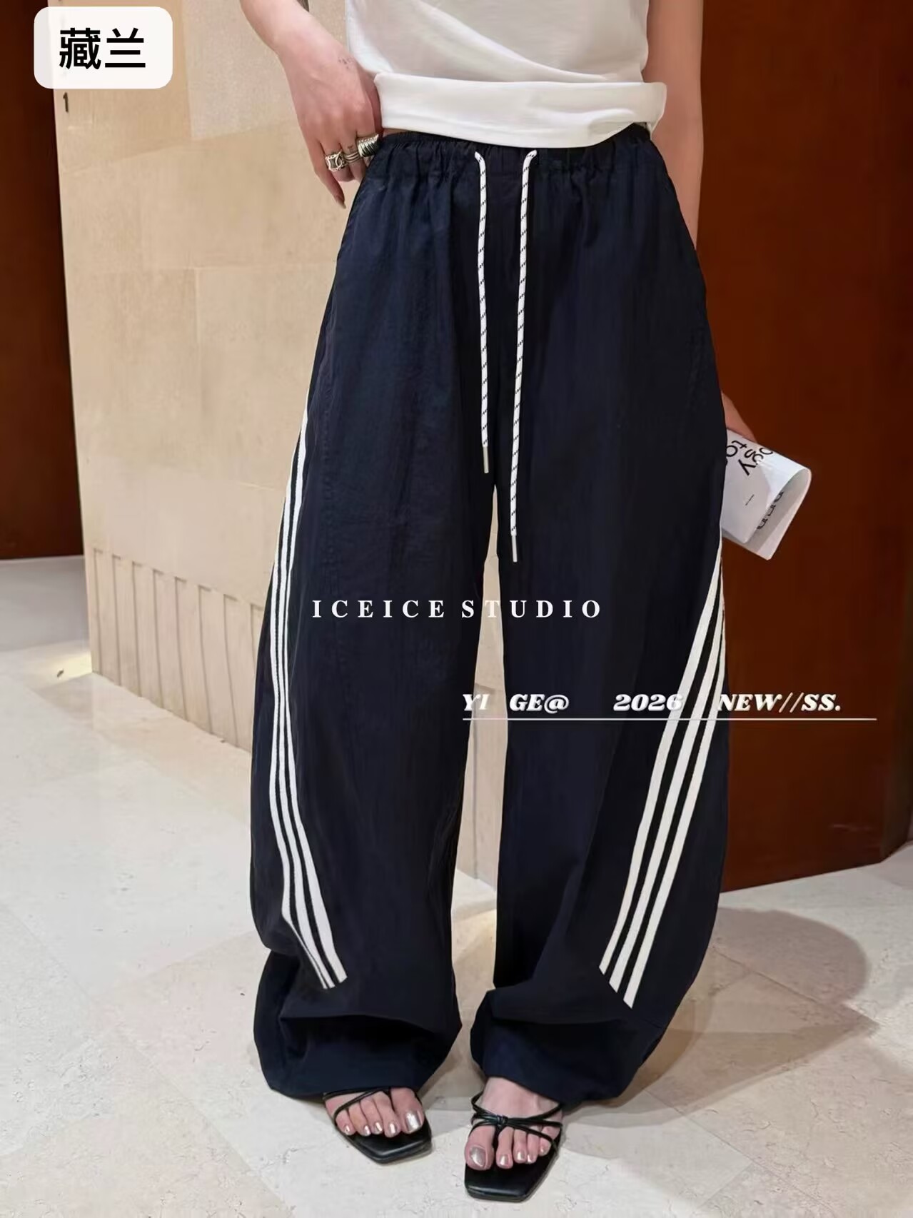 2026 봄 여름 새로운 도파민 색상 시스템 측면 스트라이프 스트레이트 넓은 다리 모통이 칼 바지 루즈핏 슬림해 보이는 캐주얼 바지 여성