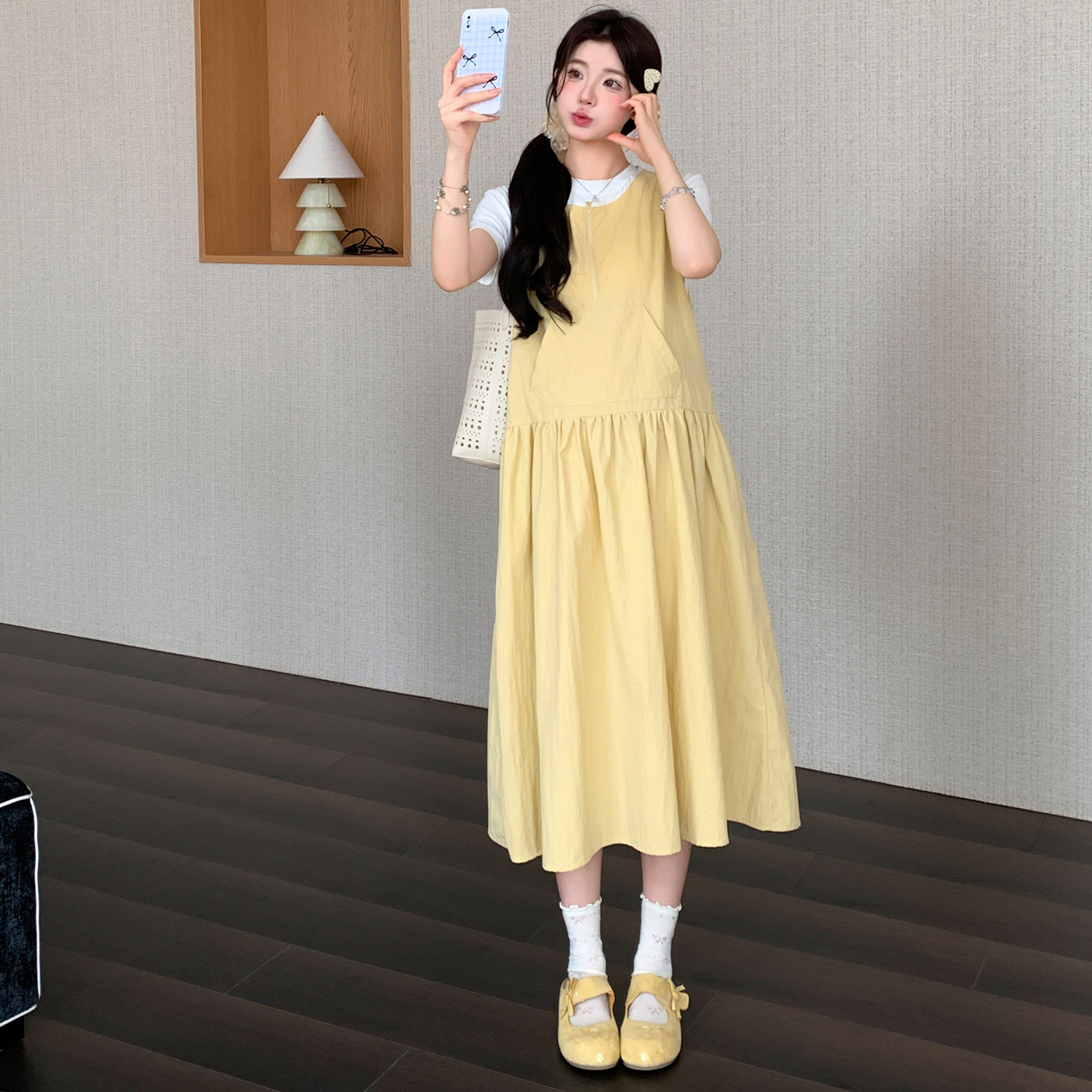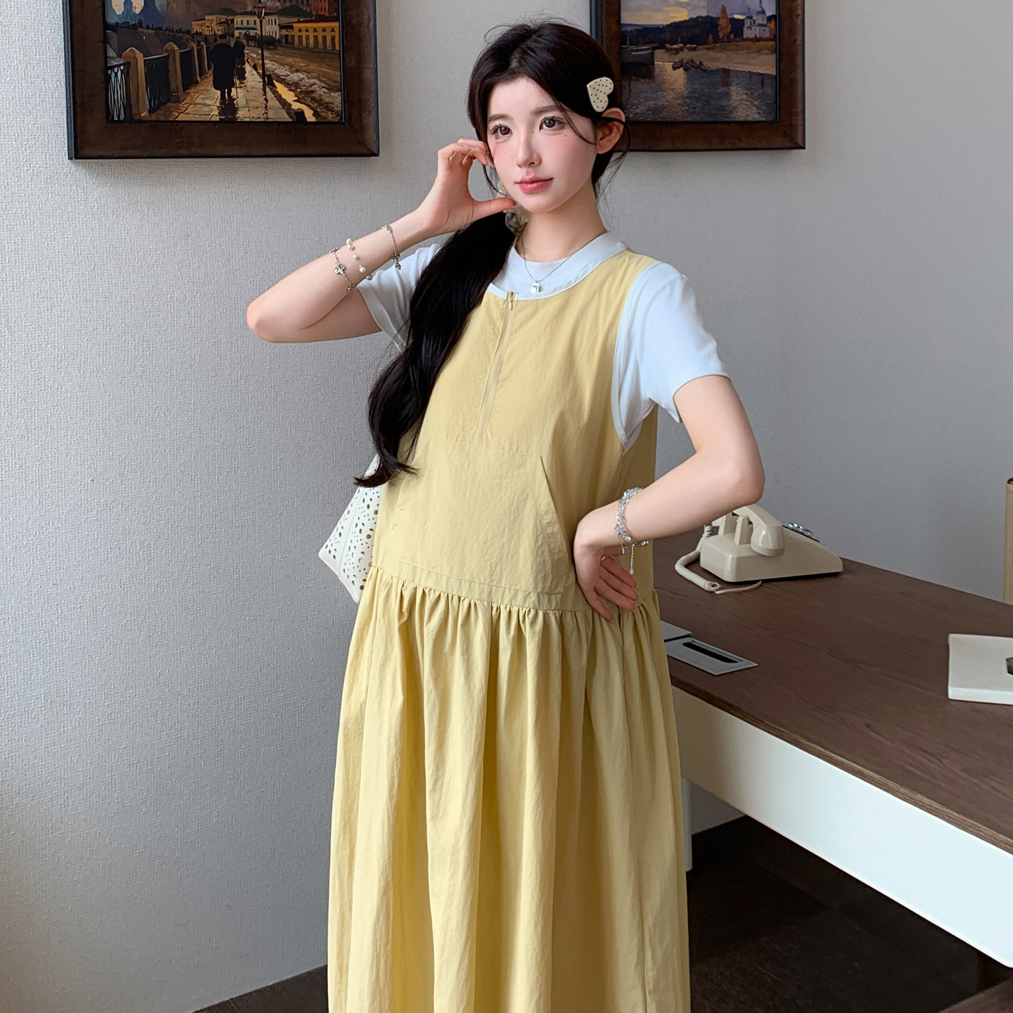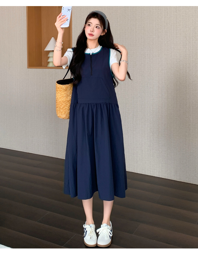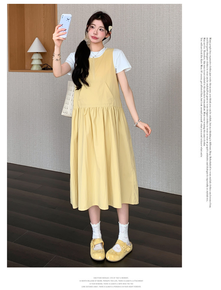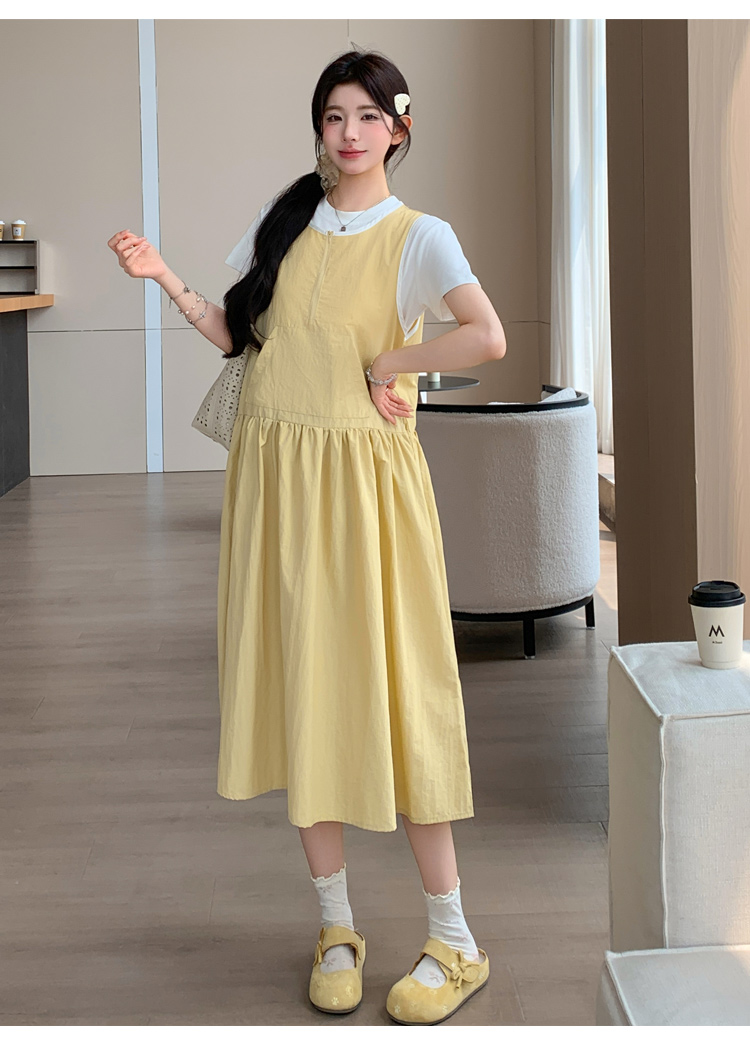 실사 2026 여름 새로운 미니멀리즘 레이스 페이크 레이어드 끈 고급 센스 루즈핏 슬림해 보이는 임산부 드레스