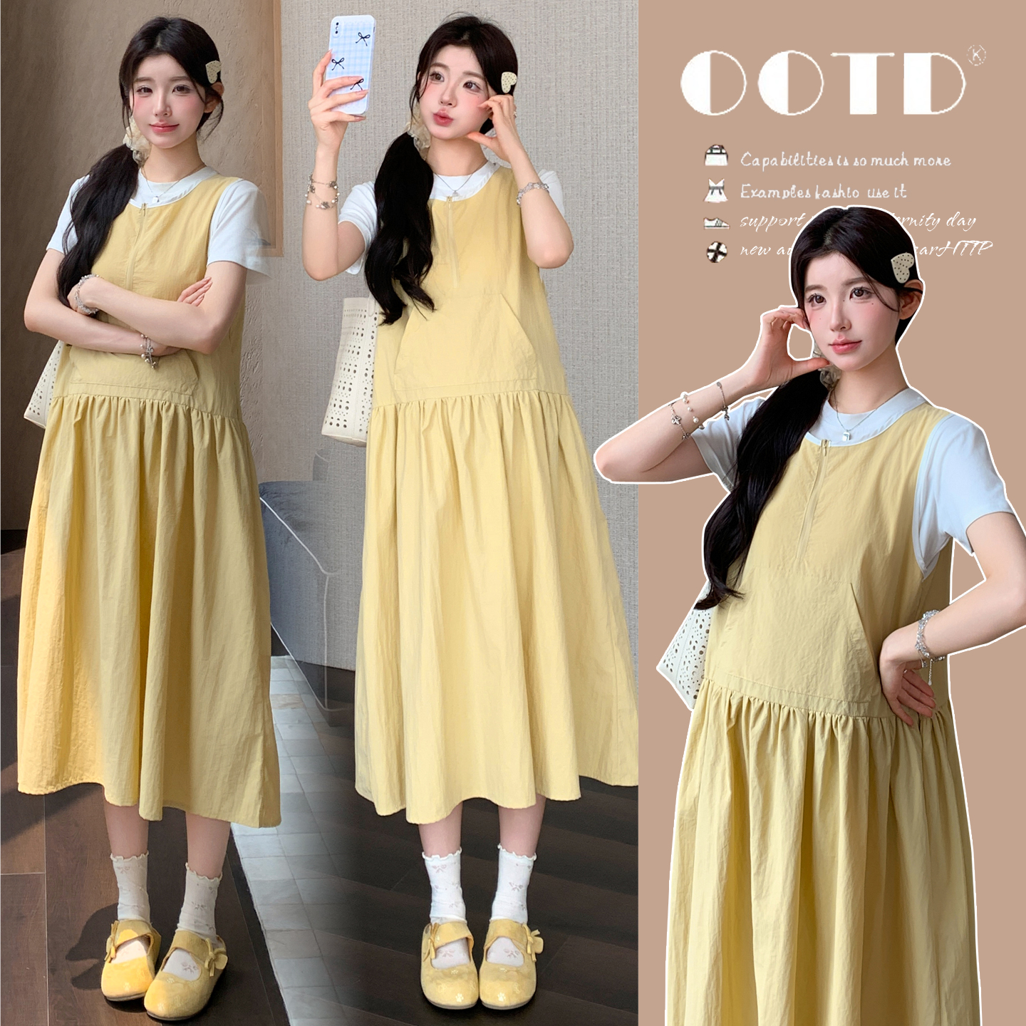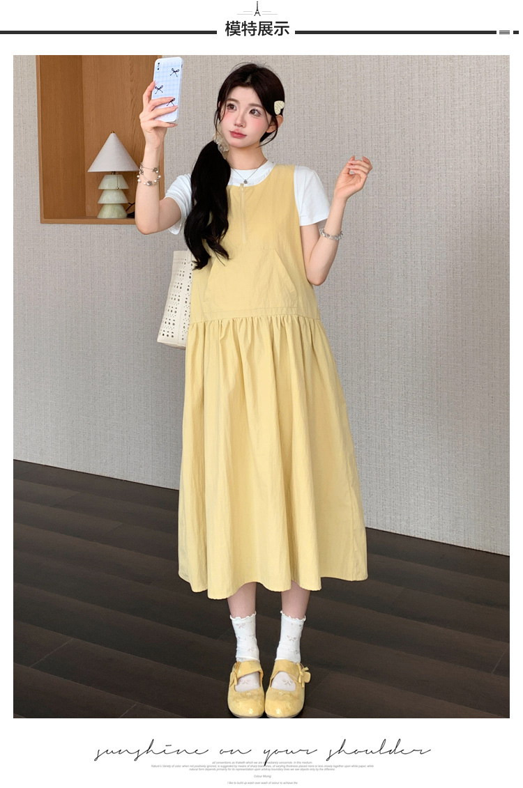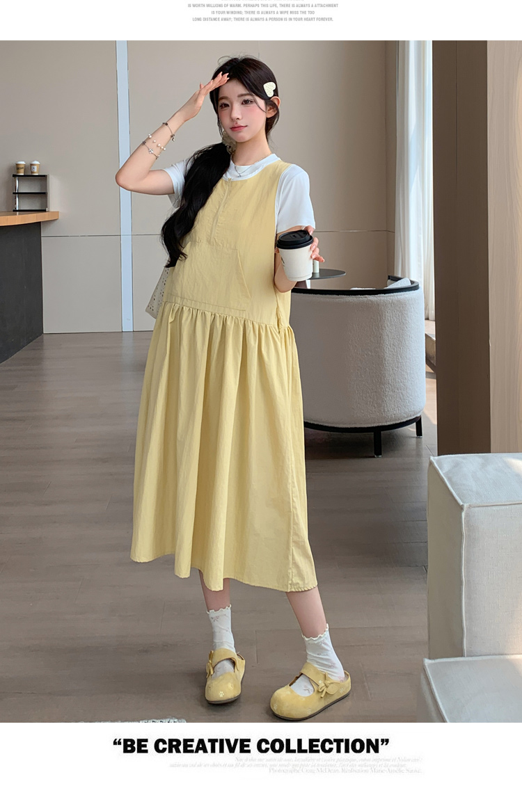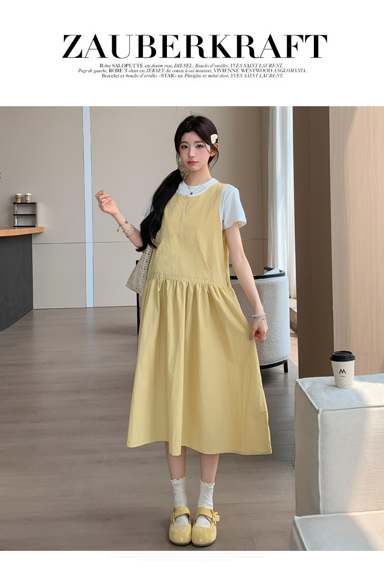 실사 2026 여름 새로운 임산부 조끼 원피스 라운드 넥 맨위 투피스 세트 루즈핏 표지 고기 세트