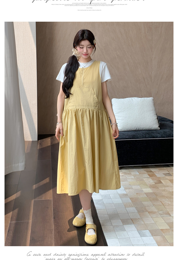 지금 2026 임산부 여름 새로운 루즈핏 플리츠 라운드 넥 미니멀리즘 문예 바람 우아함 부드러운 캐주얼 다용도 치마