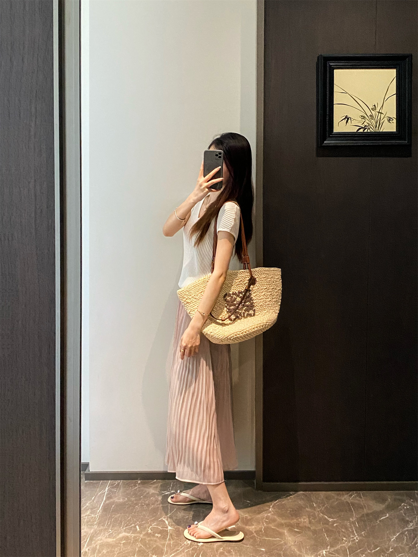 Tianxian 치마 26 여름 새로운 가벼움 투명한 감기 품격 바람 깨진 Pleat 도루 센스 큰 진자 플리츠 반신 스커트 여성 p