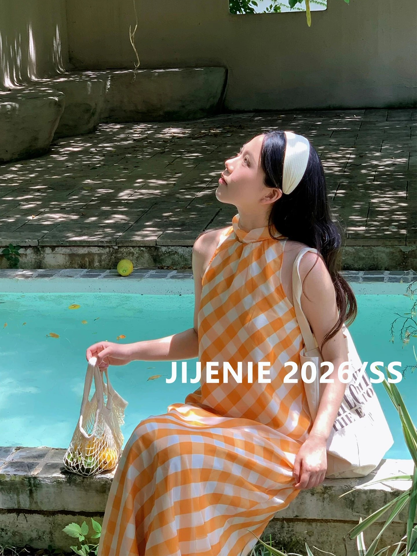 수정 에디션 2026 년 여름 새로운 디자인 센스 터틀넥 행침 목 주황색 체크무늬 리본 점프 슈트 롱 스커트