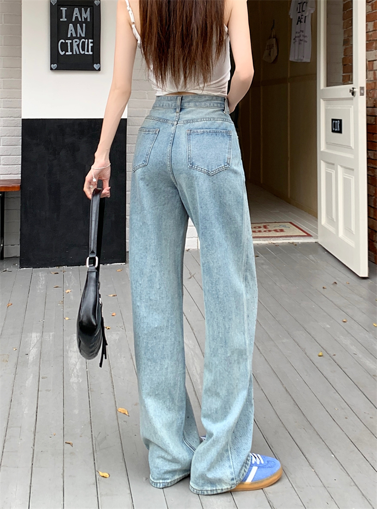 실사 새로운 빅 사이즈 워싱 레트로 밝은색 청바지 루즈핏 다용도 스트레이트 넓은 다리 바닥 청소 바지 벨트 보내기
