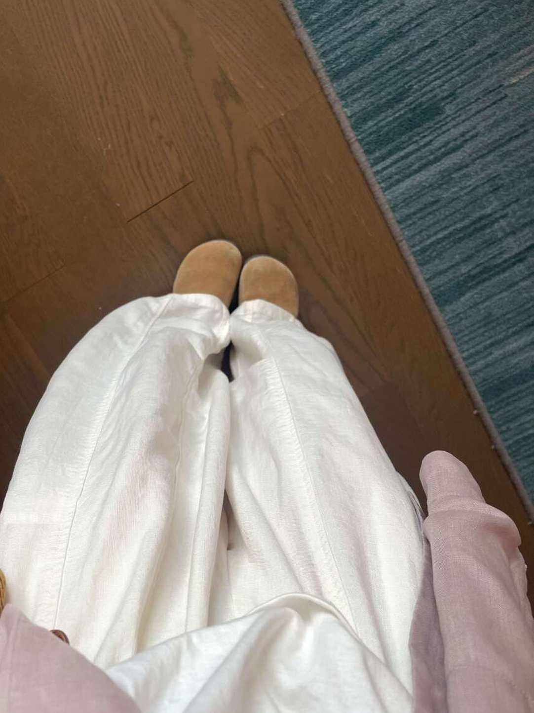 미니멀리즘 한국 스타일 느긋한 바람 도루 센스 주간 실크 마 와이드 레깅스 바지 여름 얇은 스타일 루즈핏 슬림해 보이는 하이웨이스트 캐주얼 바지