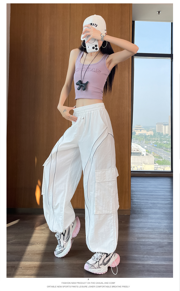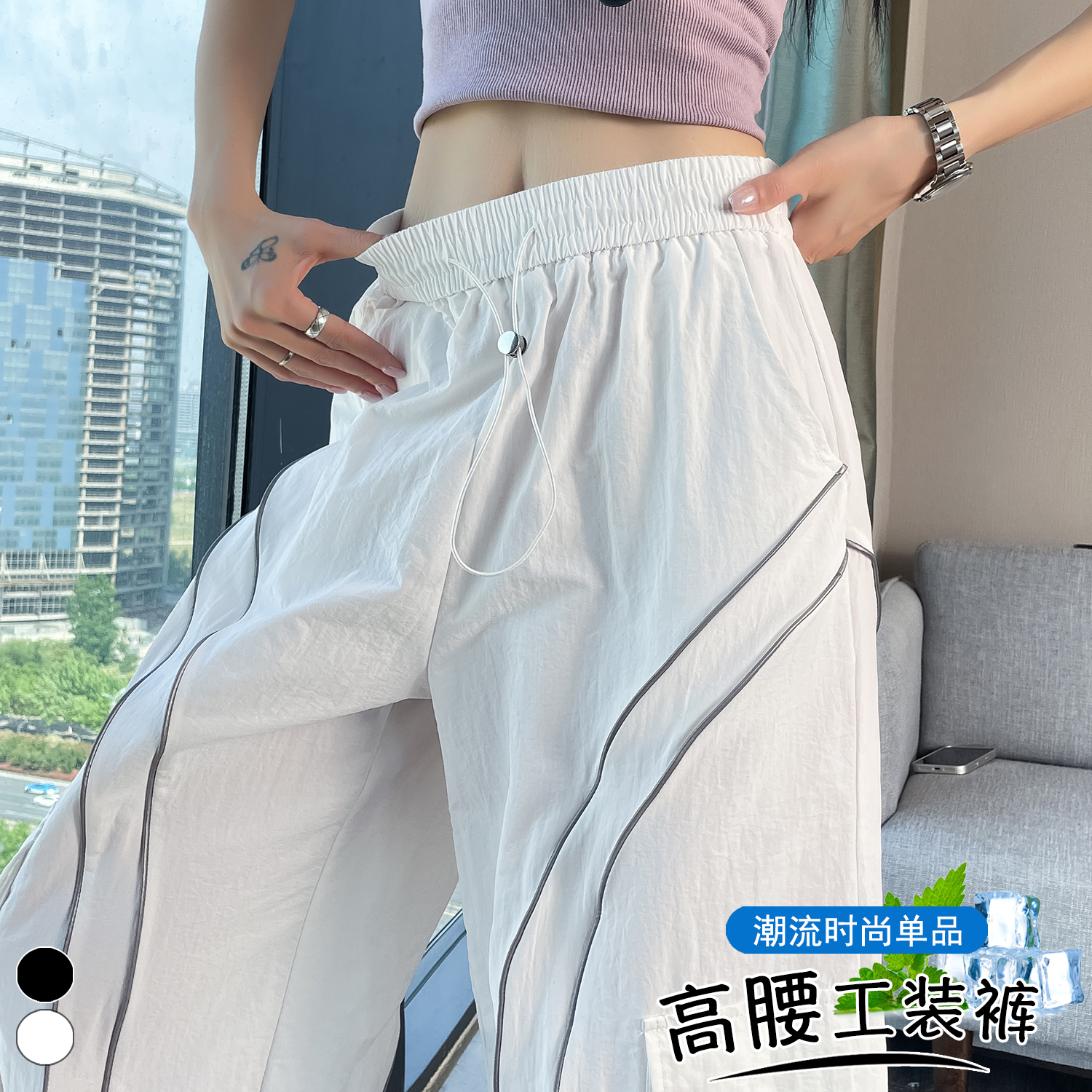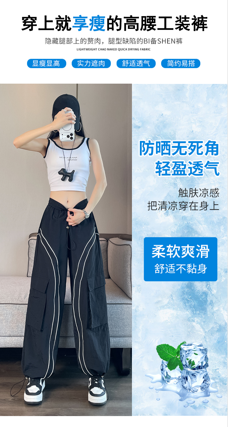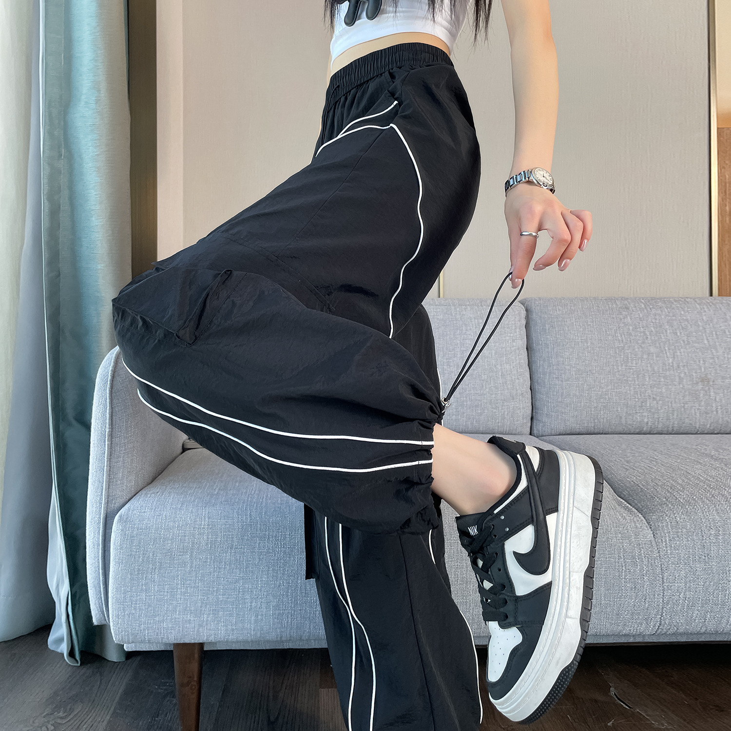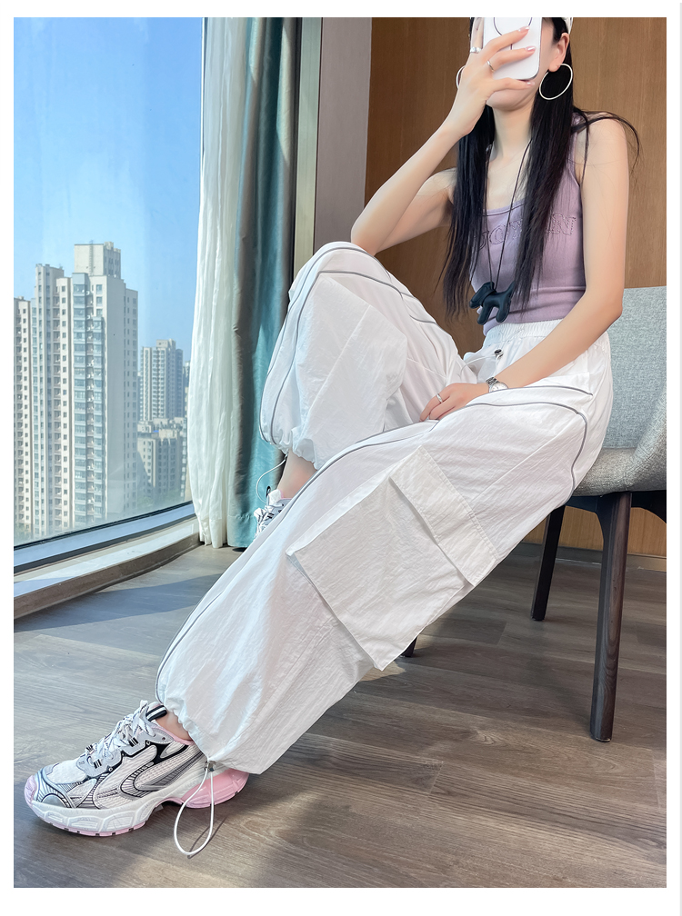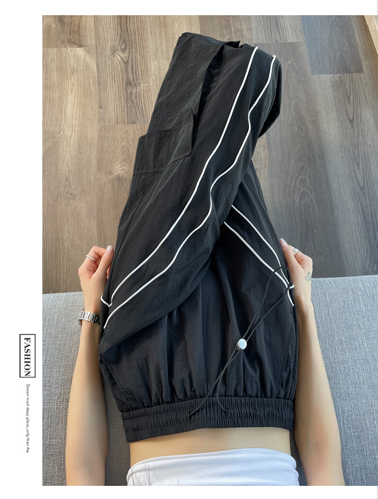실사 여름 얇은 스타일 둘 착용 디자인 센스 주머니 워크웨어 팬츠 여성 하이웨이스트 펌프 로프 조거 속도 건조한 캐주얼 바지