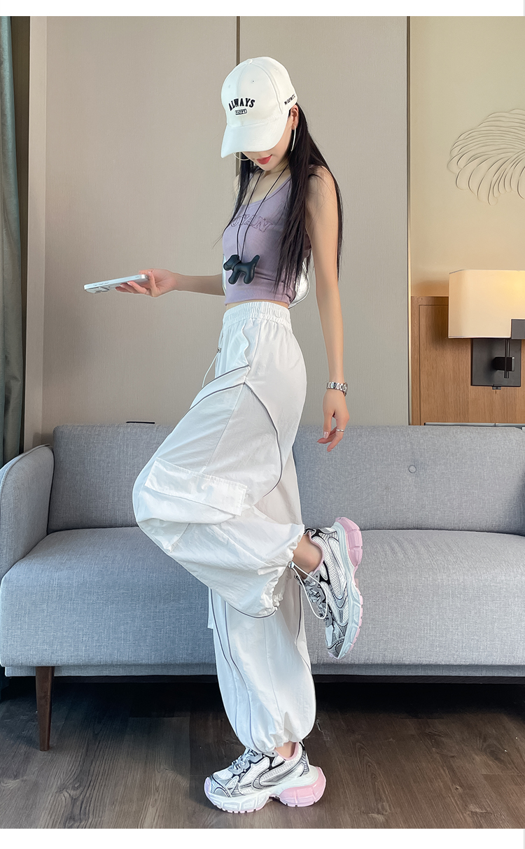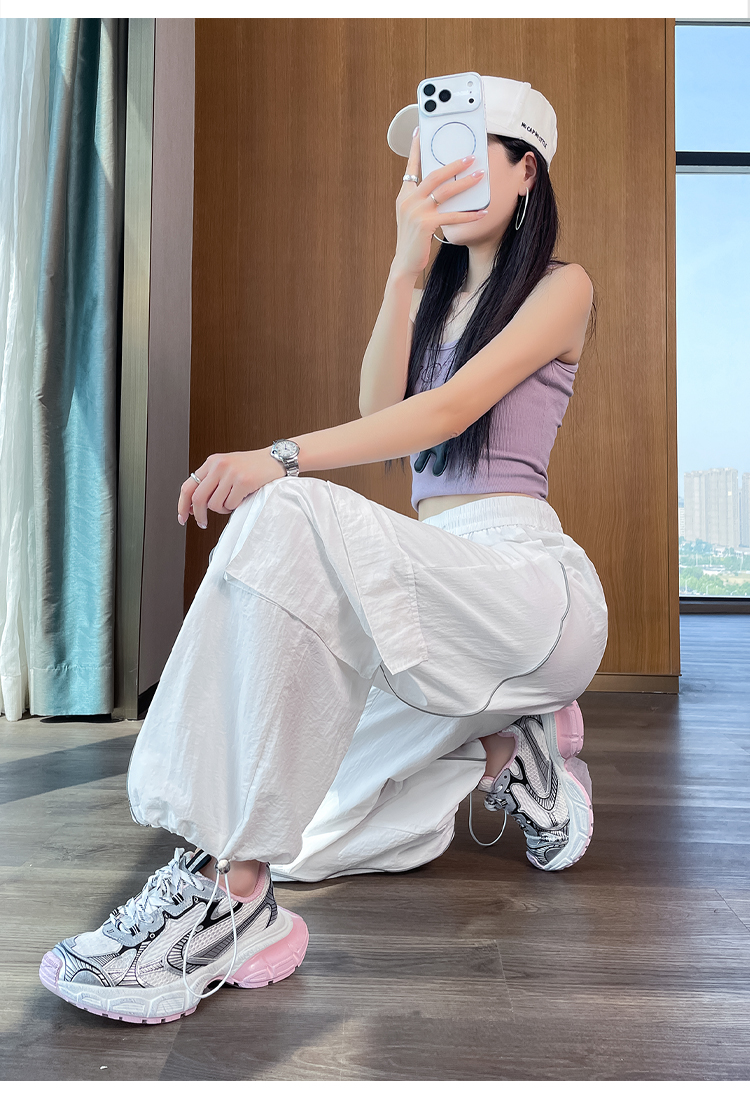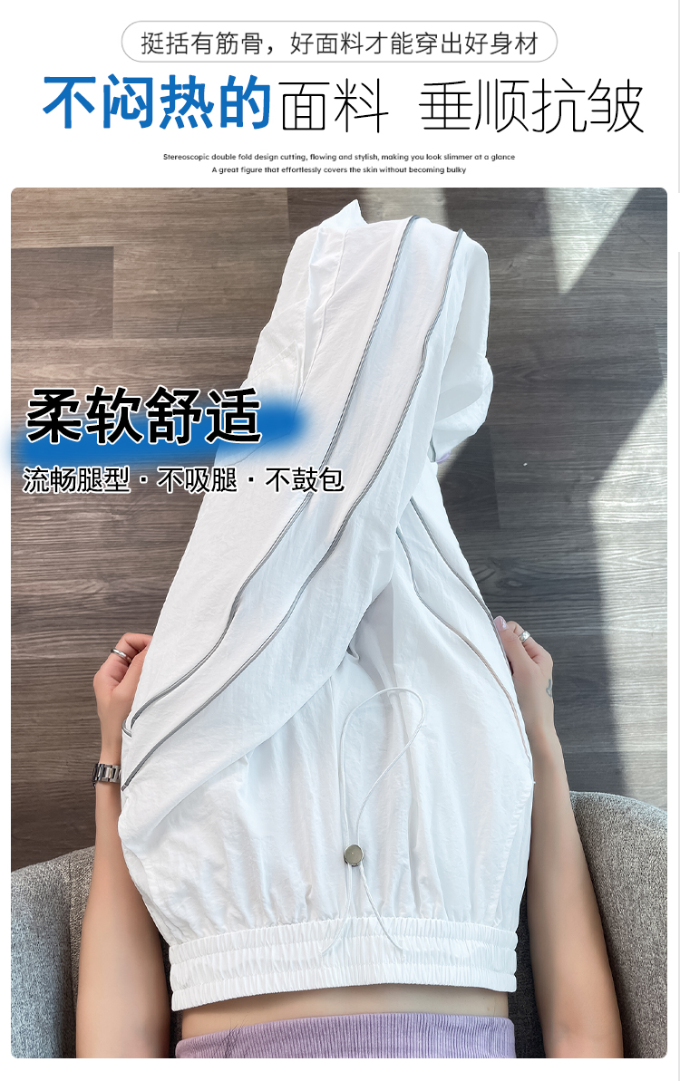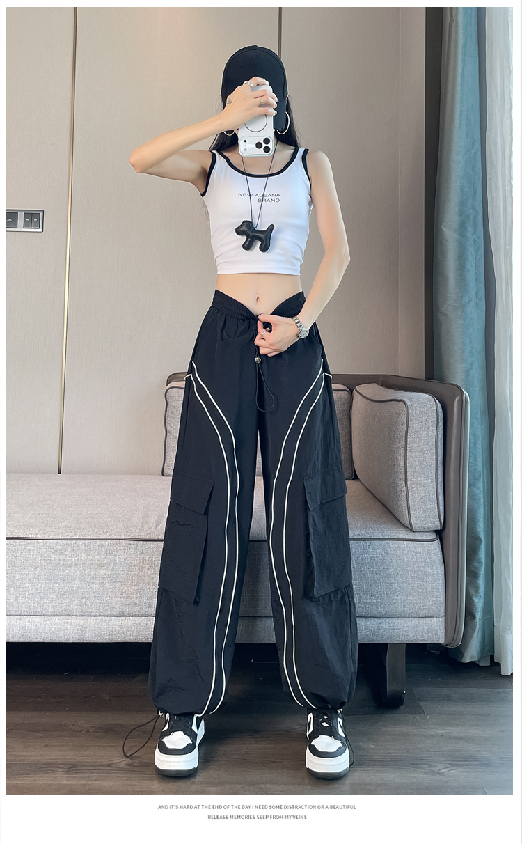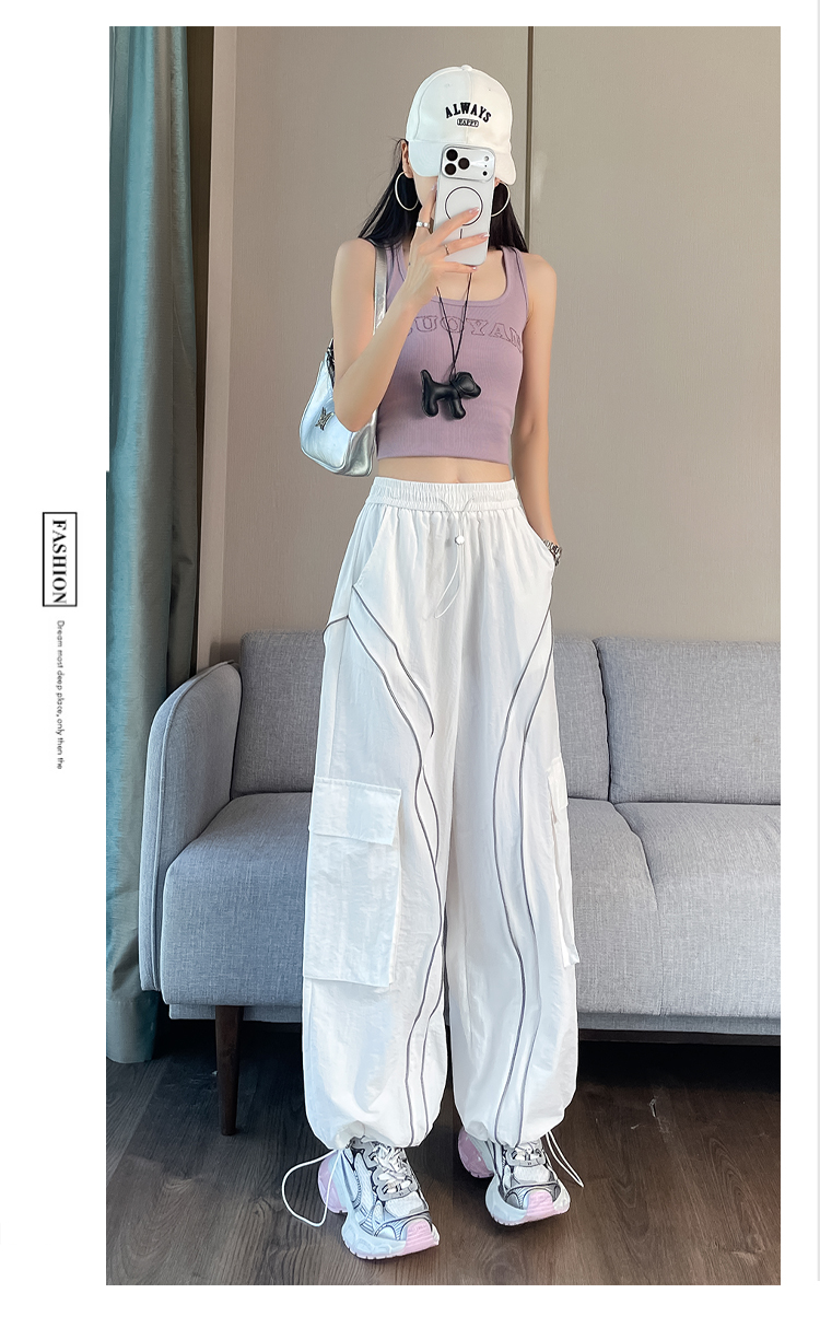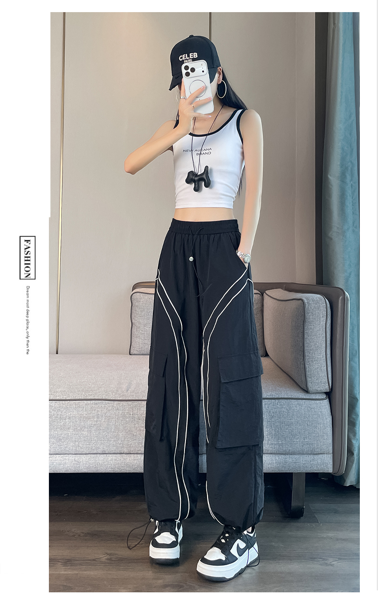 실사 여름 얇은 스타일 둘 착용 디자인 센스 주머니 워크웨어 팬츠 여성 하이웨이스트 펌프 로프 조거 속도 건조한 캐주얼 바지