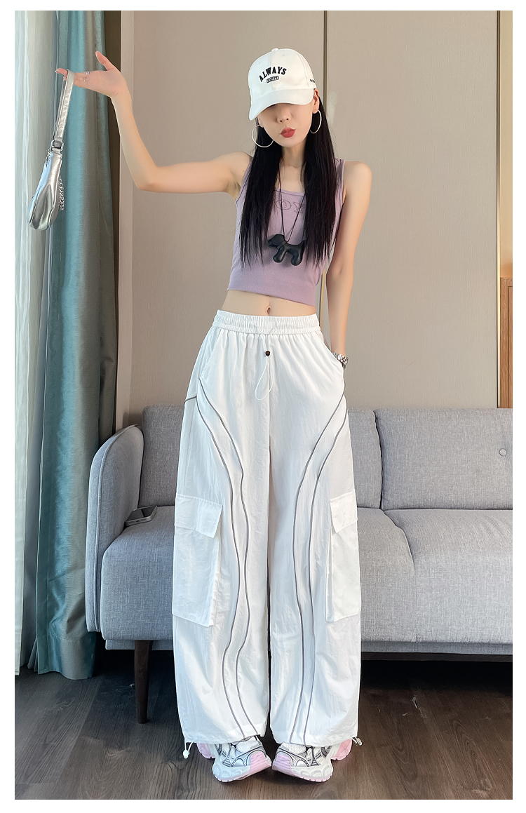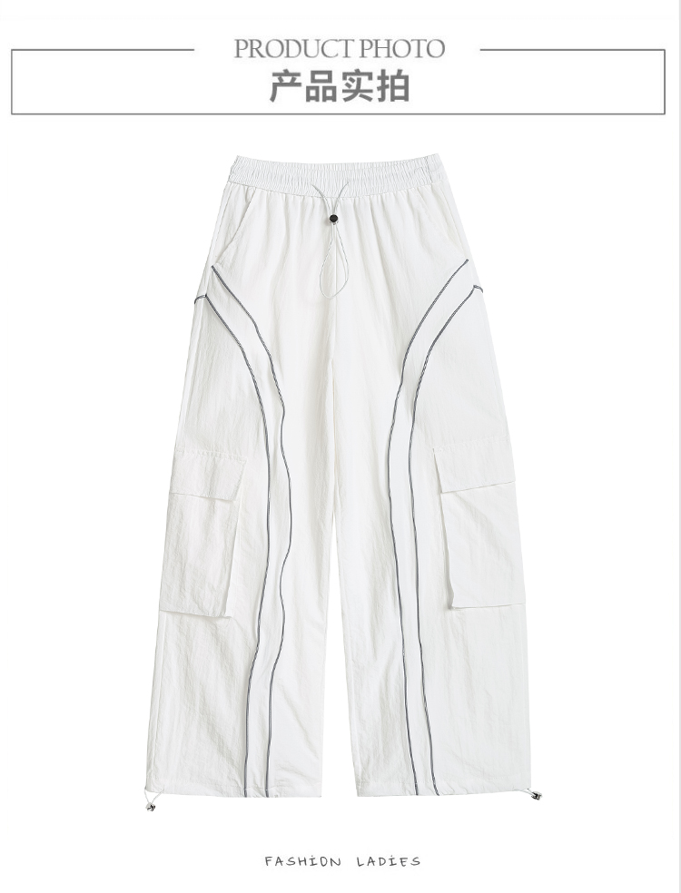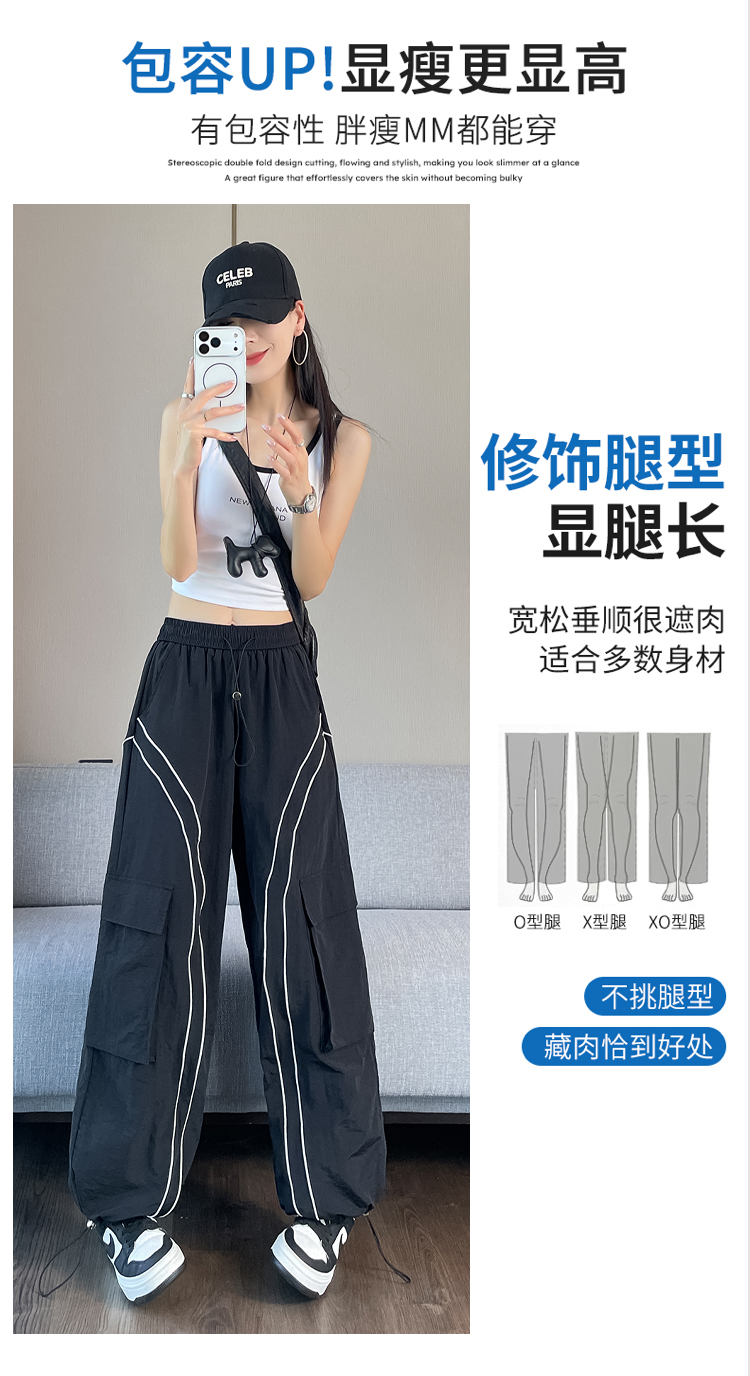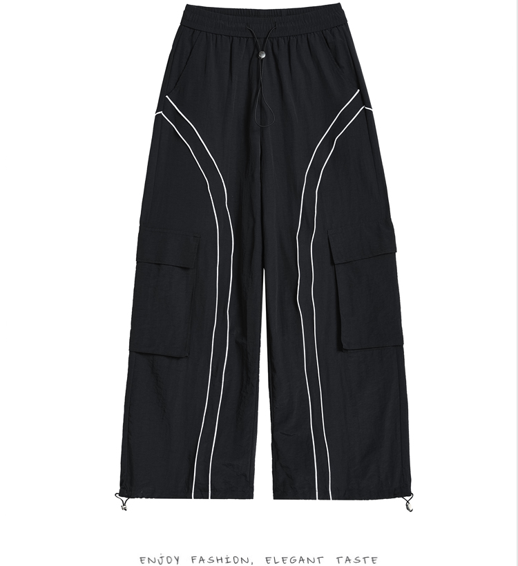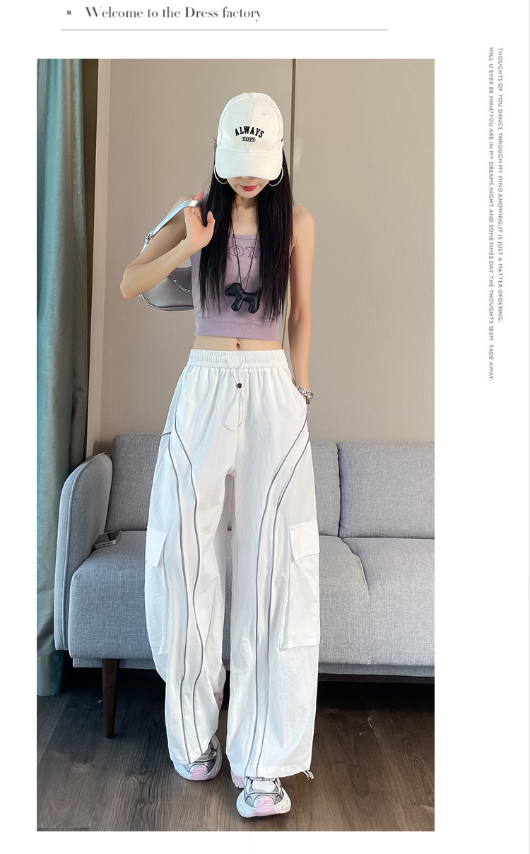 사면 신축 있음 주머니 여름 얇은 스타일 바지 2025 새로운 폭발 작은 키 루즈핏 스트라이프 넓은 다리 길이 바지