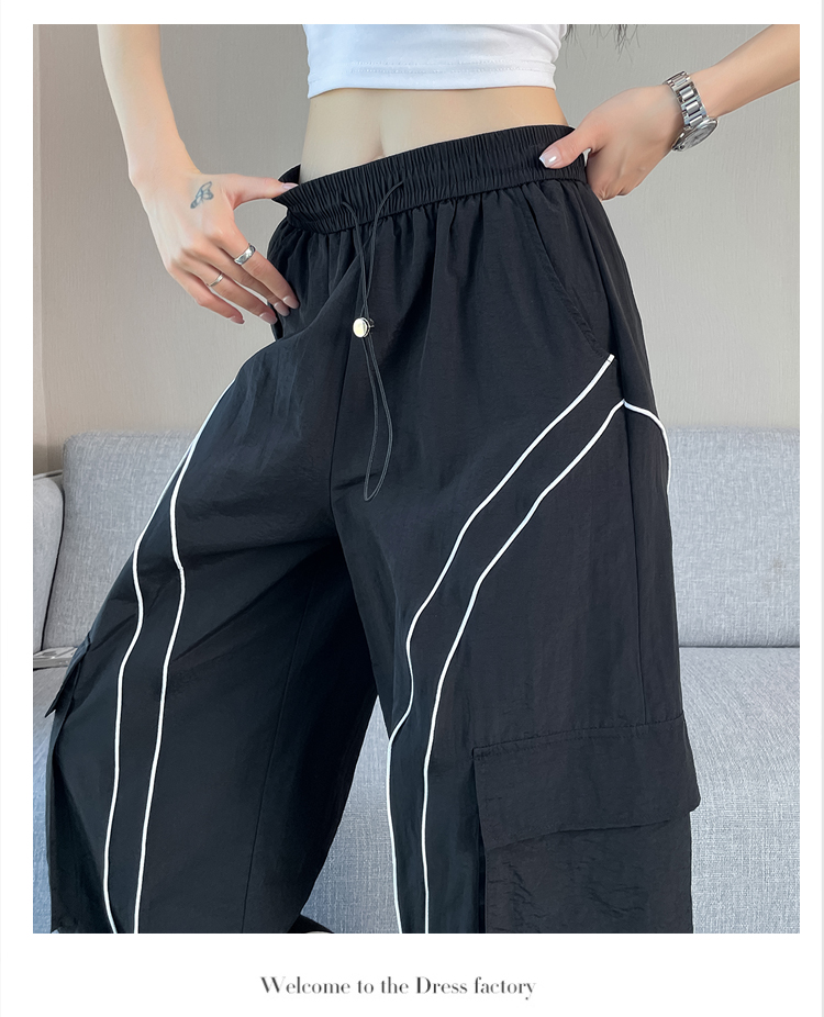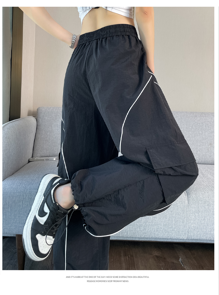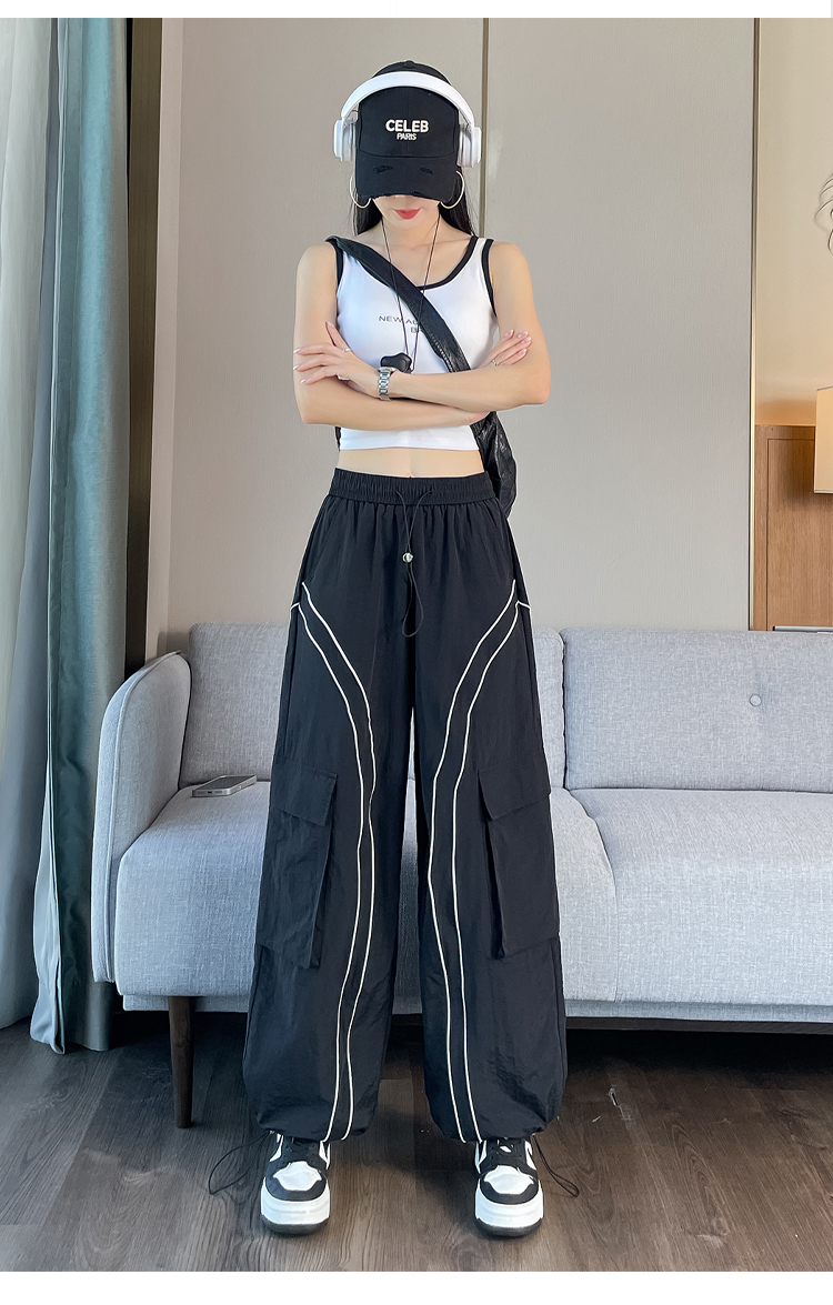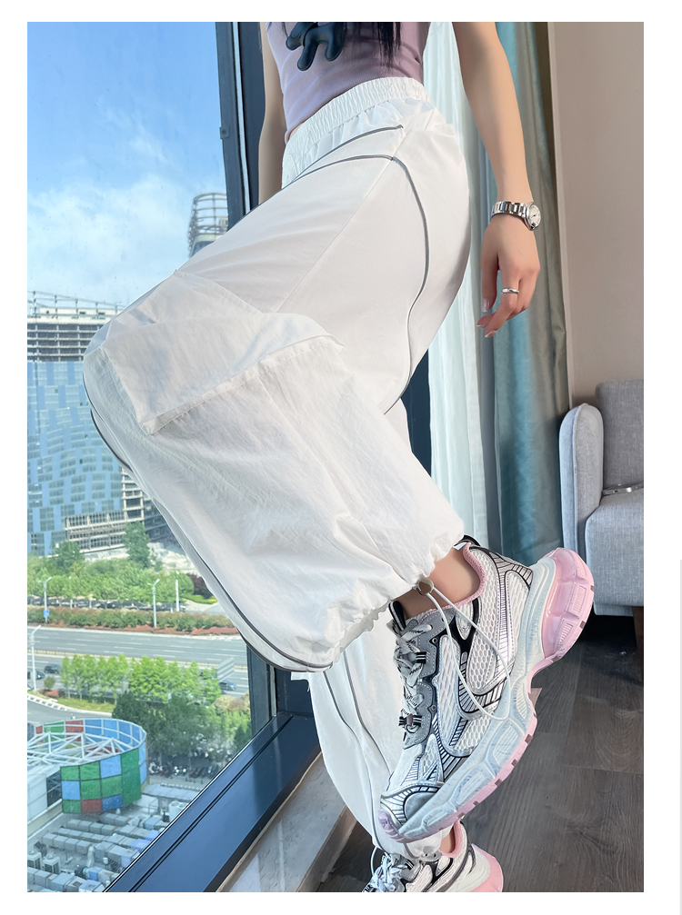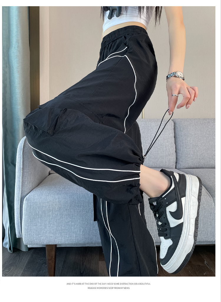 실사 한국 스타일 여름 하이웨이스트 루즈핏 조거 바지 캐주얼 프린트 워크웨어 팬츠 얇은 스타일 속도 건조한 둘 착용 운동 바지
