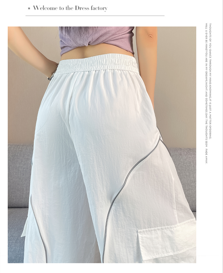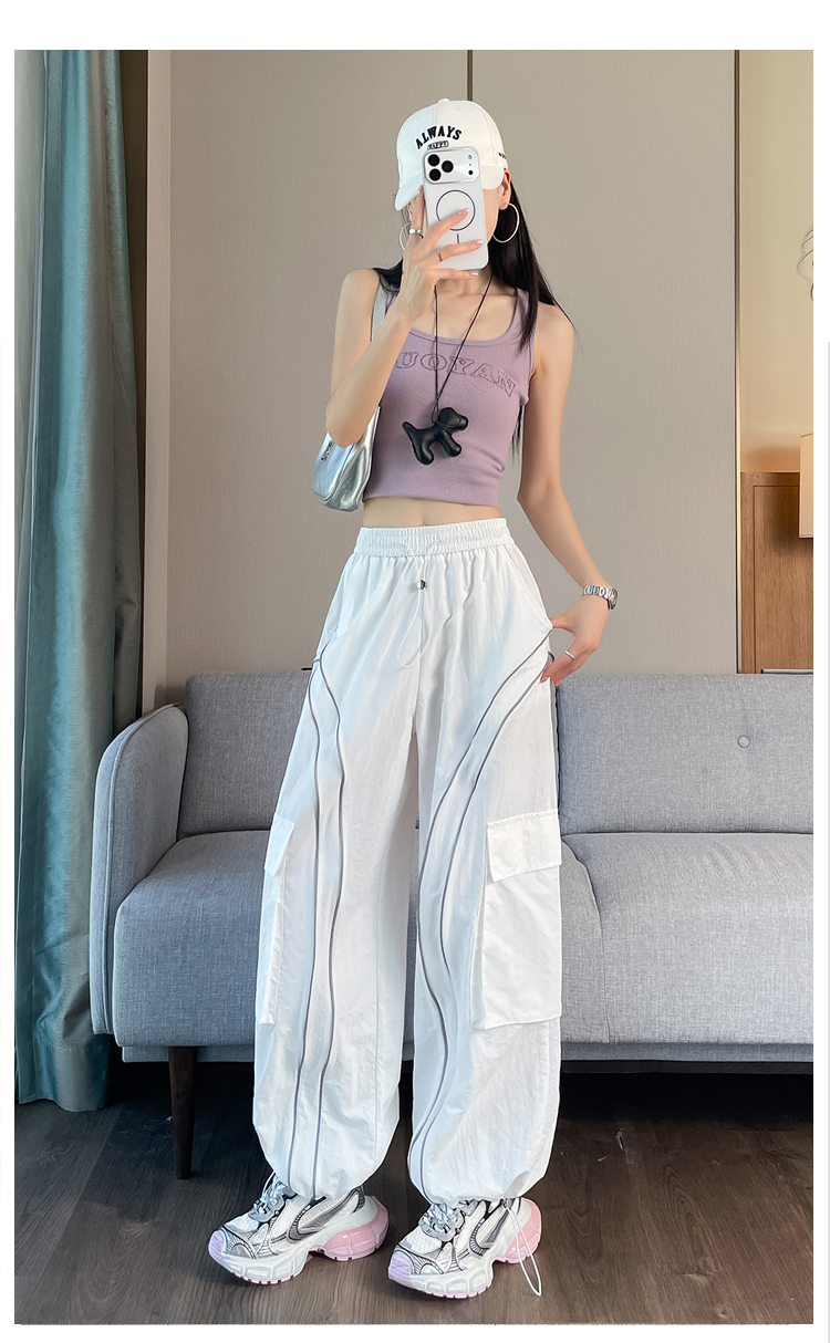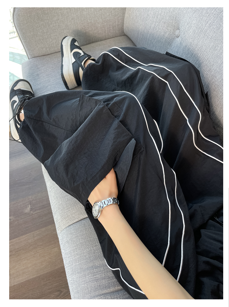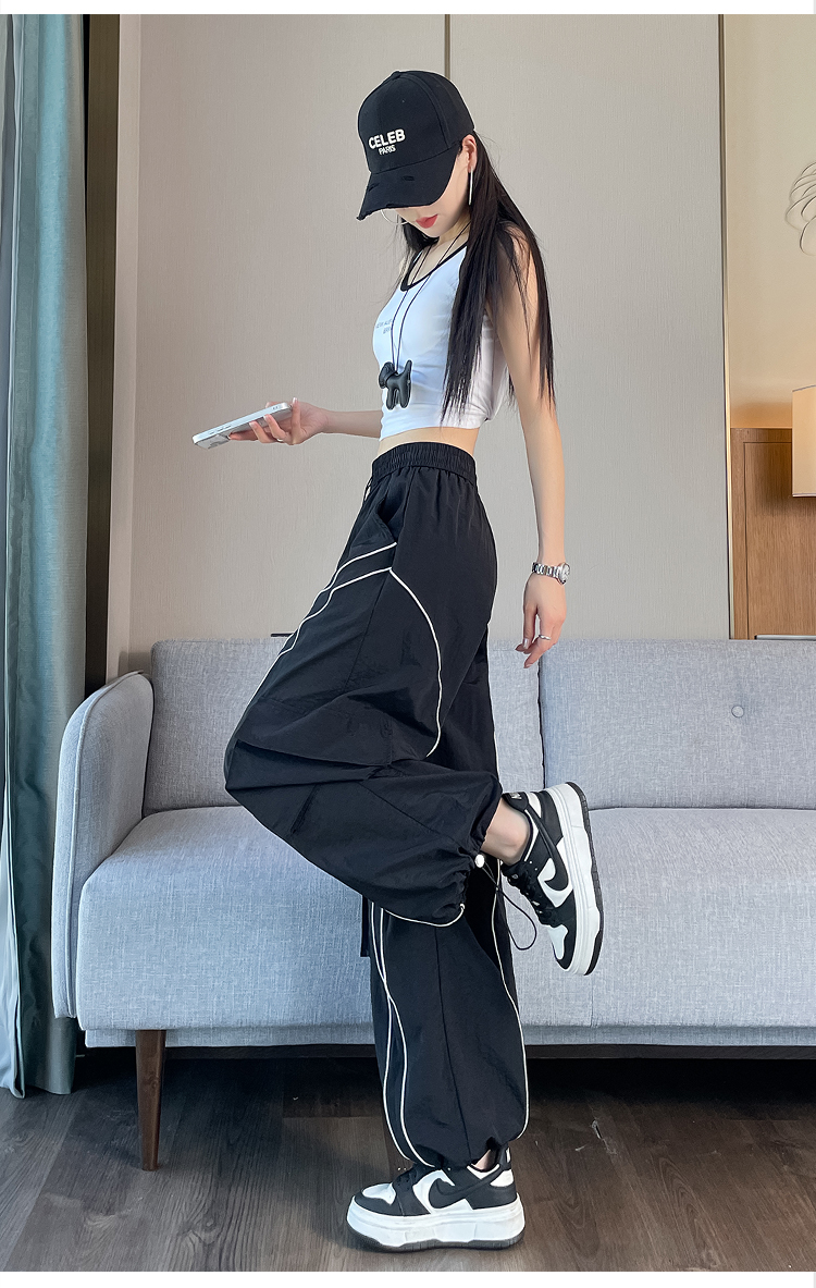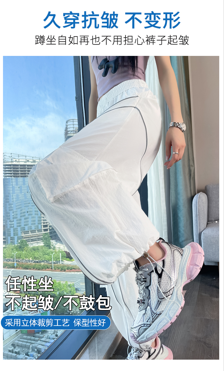 실사 한국 스타일 여름 하이웨이스트 루즈핏 조거 바지 캐주얼 프린트 워크웨어 팬츠 얇은 스타일 속도 건조한 둘 착용 운동 바지