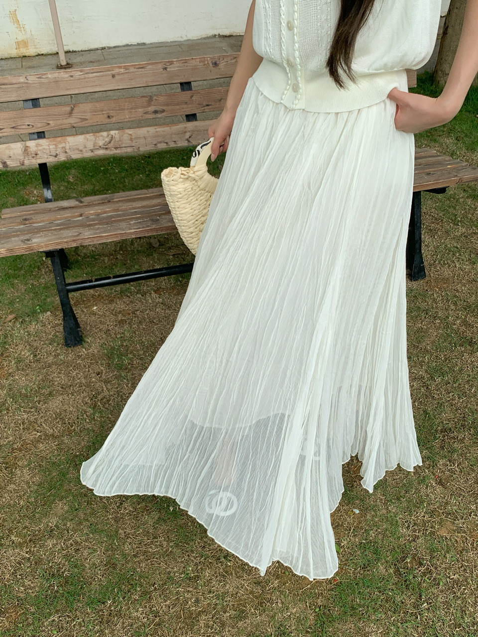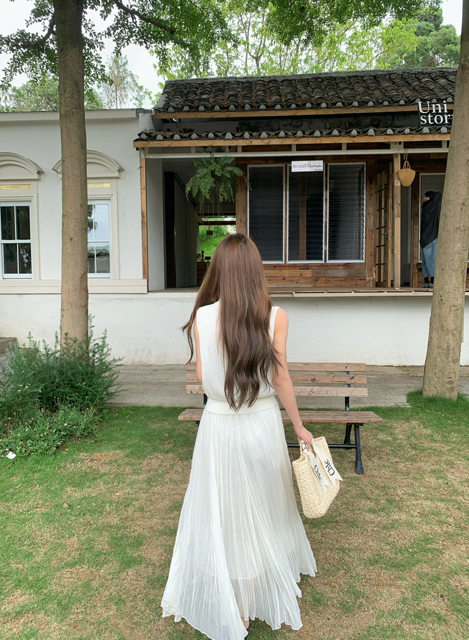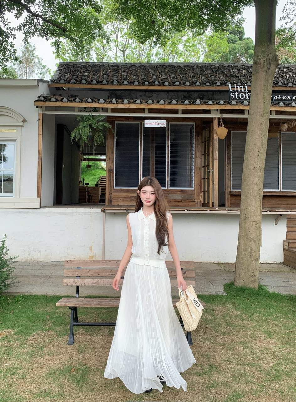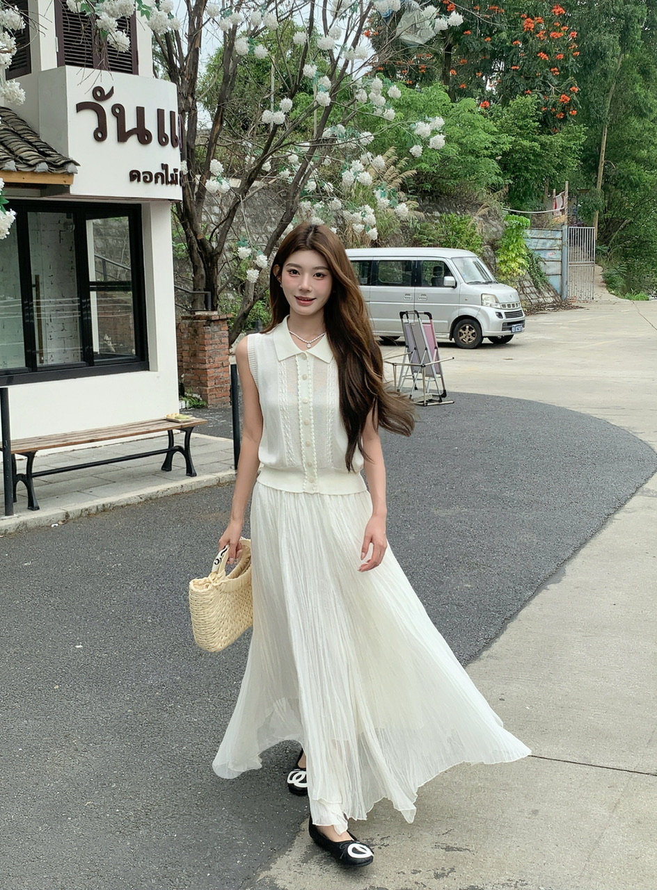 정가 실사 한 부서 순수한 욕망 바람 POLO 칼라 니트 조끼 요정 롱 스커트 세트 여성 품격 슬림해 보이는 세트