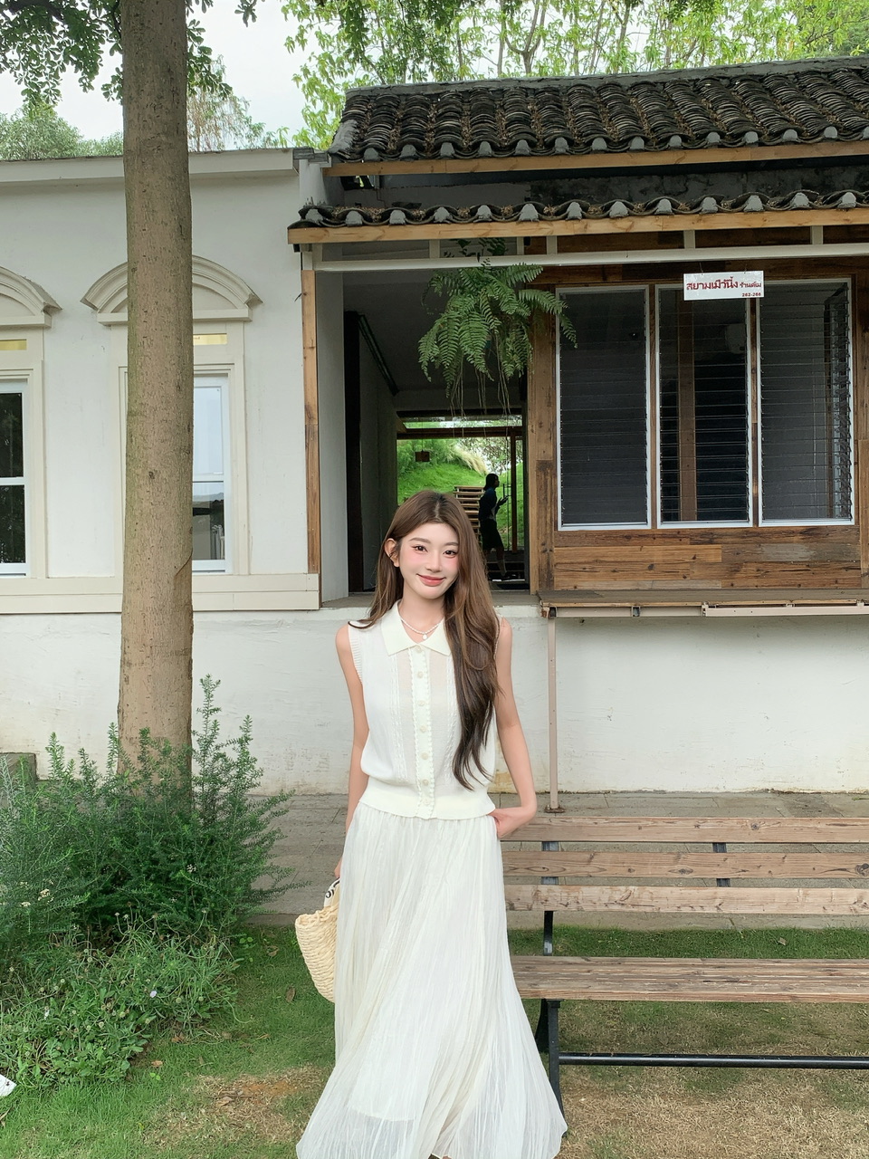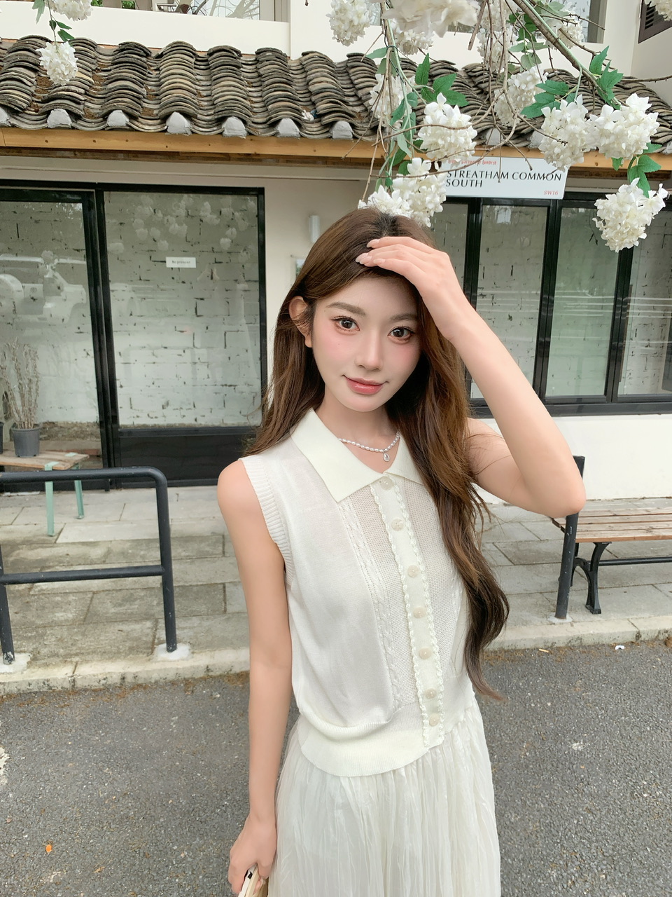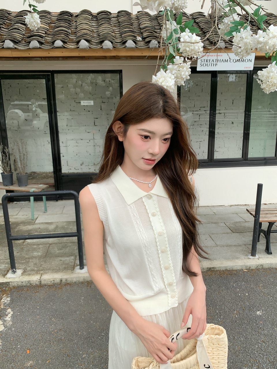 정가 실사 한 부서 순수한 욕망 바람 POLO 칼라 니트 조끼 요정 롱 스커트 세트 여성 품격 슬림해 보이는 세트