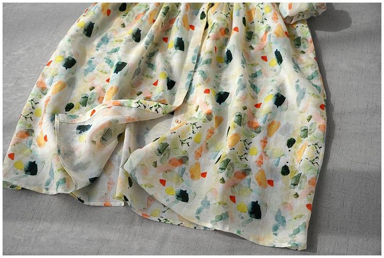 단색 비스듬한 문 襟 순수한 라미 맨위 여성 짧은 셔츠 여름 문예 차 서비스 중식 얇고 가벼운 작은 셔츠 치마