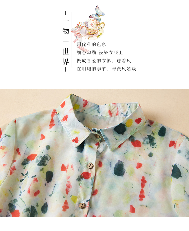 실사 새로운 고급 레트로 프린트 라미 여성 셔츠 문예 벌룬 소매 셔츠 품격 루즈핏 풀오버 맨위