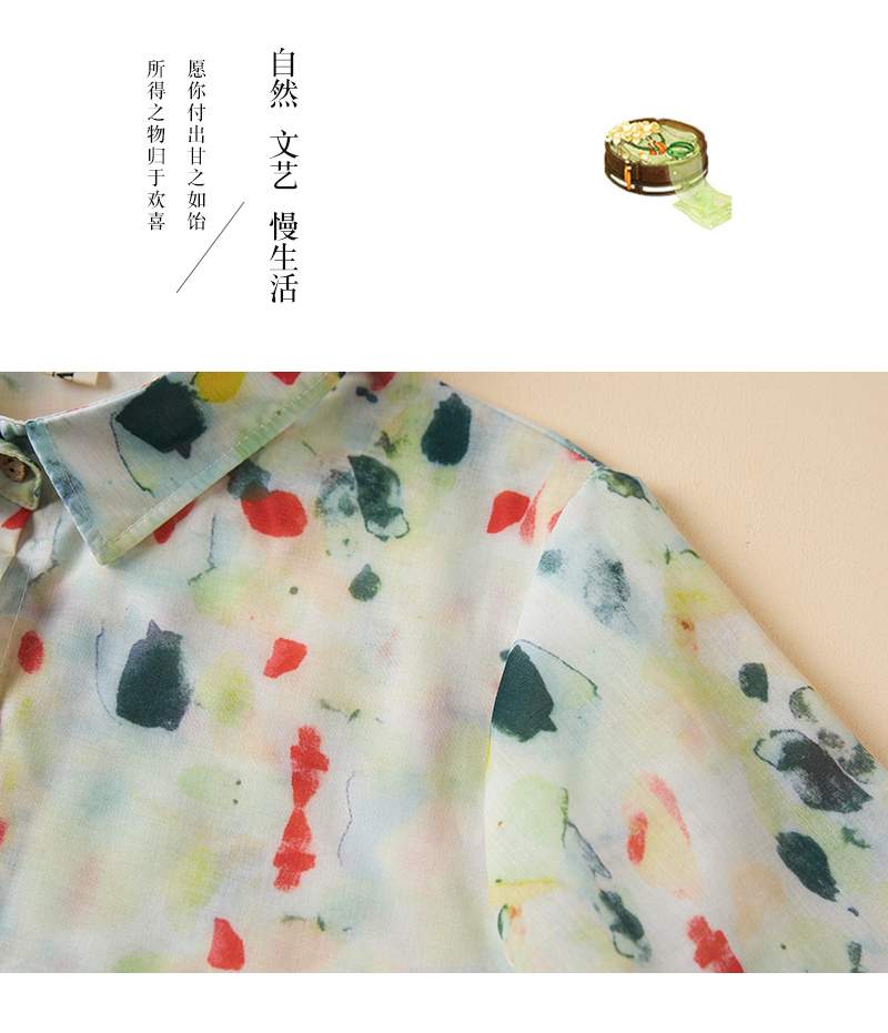 단색 비스듬한 문 襟 순수한 라미 맨위 여성 짧은 셔츠 여름 문예 차 서비스 중식 얇고 가벼운 작은 셔츠 치마