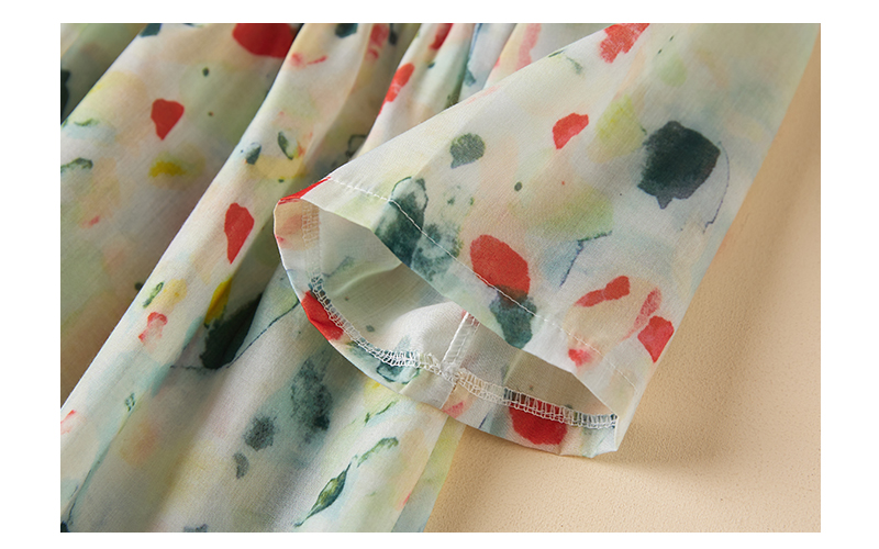 실사 2026 여름 드레스 새로운 어머니 드레스 문예 빅 사이즈 배색 패치워크 단추 V넥 반팔 티셔츠 셔츠 얇은 스타일