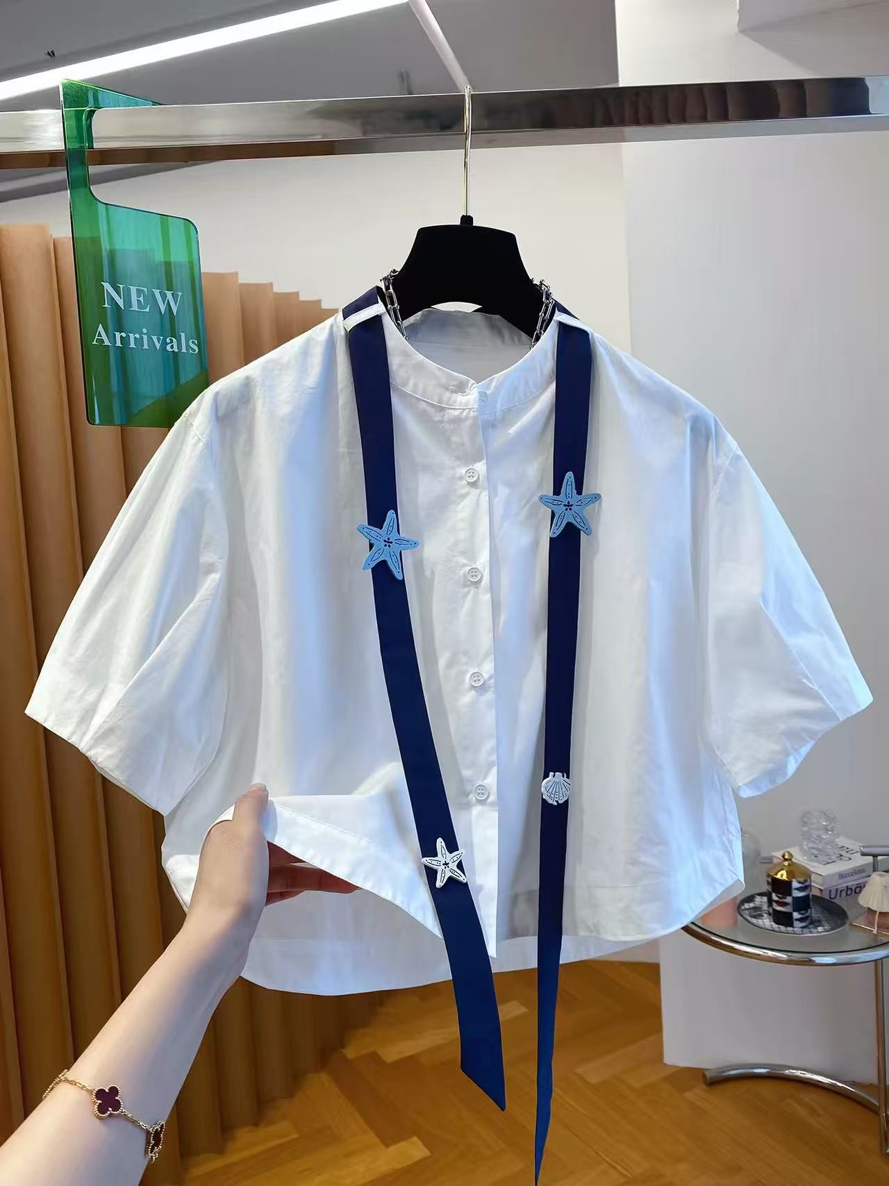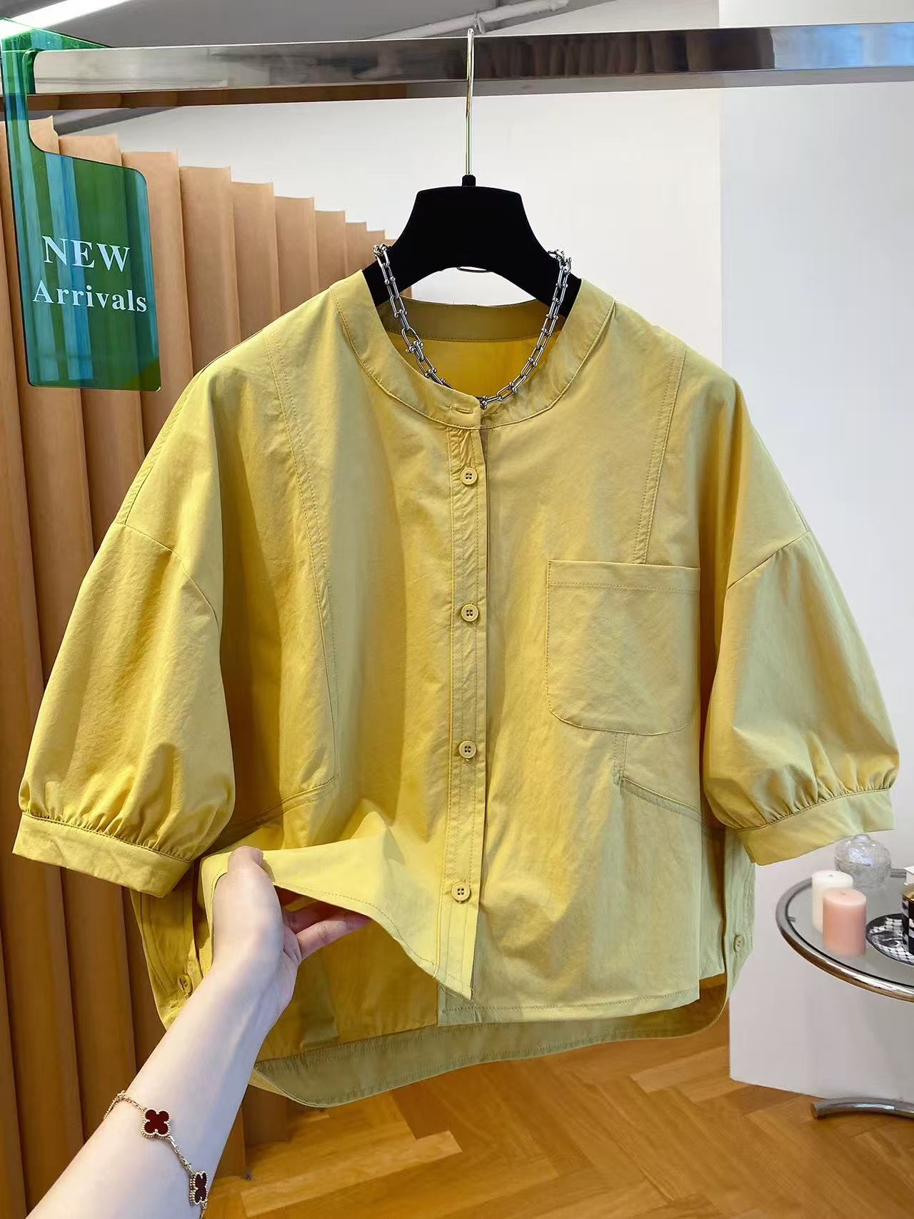 고급 센스 라운드 넥 반소매 여성 셔츠 여름 2026 새로운 루즈핏 캐주얼 슈퍼 잘 생긴 중간 소매 반팔 셔츠 맨위