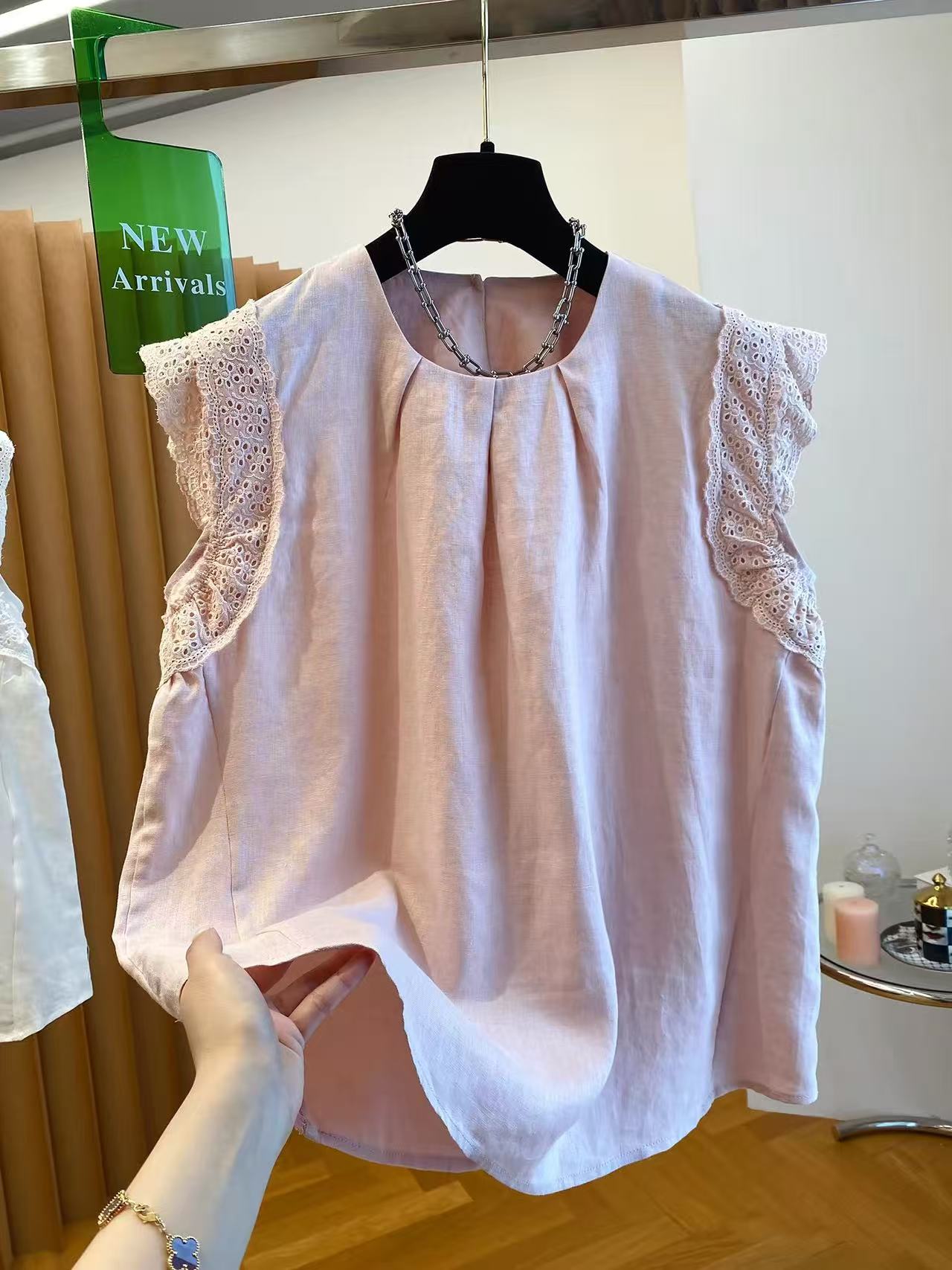 고급 센스 면 린넨 아마 민소매 맨위 여성용 짧은 소매 2026 새로운 루즈핏 Feifei 소매 프릴 작은 셔츠 맨위