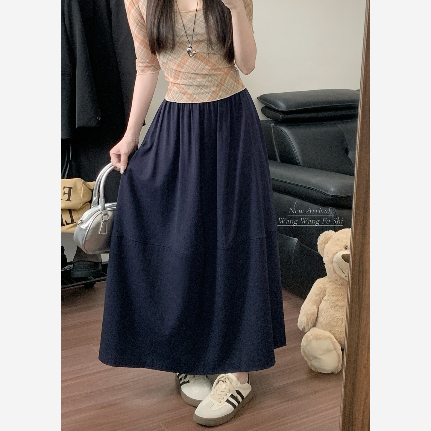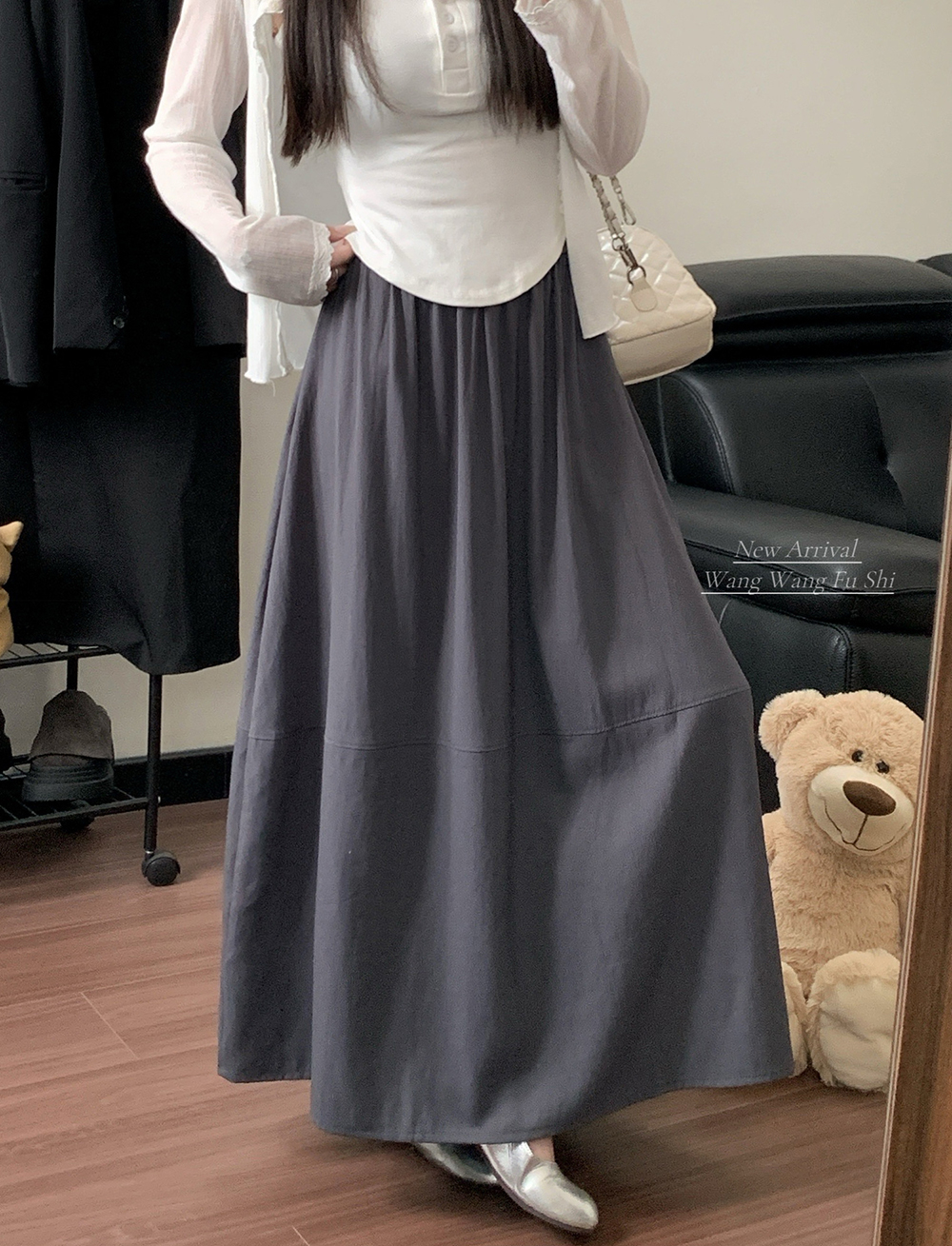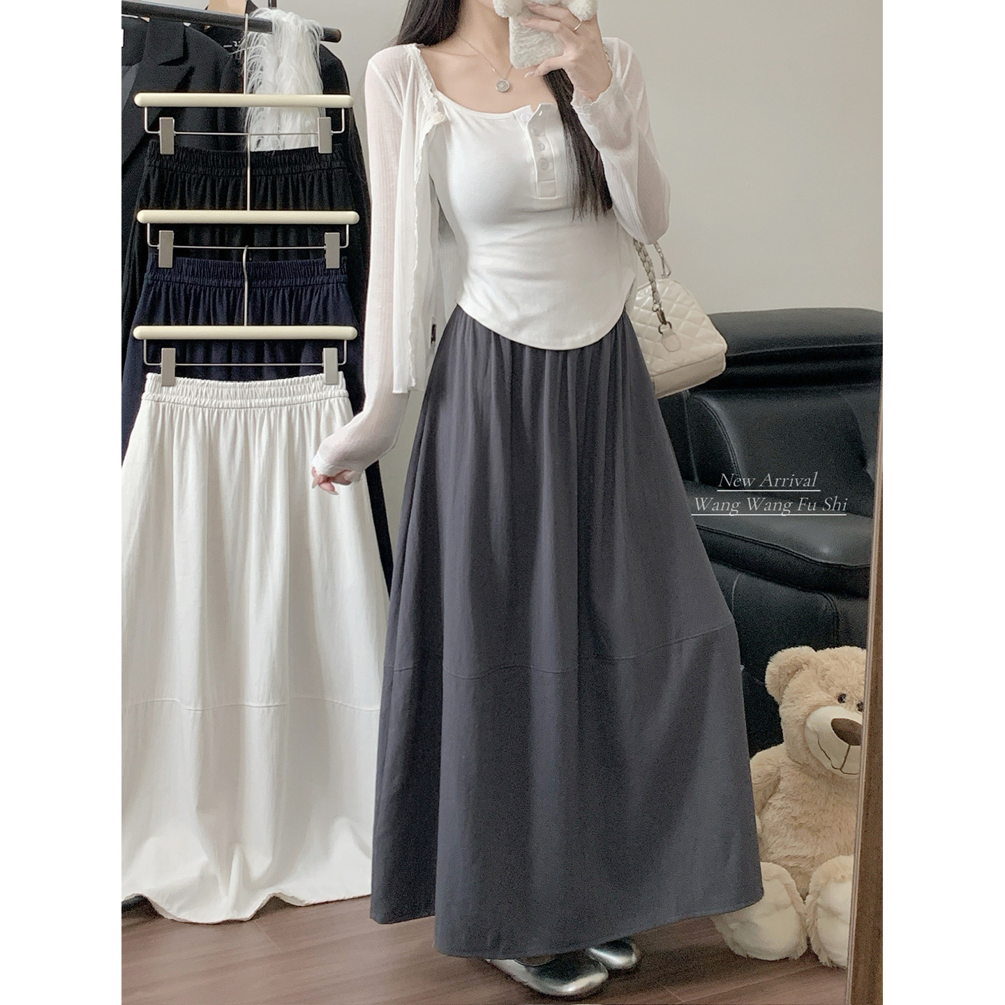 실사 2026 여름 새로운 허리밴드 면 린넨 반신 스커트 여성 표지 십자가 슬림해 보이는 한 마디 패키지 팔 치마