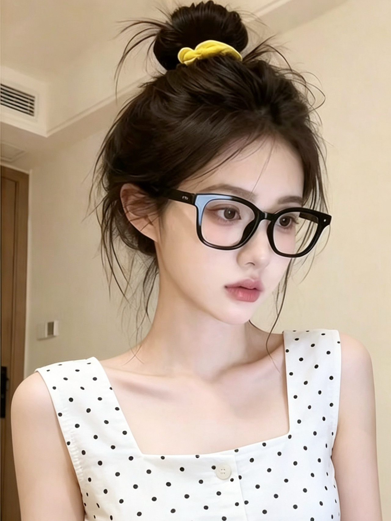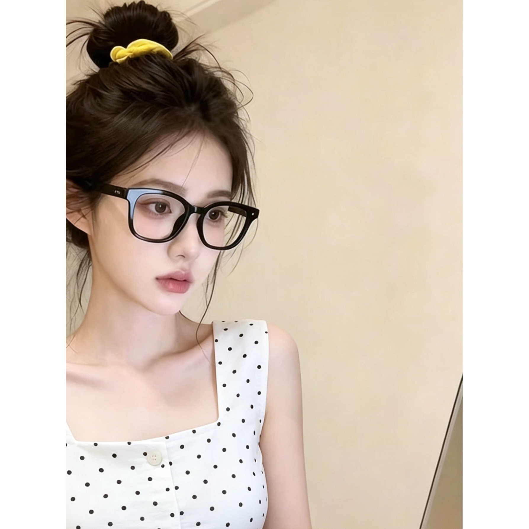 프랑스식 도트 무늬 광장 칼라 캐미솔 2026 여름 고유 한 Chic 슈퍼 잘 생긴 아름다운 슬림해 보이는 쇼트 스타일 맨위
