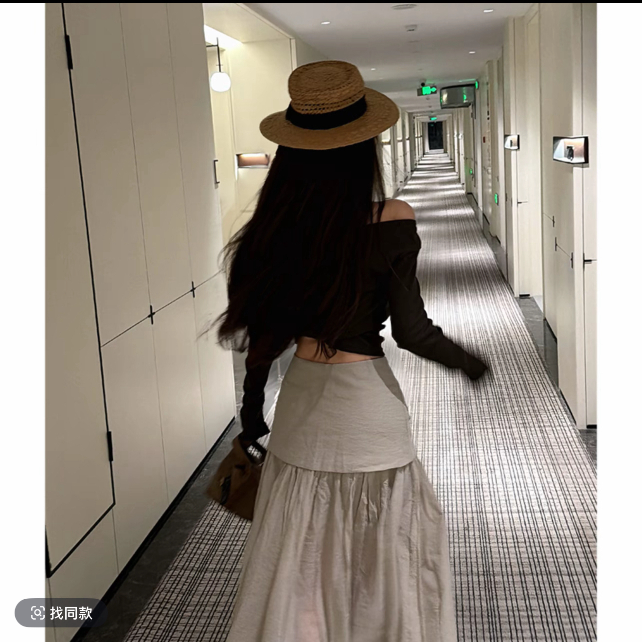 제인 제인 홈 오프숄더 비스듬한 어깨 반팔 품격 새틴 하이웨이스트 다용도 도루 센스 슬림해 보이는 플리츠 반신 치마 세트